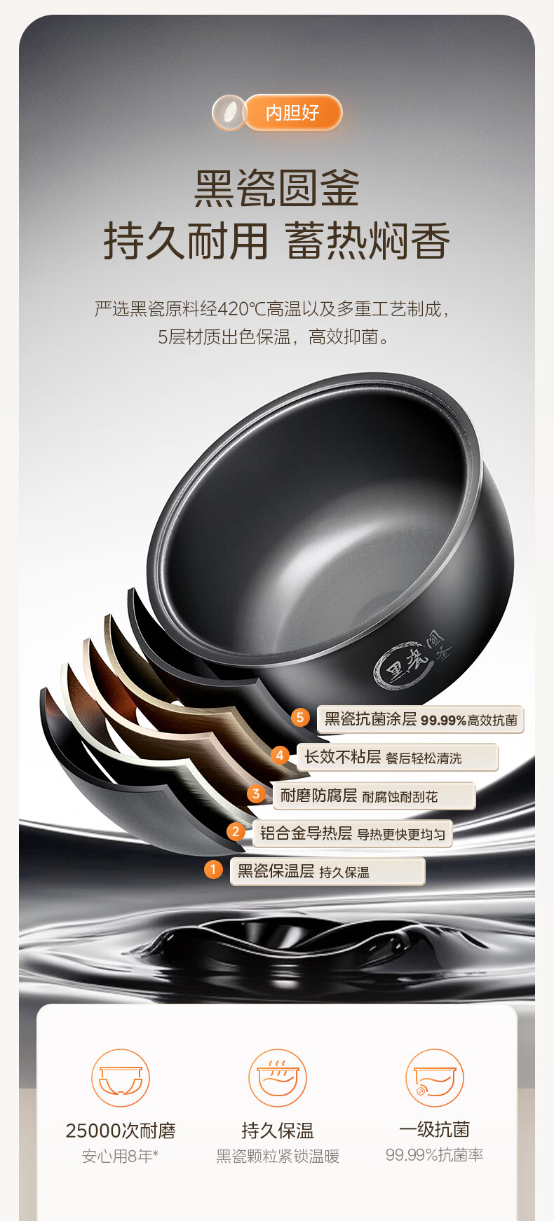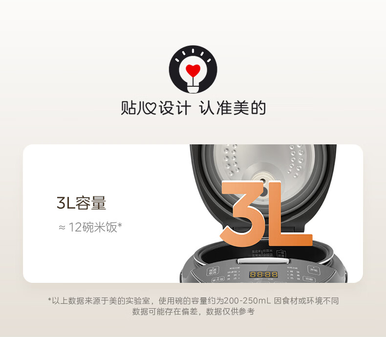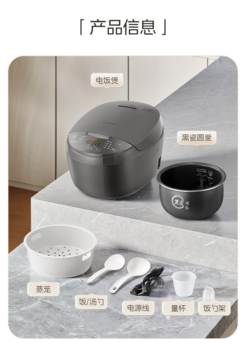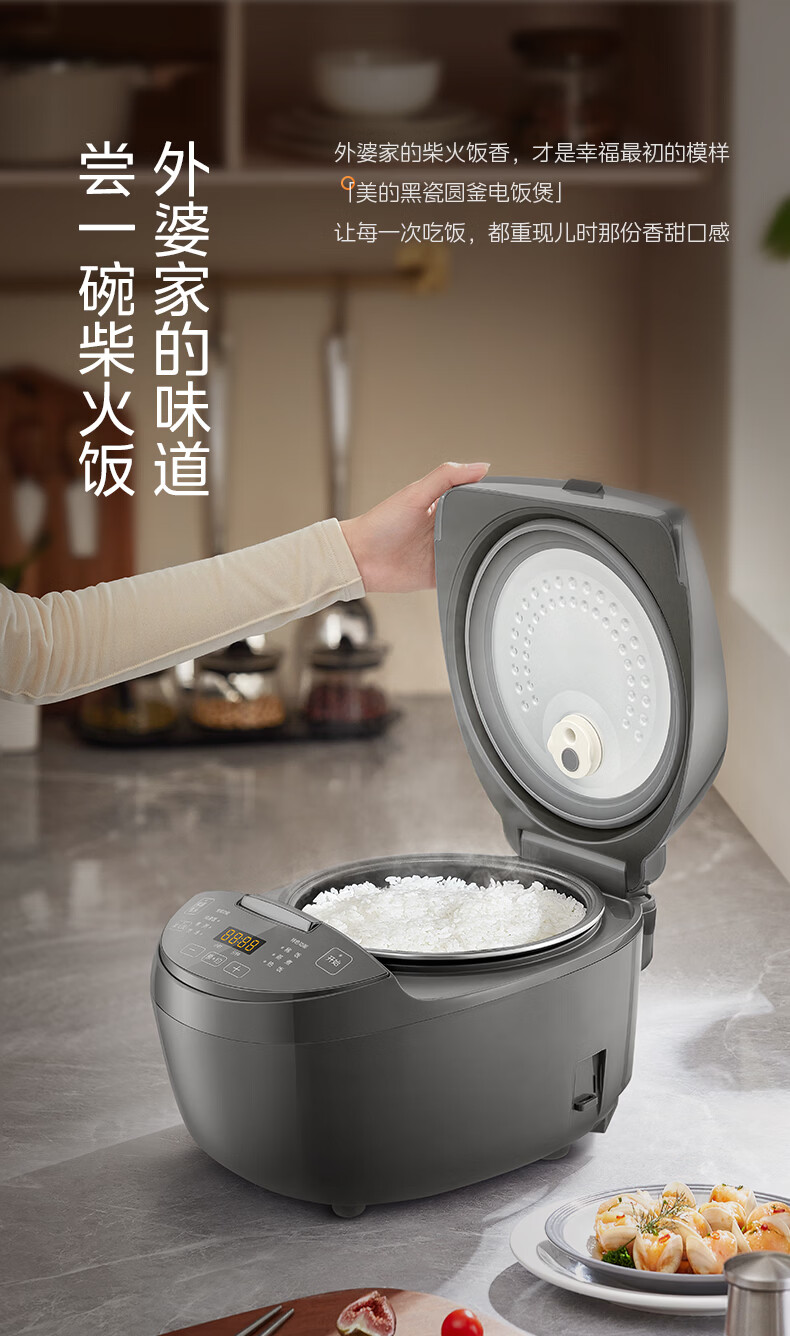 Midea rice cooker black porcelain inner pot small multi-functional fully automatic non-stick rice cooker micro-pressure steamer rice cooker for home use 2-3-4-5-8 people without bending smart reservation 24-hour reservation 3L exquisite capacity