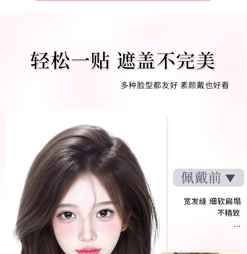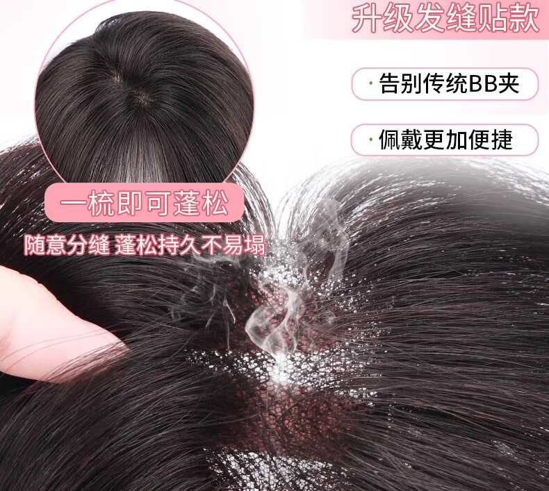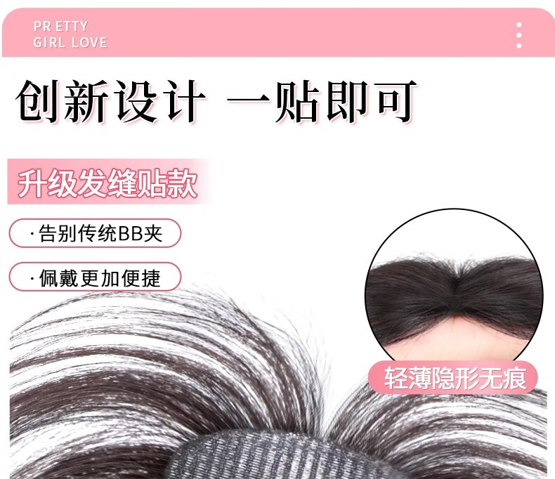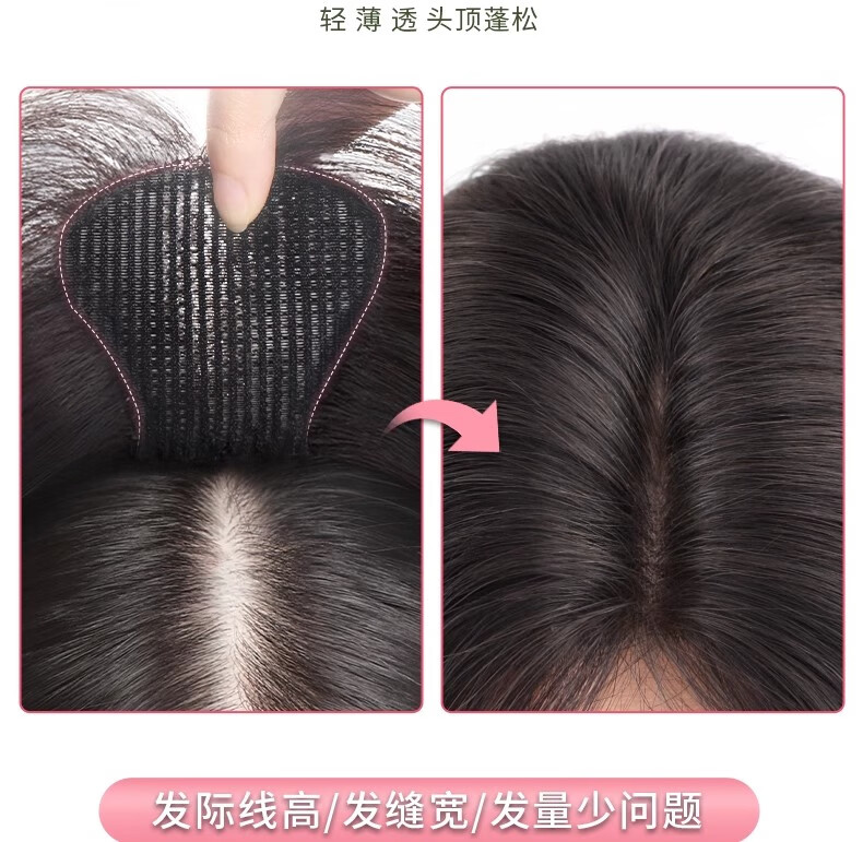 Jiali Qiansi, no need for hairpins, wig for women, replacement hair on top of head to cover white hair, increase hair volume, thin real hair, fake bangs Velcro, upgraded hair seam stickers - figure 8 style, natural color 6*8 25cm
