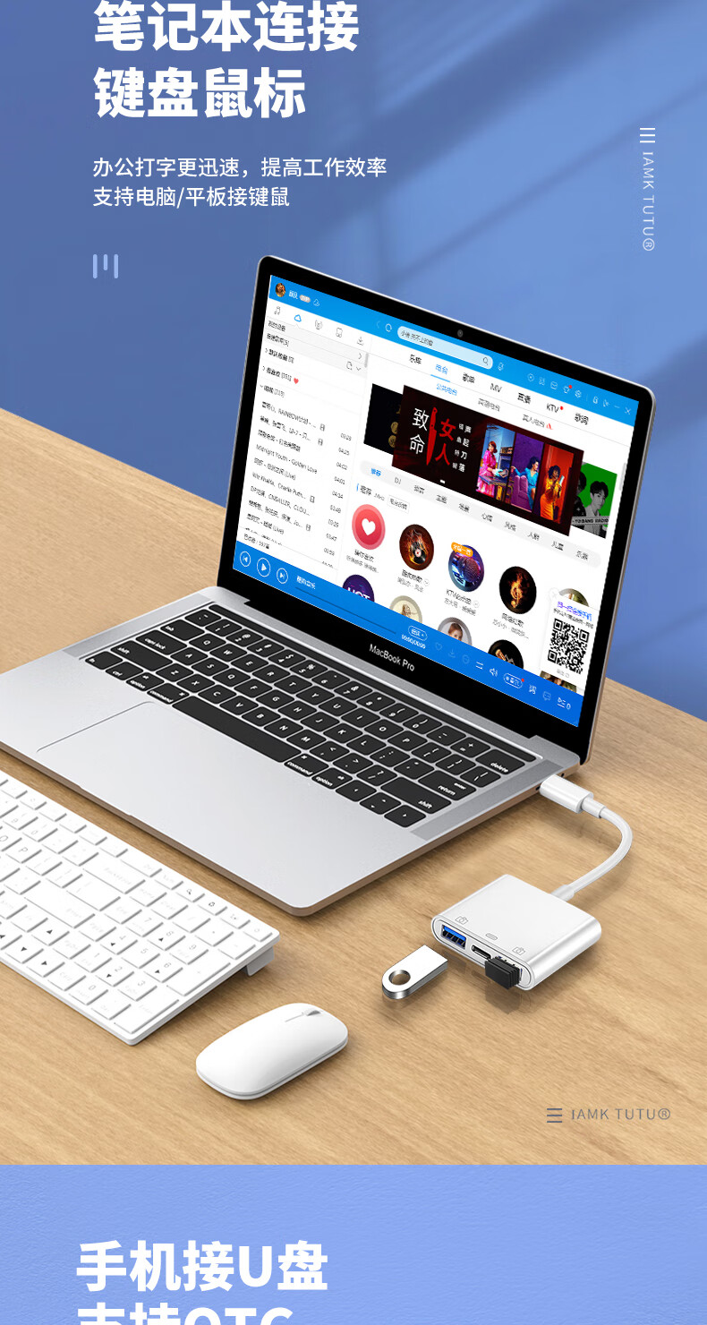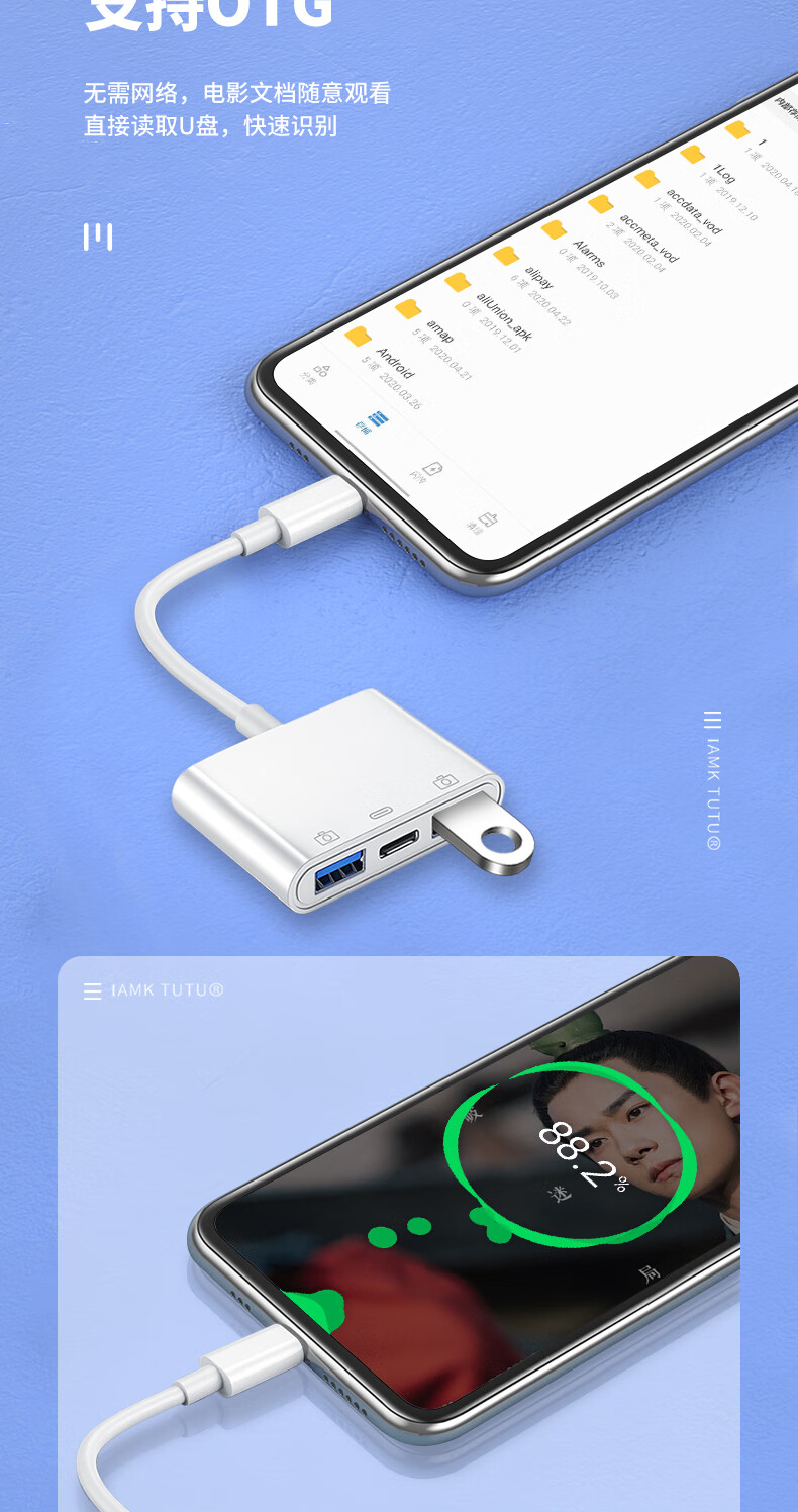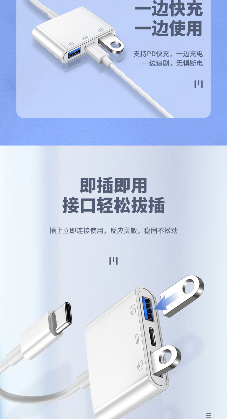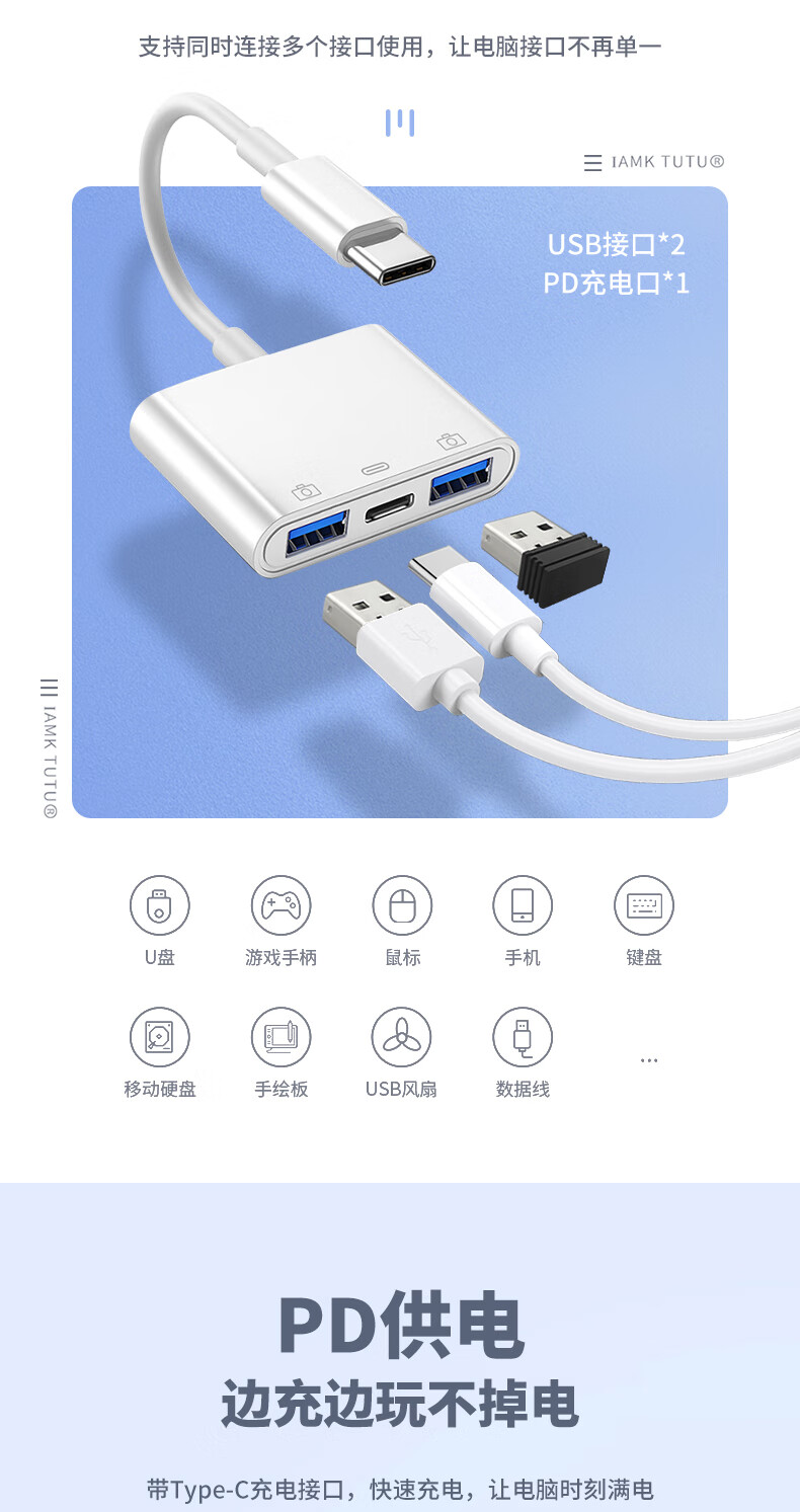 Xingyin mobile phone external keyboard and mouse converter type-c conversion USB splitter game multi-function dual U disk docking transmission OTG three-in-one transfer data cable connector white-Type-c to dual-port USB-with power supply 0.14m
