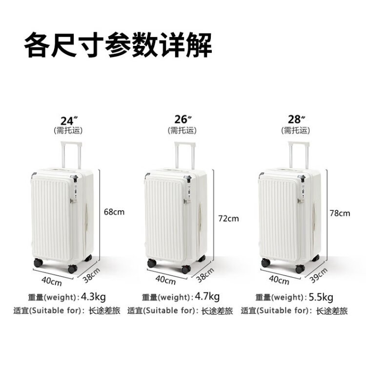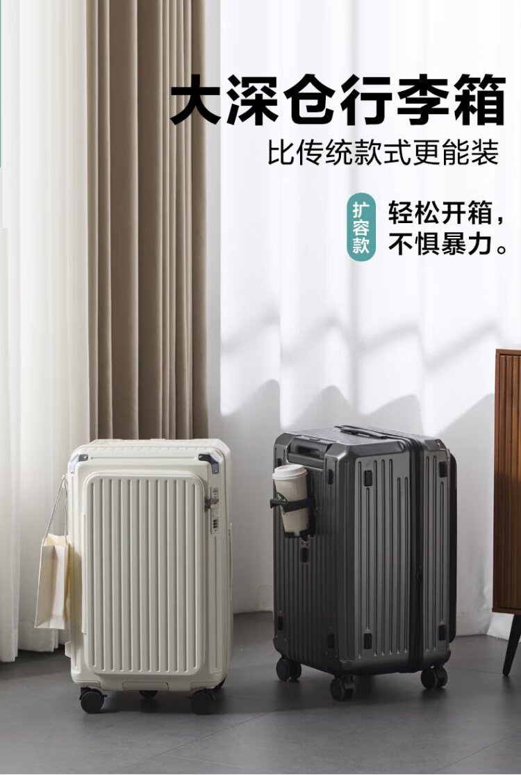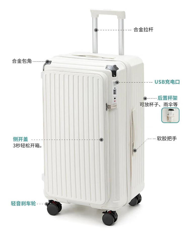 Yantu Luggage Large Capacity Trolley Case Men's and Women's Multifunctional Suitcase Strong and Durable Password Box Side Opening Leather Case Gun Gray (Deep Storage + 5 Wheels + Brakeable) 26-inch MAX (Expandable by 20%)