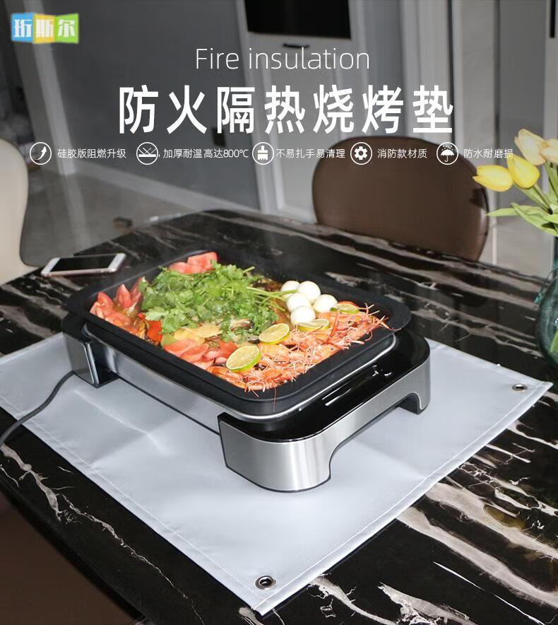 Outdoor camping fireproof mat, camping fireproof cloth, flame retardant, high temperature resistant, insulated picnic barbecue mat, silicone fire blanket, silver gray mini double-sided silicone fireproof mat丨35*35CM (partition