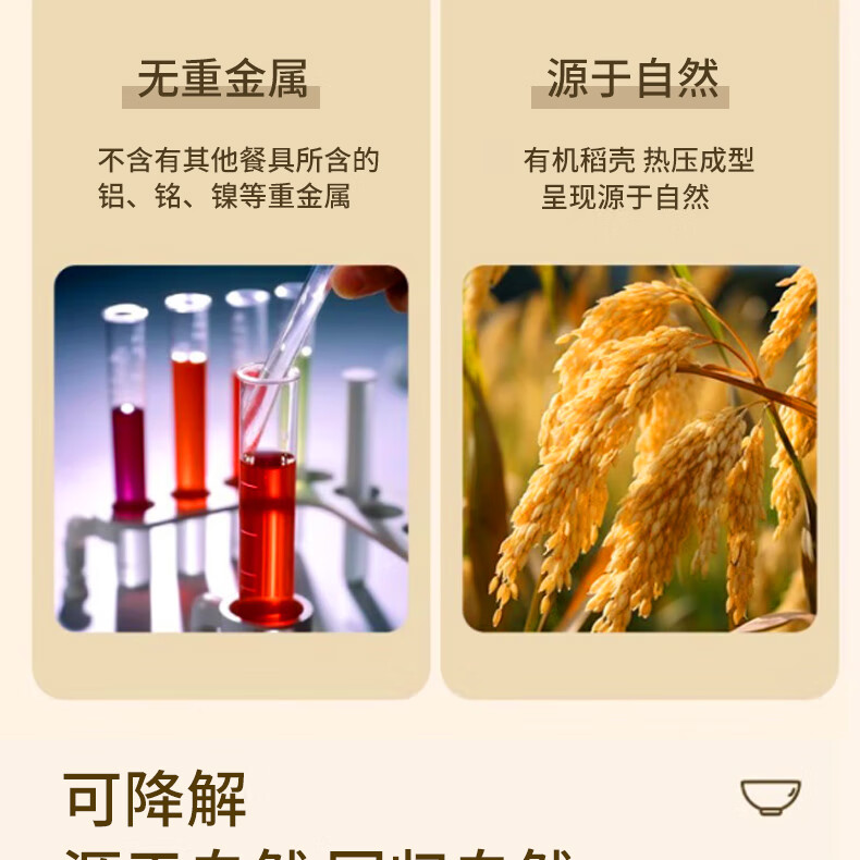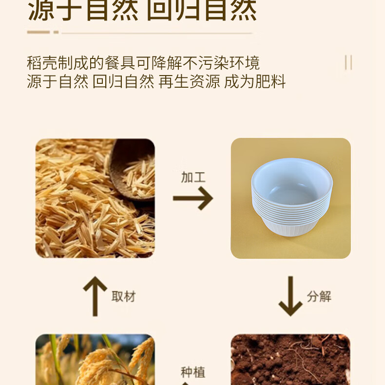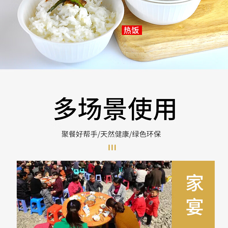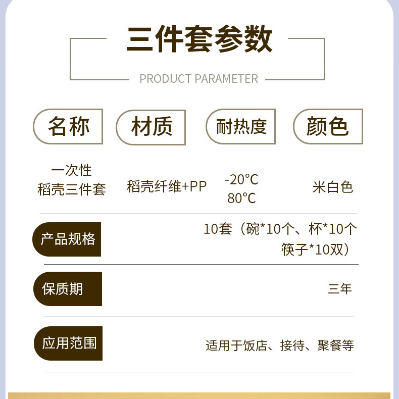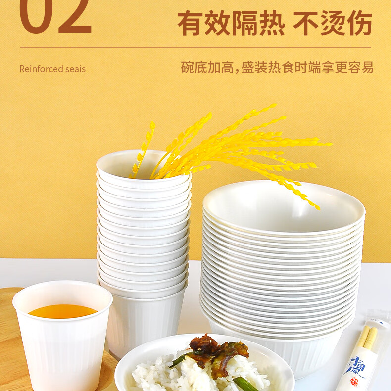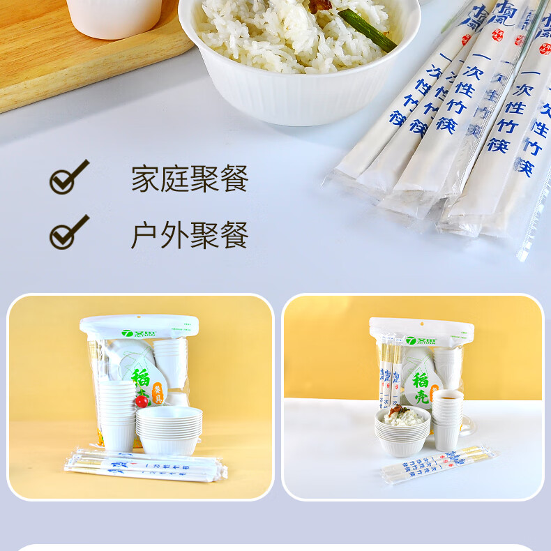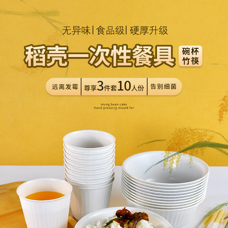 Aitian banquet camping tableware 10 sets disposable rice husk tableware set bowls, cups and chopsticks three-piece set thickened environmentally friendly bowl 5 bags (50 sets) 50 people rice husk tableware set
