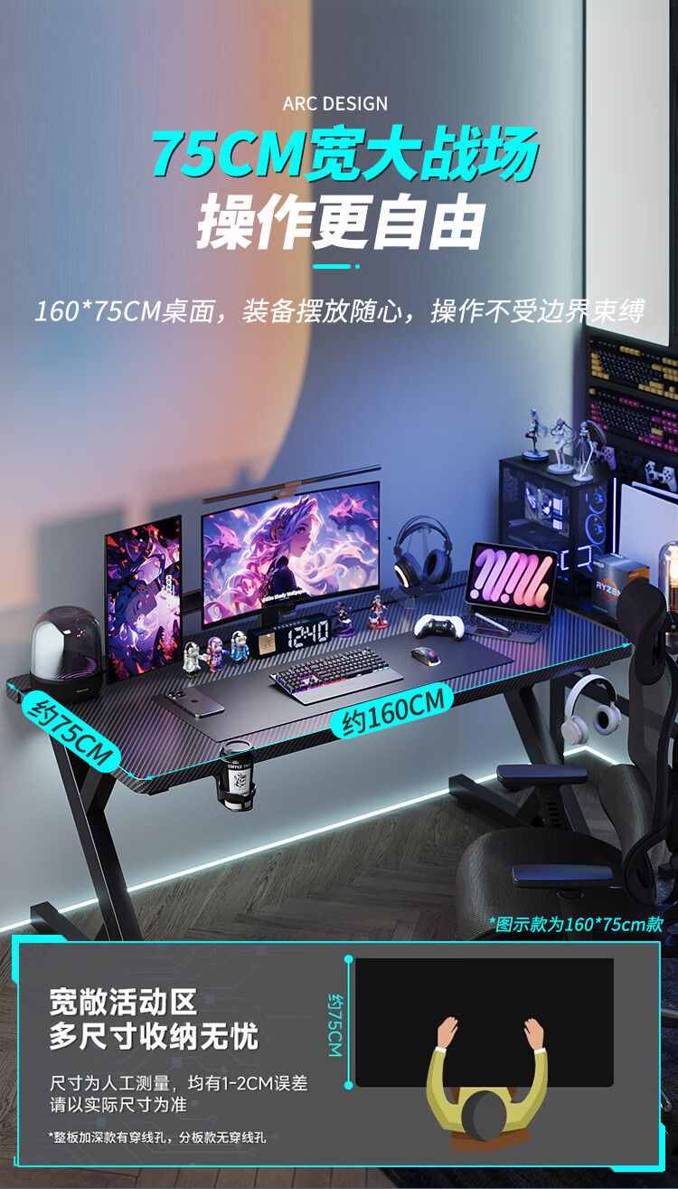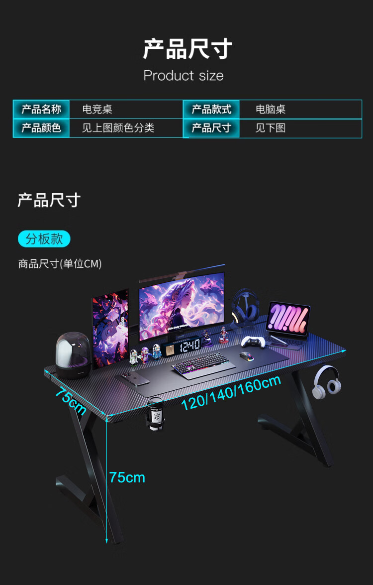 A lemon computer desk e-sports table desktop home e-sports game table home desk office desk simple study desk black carbon fiber 18mm pure pine wood core-ENF environmentally friendly desktop 120*75*75