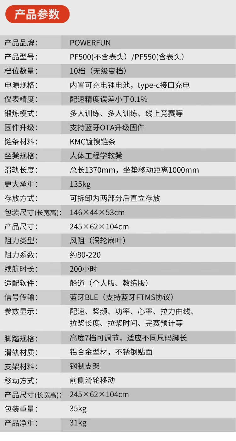 POWERFUN500/550 land rowing professional wind resistance rowing machine dynamometer rowing paddling indoor fitness equipment PF550 black (with instrument model)