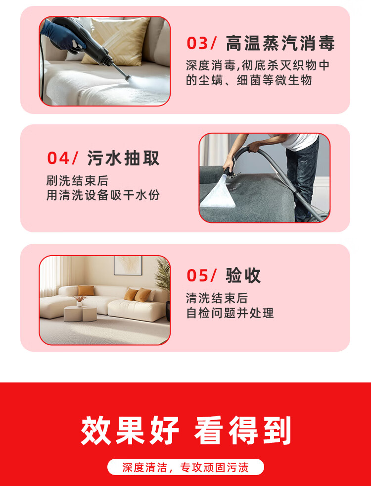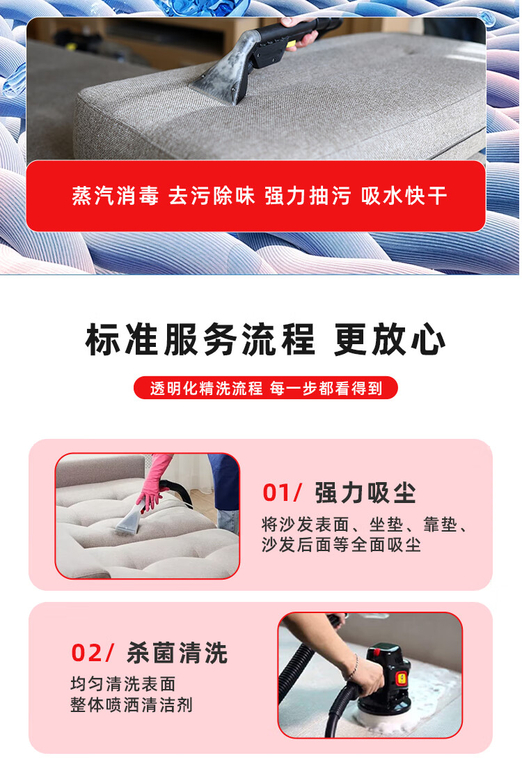 Professional door-to-door professional sofa cleaning/fabric sofa high-temperature steam cleaning/leather sofa cleaning and waxing maintenance/stain removal, macular spot removal, high-temperature steam disinfection and mite removal in the same city, 3-seater fabric sofa (high-temperature steam cleaning and disinfection)