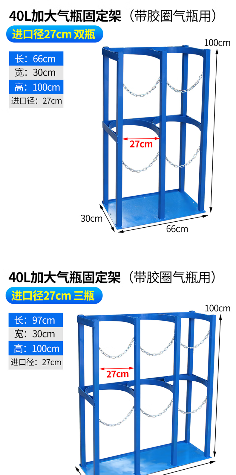 Gas bottle holder 40L bracket oxygen acetylene bottle anti-tip rack safe storage rack placement rack cylinder fixing 40L bottle mouth diameter 27cm (single bottle)