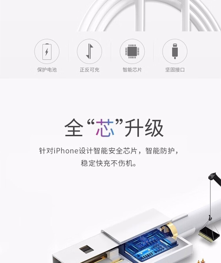 Original Apple data cable fast charging charging cable adapted to original iPhone14/13/12Pro Max/XR/11/8 mobile phone ipadpro/air2 tablet car USB transmission cable official original USB-lightning charging cable - 1 meter