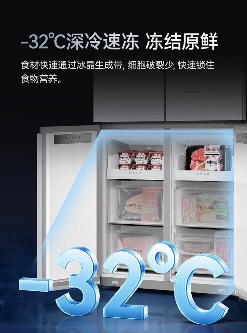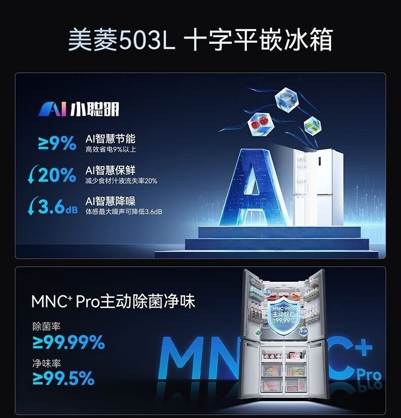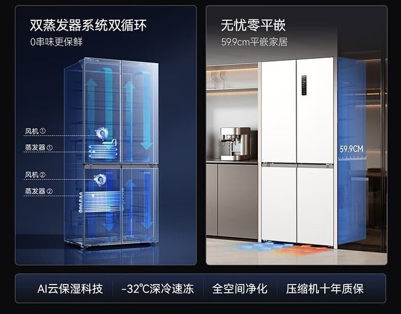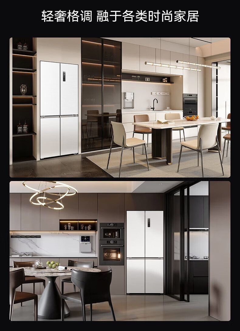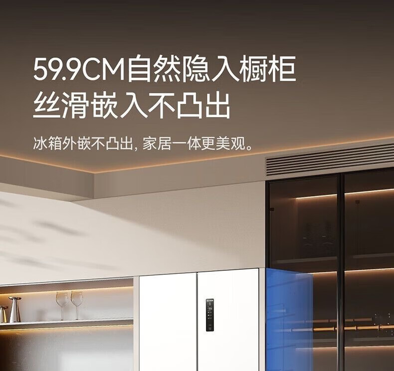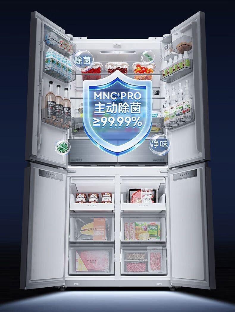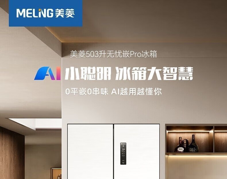 MeiLing AI Refrigerator 503L Active Sterilization and Odor Dual System Four-Door Ultra-Thin Embedded Bottom Cooling Refrigerator BCD-503WSPU9CZX White