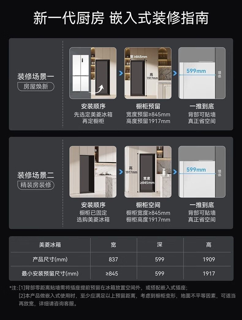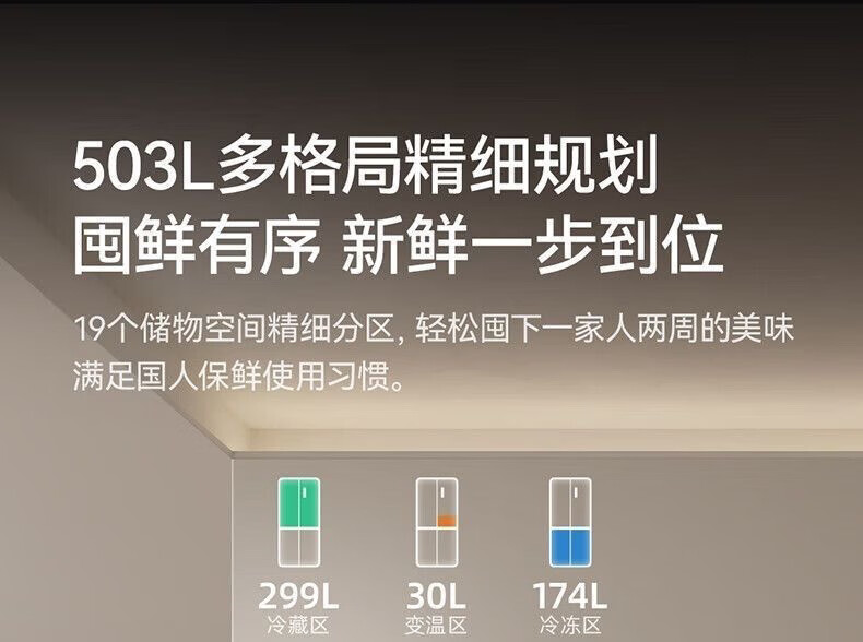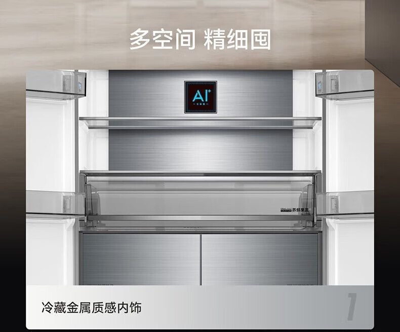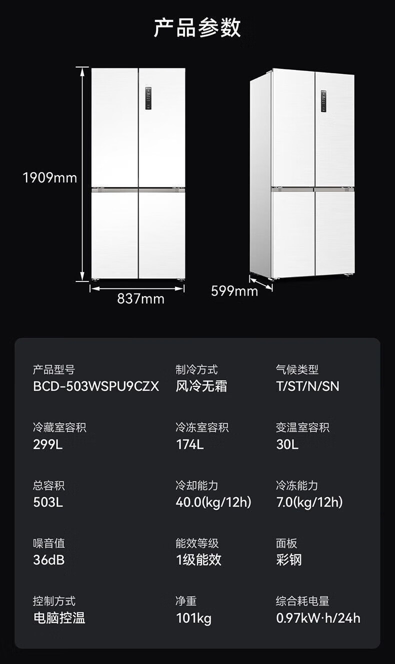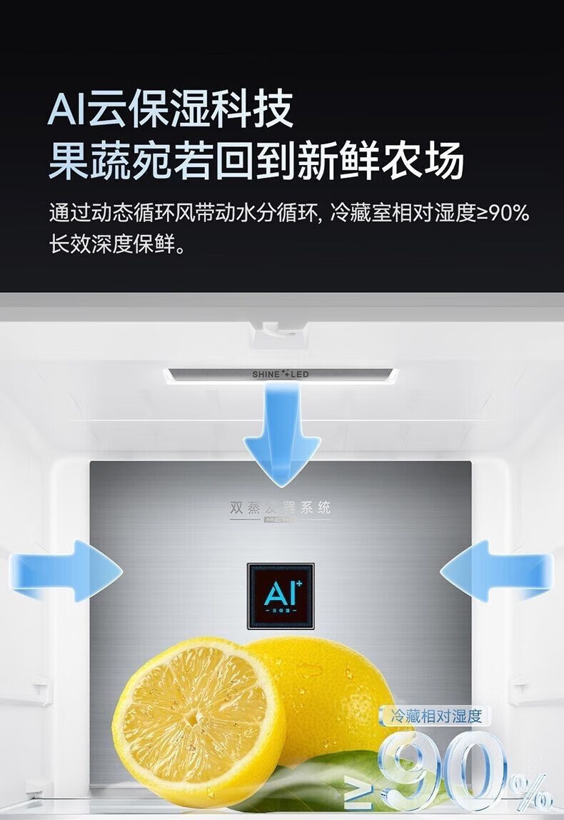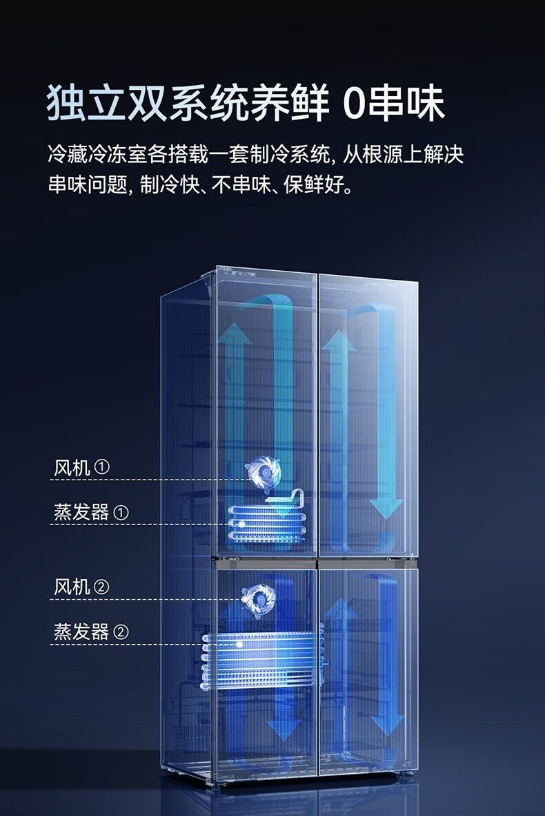 MeiLing AI Refrigerator 503L Active Sterilization and Odor Dual System Four-Door Ultra-Thin Embedded Bottom Cooling Refrigerator BCD-503WSPU9CZX White
