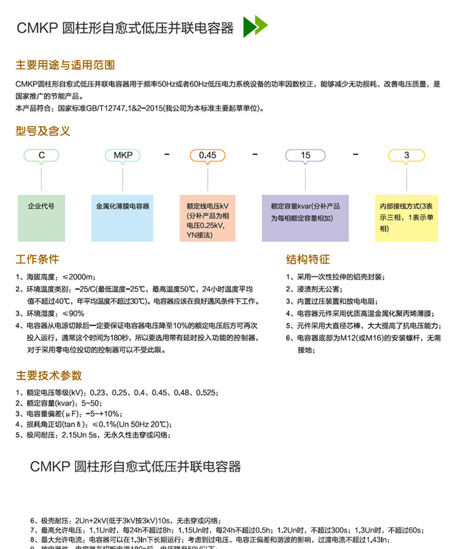 Zhiyue Group Cylindrical Power Capacitor BSMJ/CMKP0.4/0.44/0.525/0.45-15-3 10Kvar 0.4 (400V)