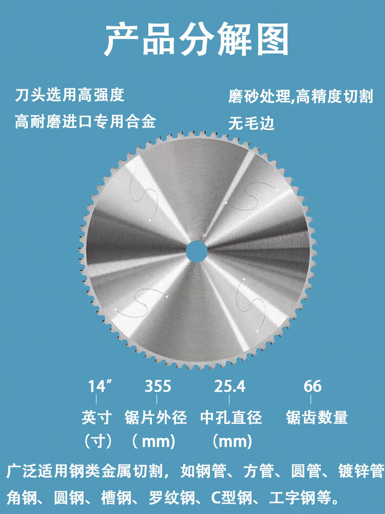 Zhihao imported metal cold cutting saw blade 10 inch 14 inch cold saw blade 355 cutting threaded steel bar steel pipe steel cutting iron saw blade 305*2.0 thick*25.4 holes*100T buy 10 and get 1 free