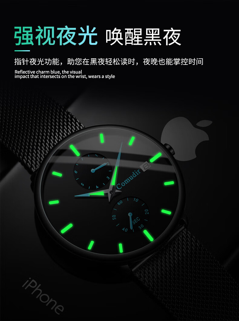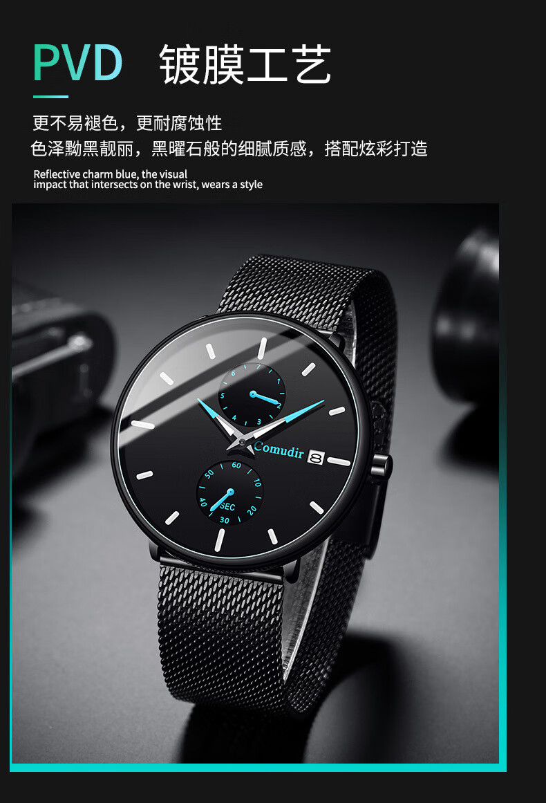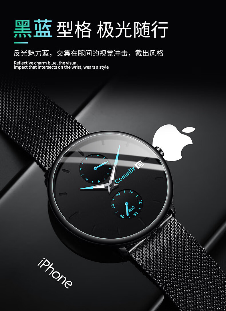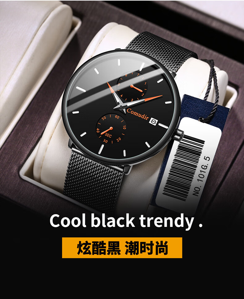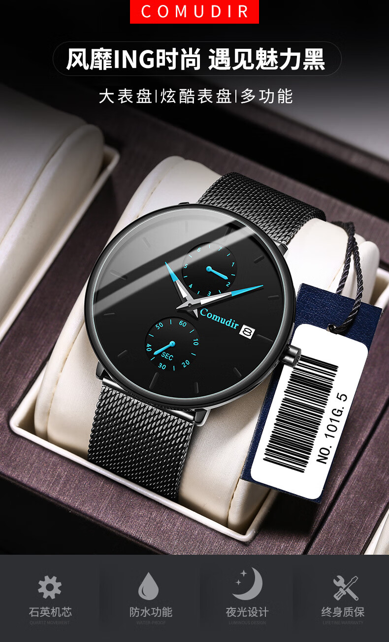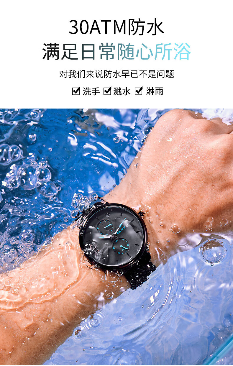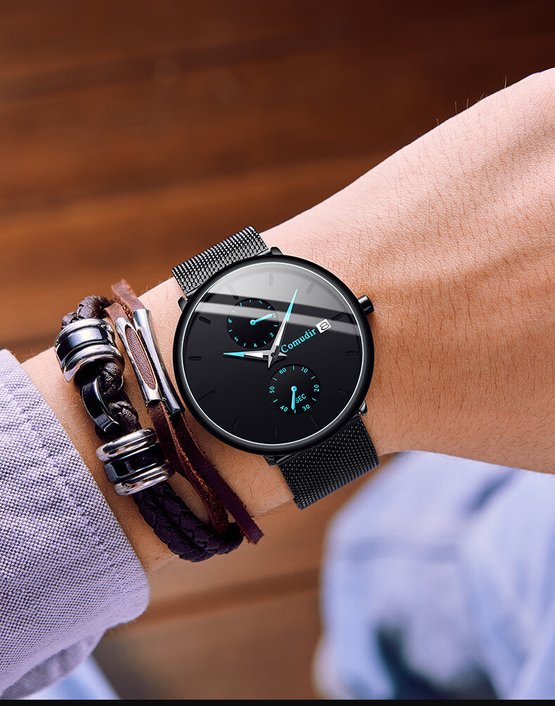 Xiaomi Buyi Watch Male Student Simple Waterproof Junior High School Students High School Teenage Men Business Mechanical Style Men's Watch Exam Available Black Mesh with Black Silver Needle Business Mechanical + Simple Waterproof