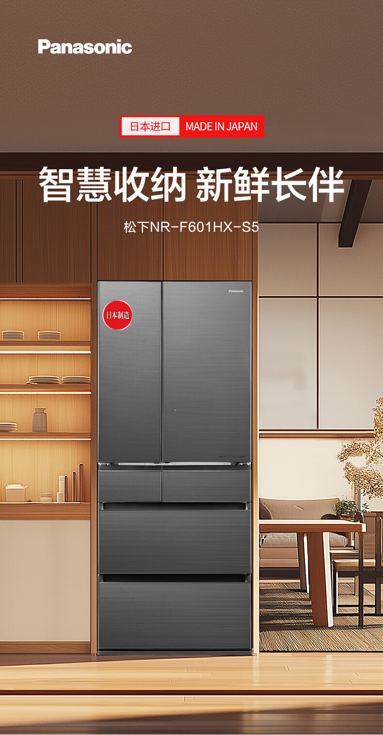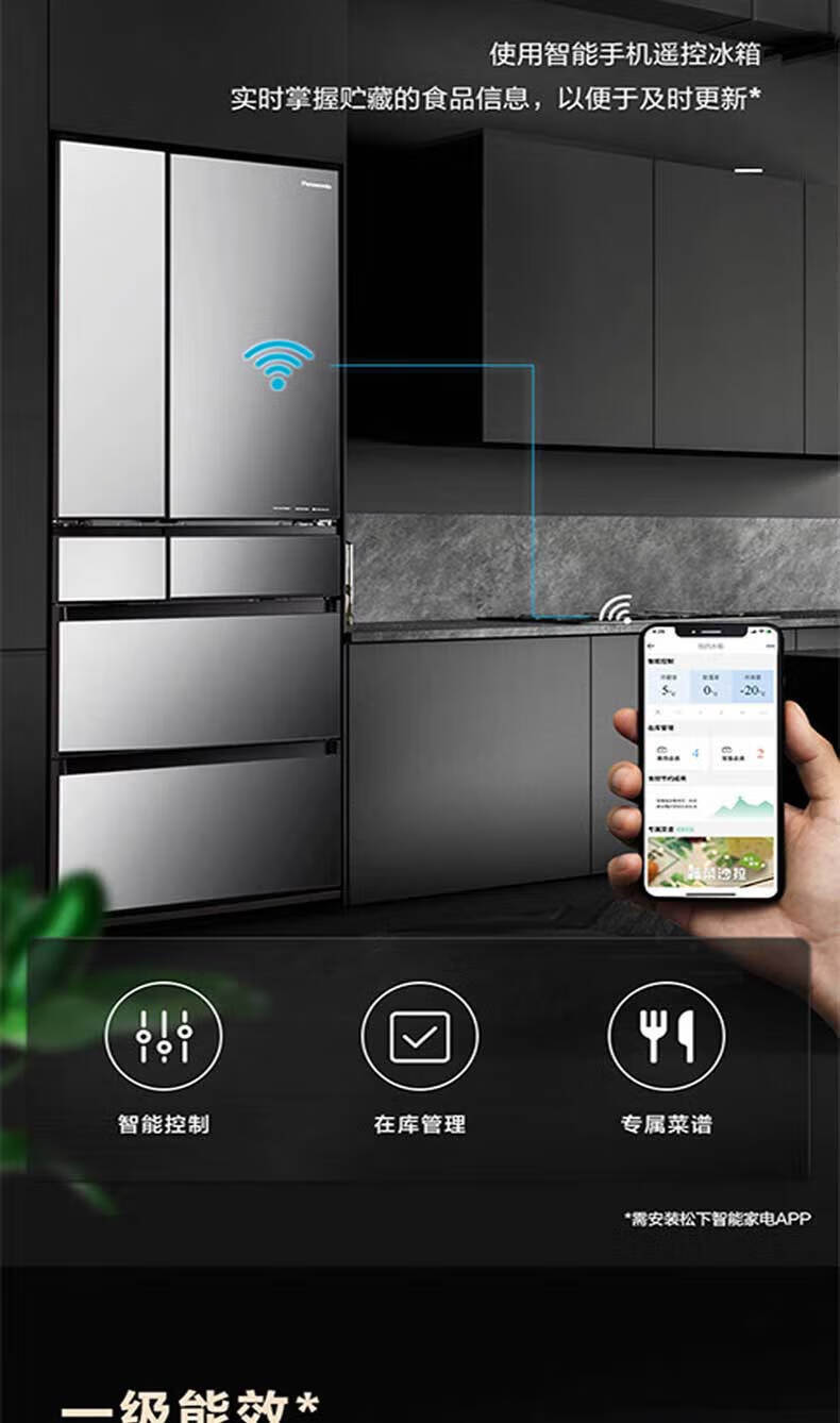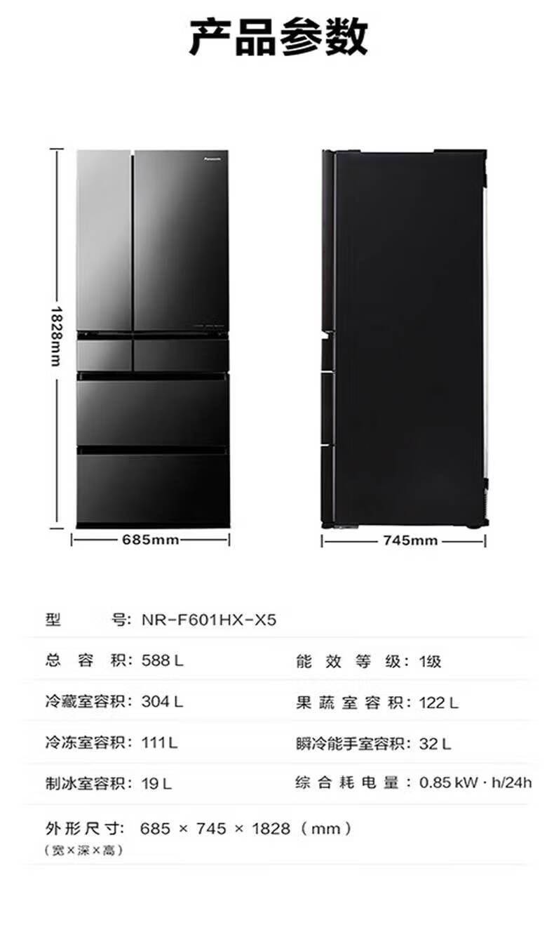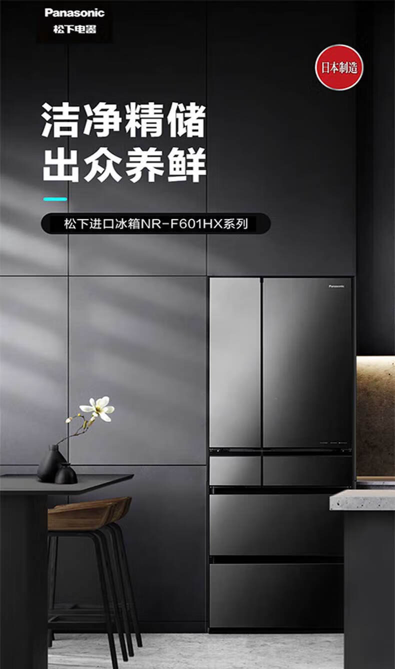 Panasonic (Panasonic) Japan original imported 588 liter French multi-door refrigerator household six-door smart Nanoyi sterilization automatic ice making -3 micro-frozen freshness NR-F601HX-X5 NR-F601HX-X5 agate black 588L