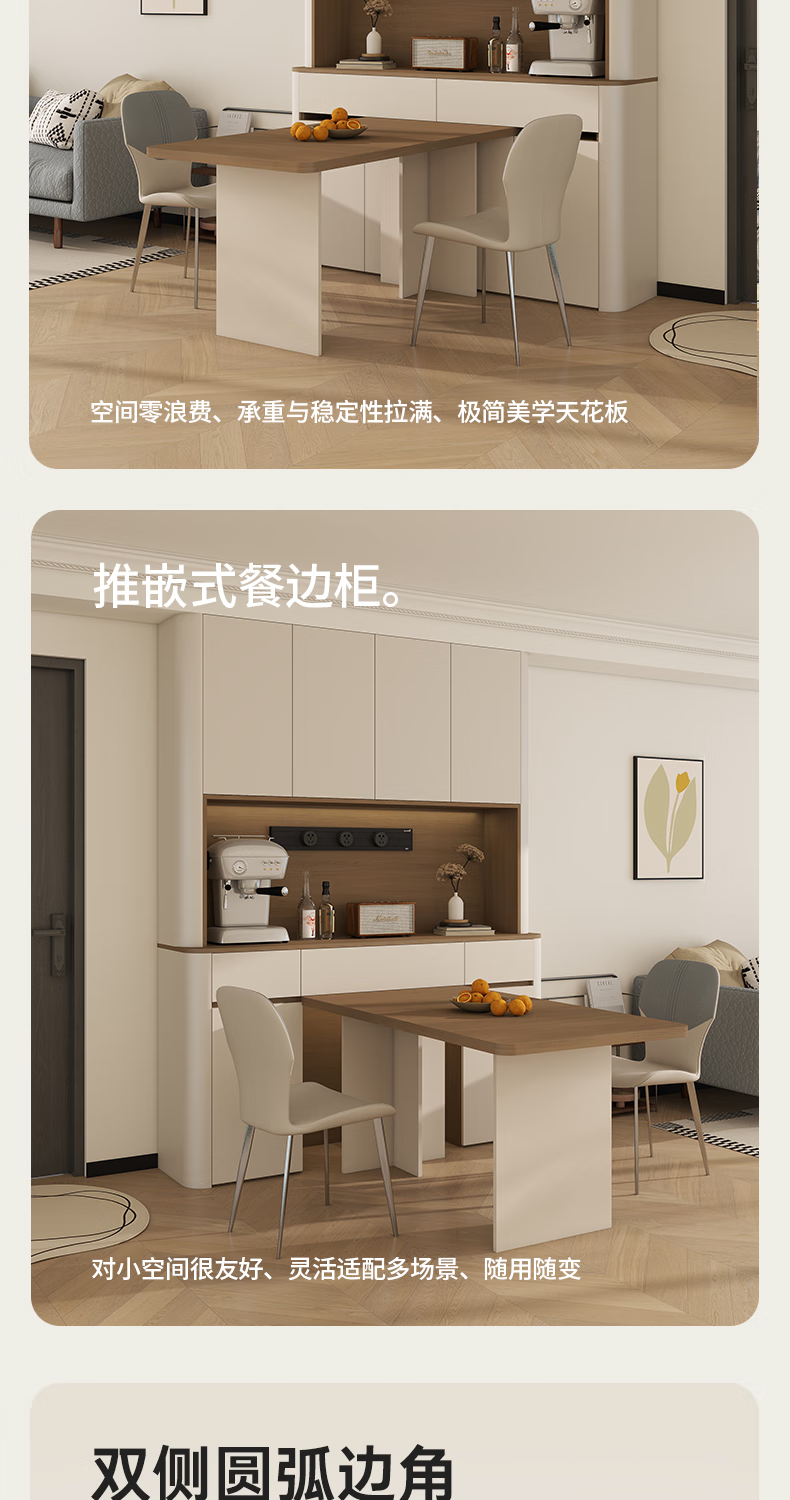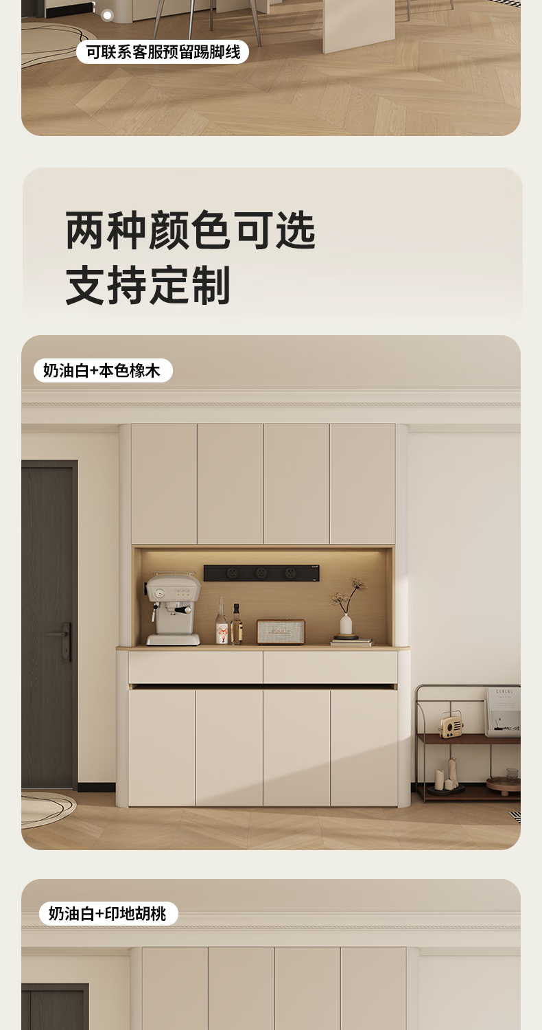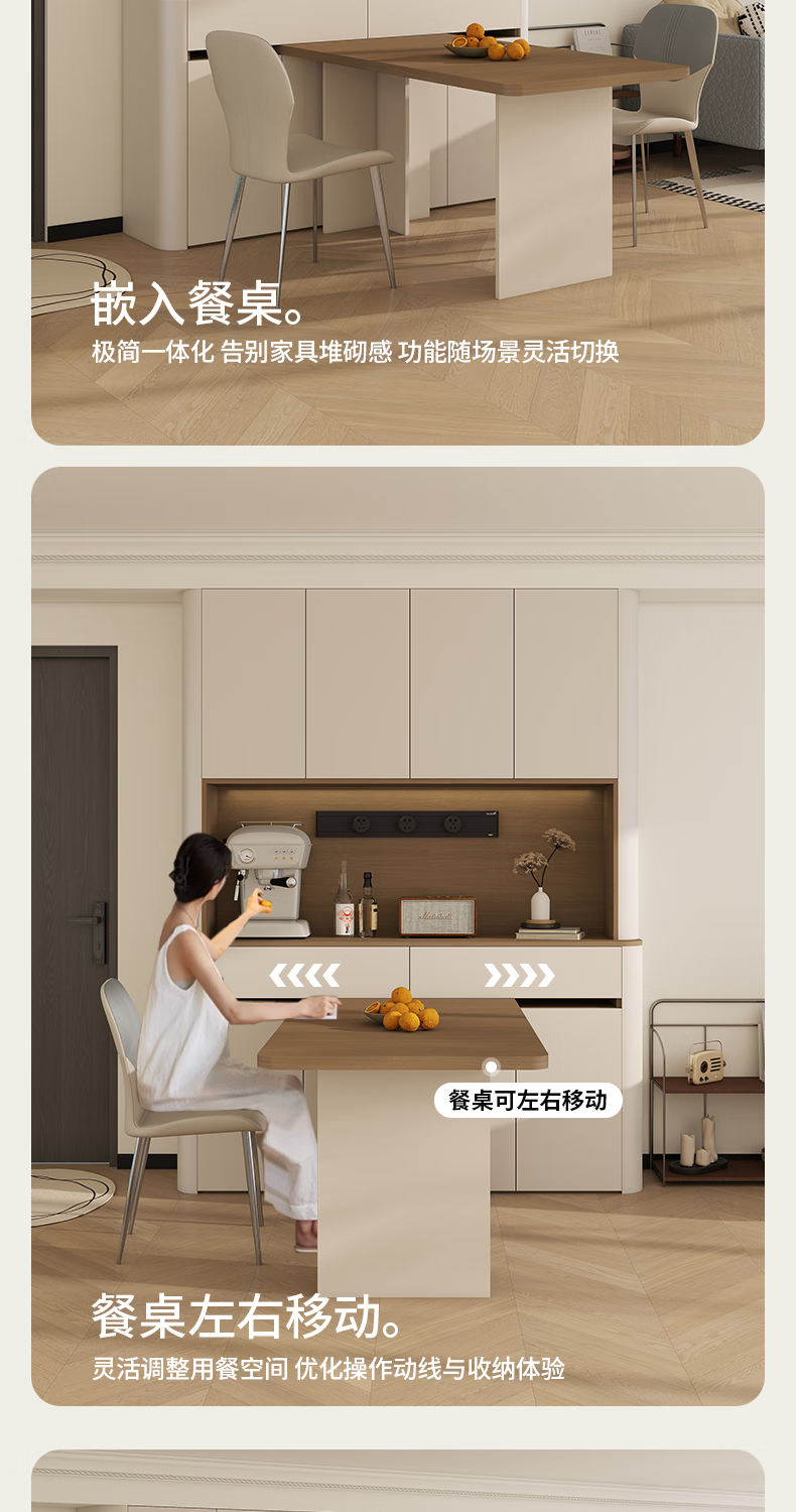 Yijuge solid wood mid-century style sideboard can be embedded into the dining table and is integrated into the wall. Living room home storage cabinet dining side table storage cabinet A) Length 138 Height 95/Cream White + Indy Walnut
