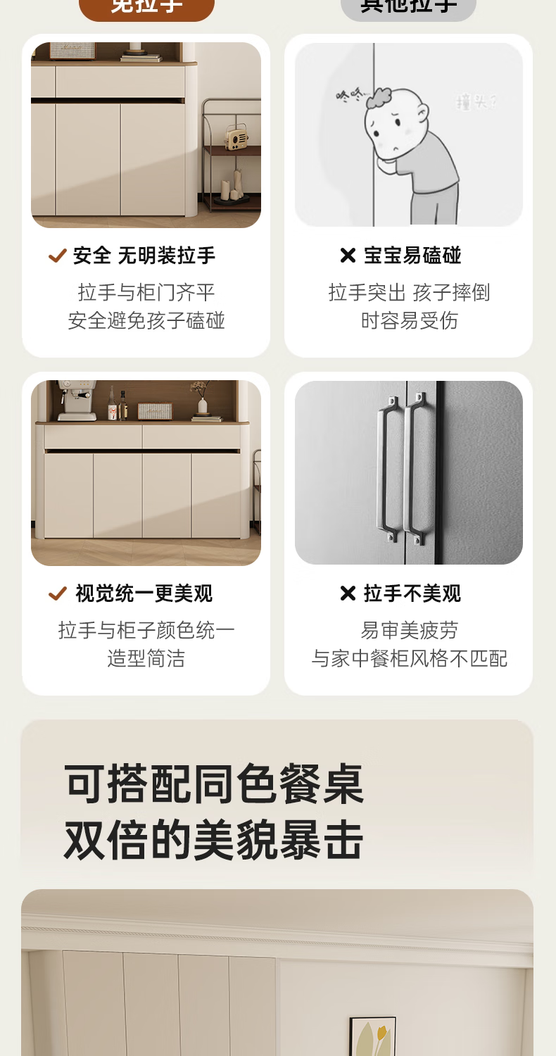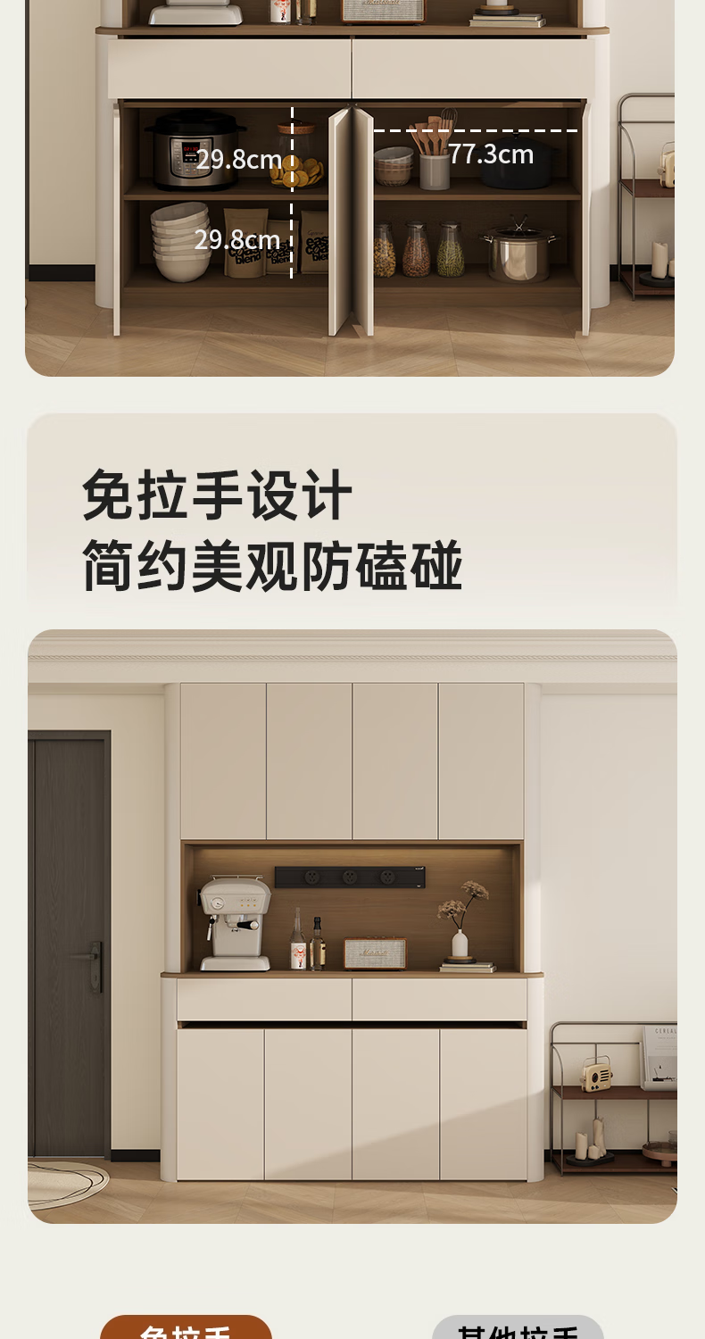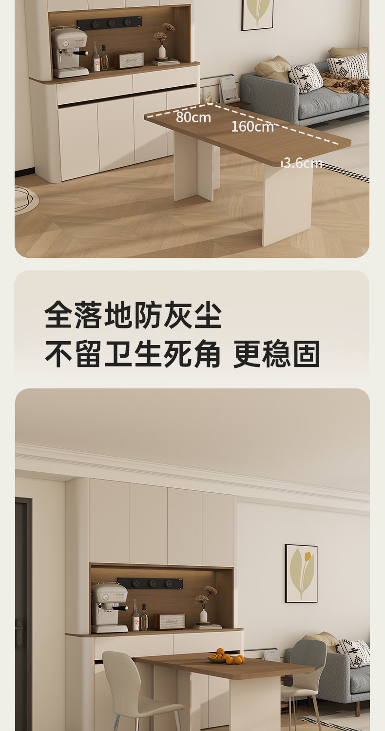 Yijuge solid wood mid-century style sideboard can be embedded into the dining table and is integrated into the wall. Living room home storage cabinet dining side table storage cabinet A) Length 138 Height 95/Cream White + Indy Walnut