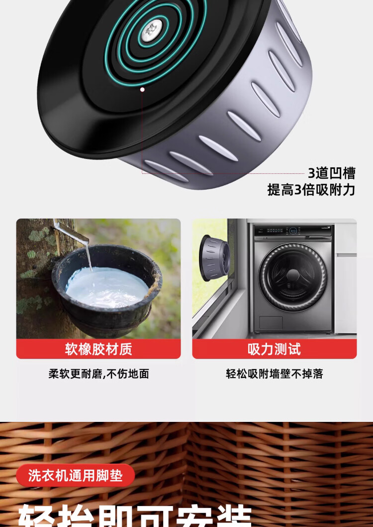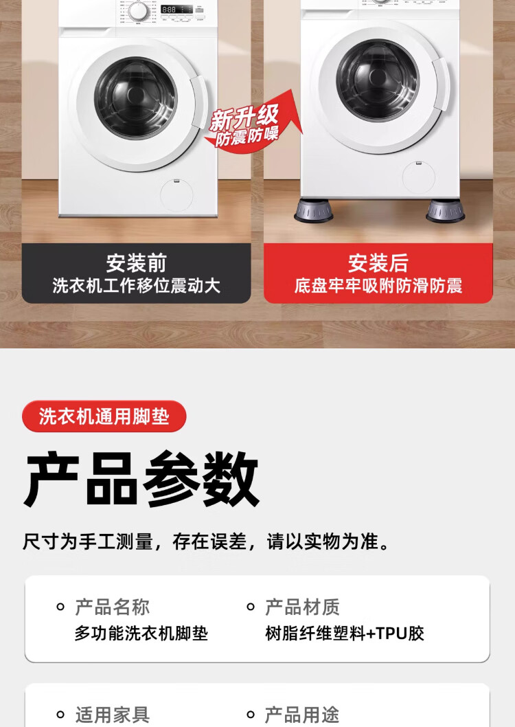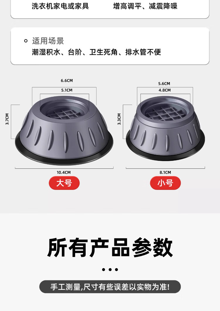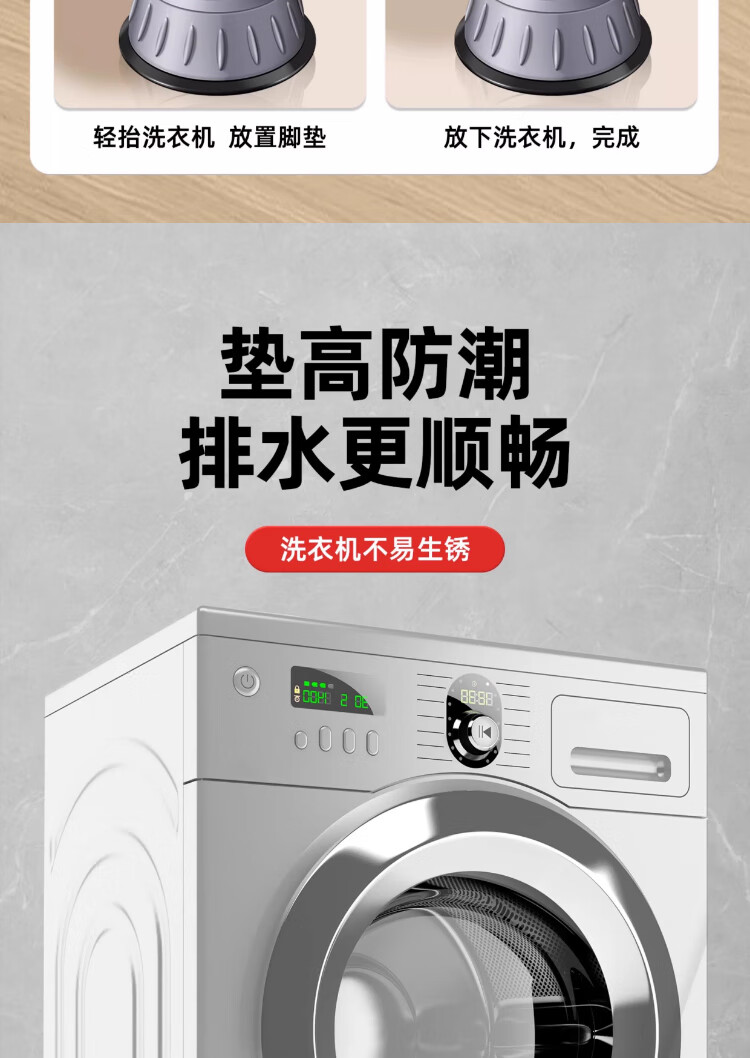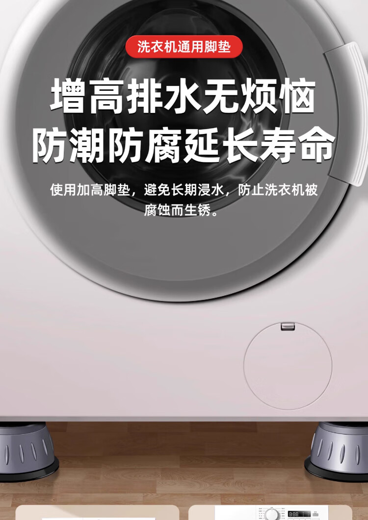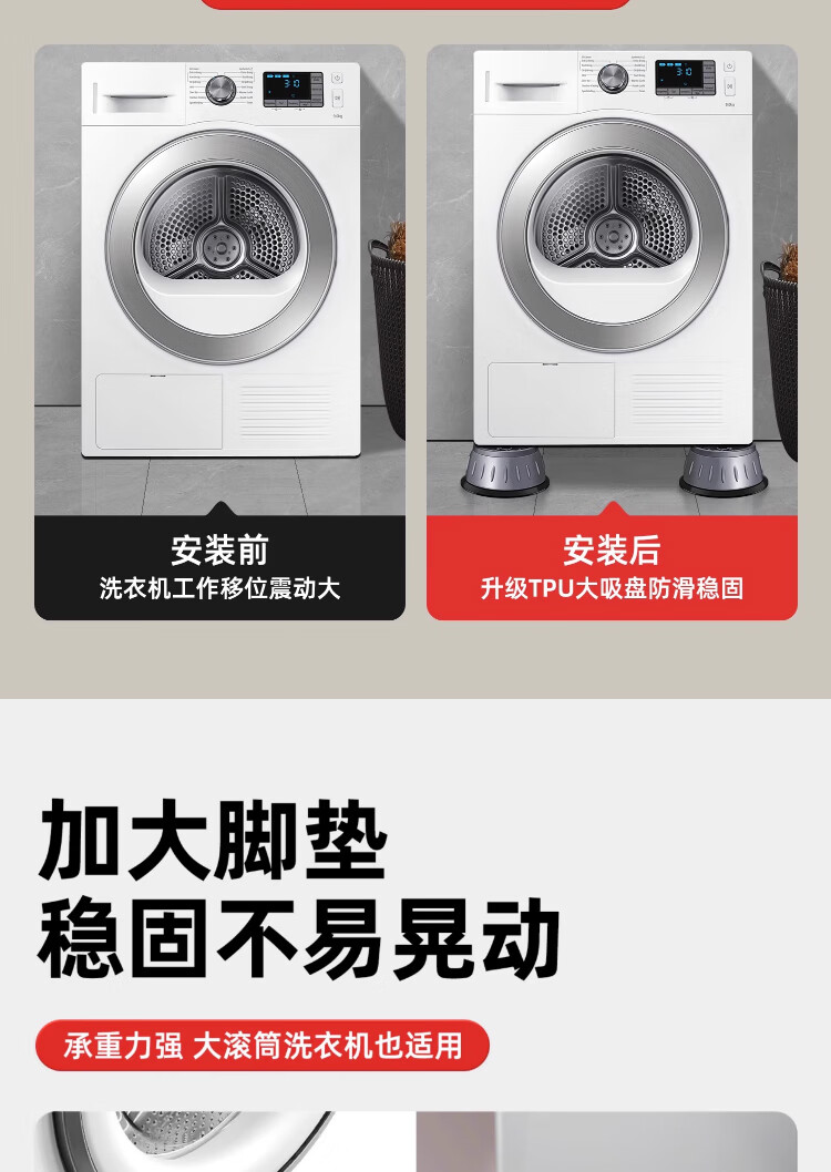 Washing machine base universal fixed tripod mat bracket fully automatic roller heightening bracket anti-slip anti-shock foot pad universal 2-pack small size 8cm suction cup anti-slip