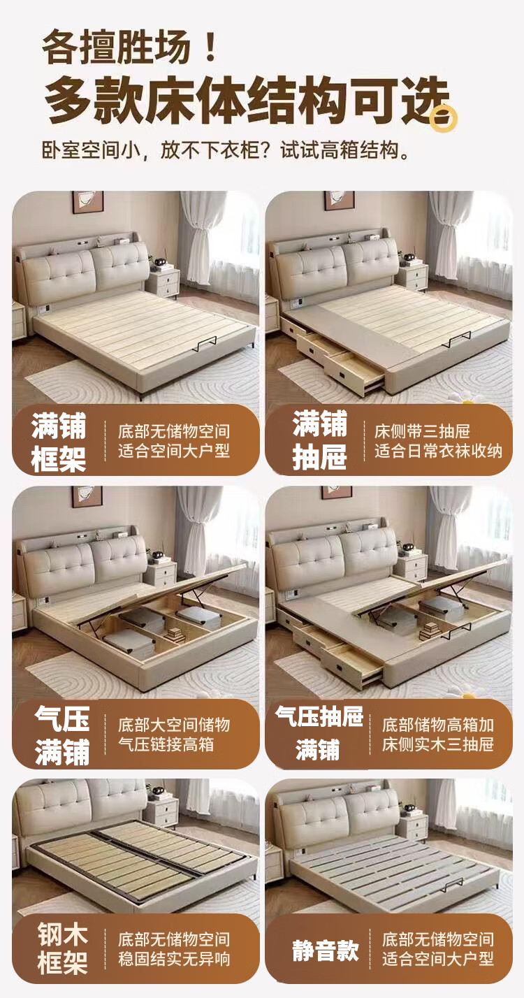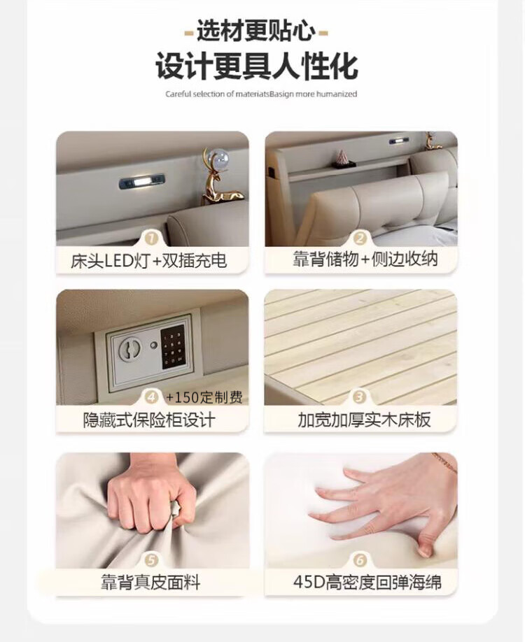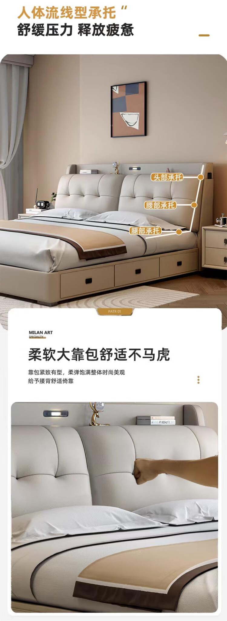 Yi Meng Bed Simple leather bed Master bedroom cream storage storage large bed Multi-functional bedroom double bed Soft wedding bed Single bed + 1 cabinet + 9D latex mattress (comfortable and soft to sleep) 1.8x2m drawer storage model Upgraded silent full bed