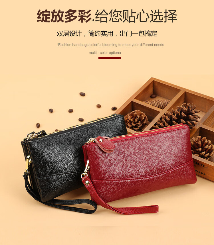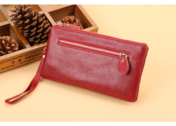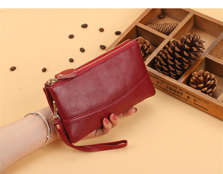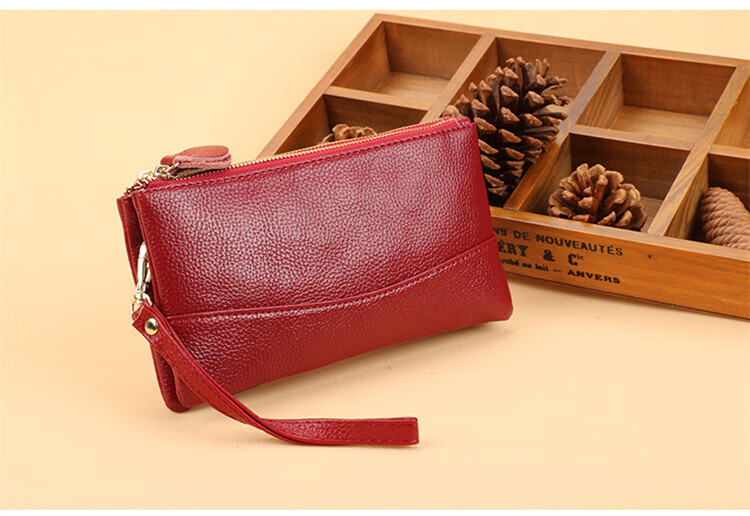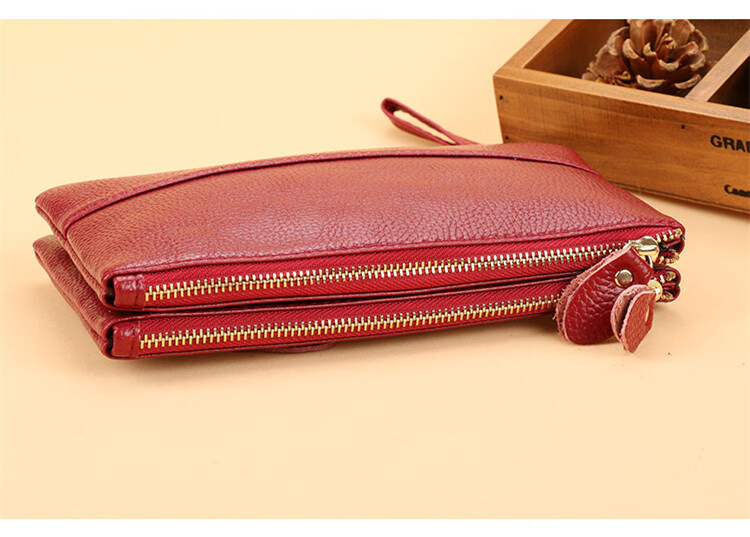 Scarecrow New Fashion Clutch Women's Long Double Zipper Large Capacity Wallet Double Layer Multifunctional Mobile Phone Bag Coin Purse Brand Wife Mom Mother Gift Wine Red