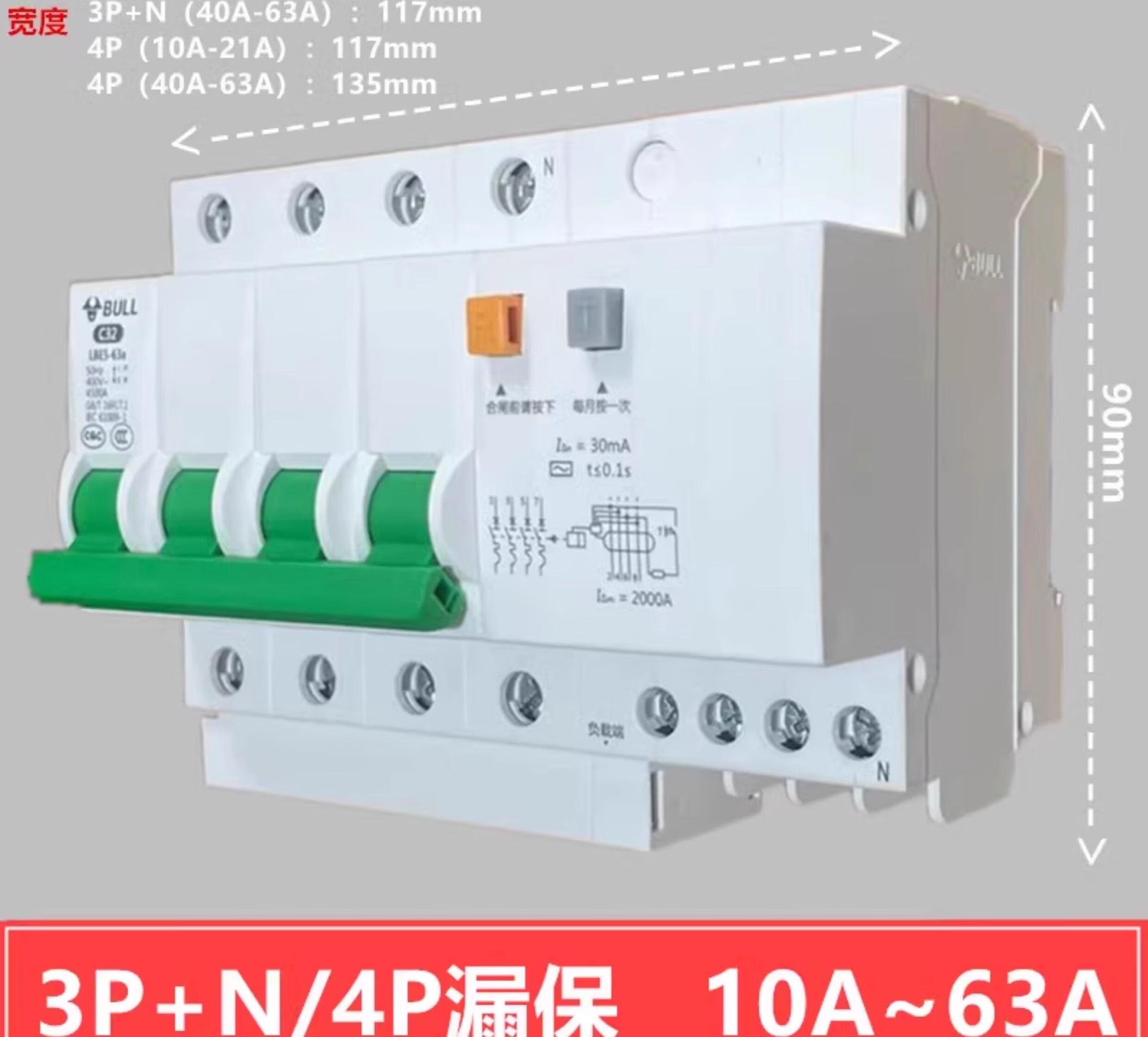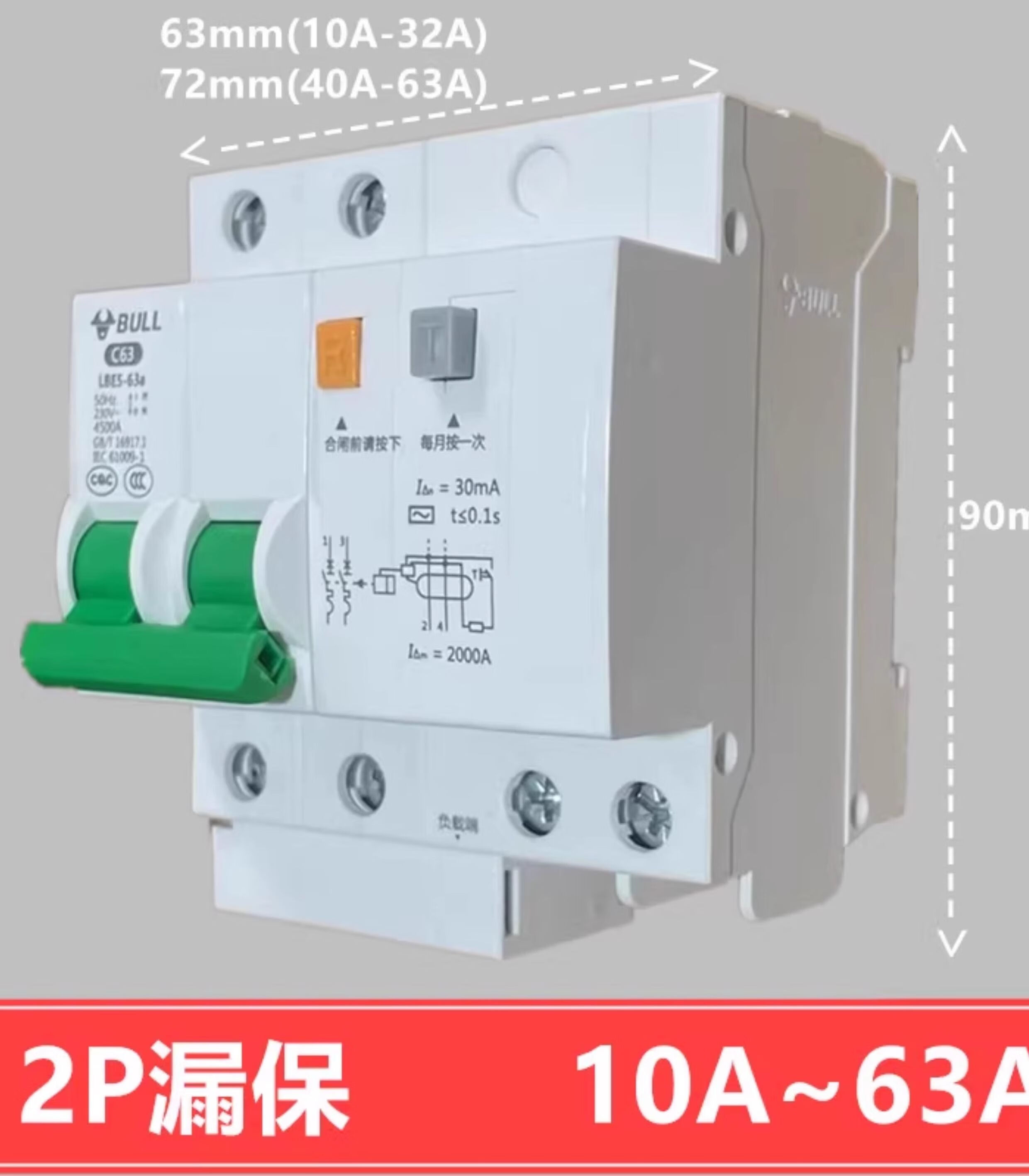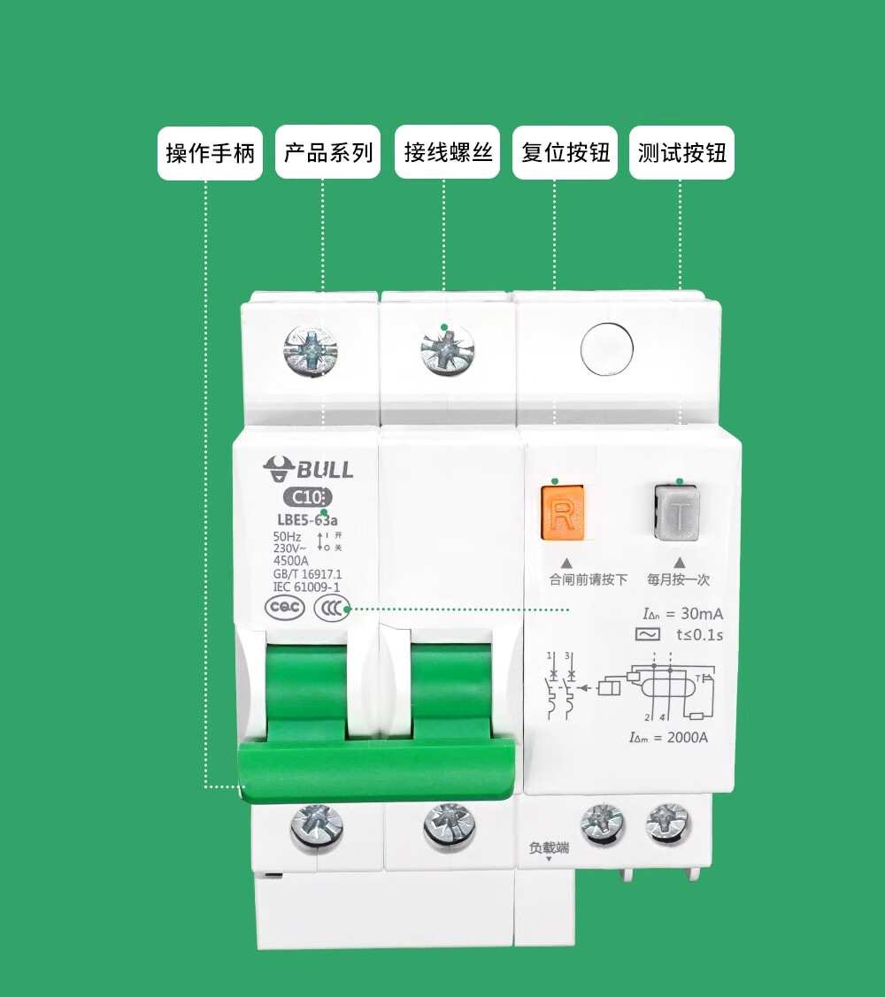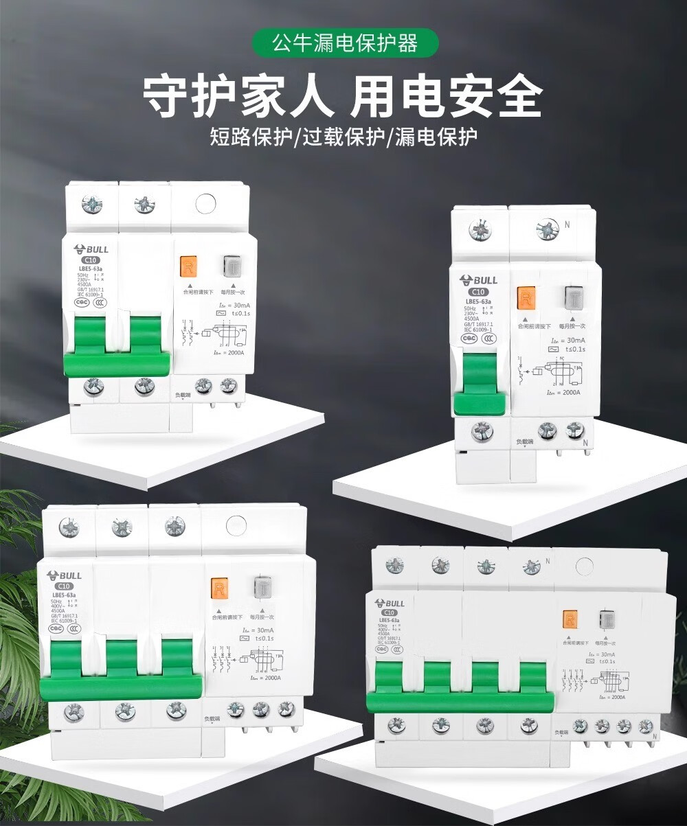 Bull leakage protection switch LBE5 leakage protector air-open household leakage protection circuit breaker 2p air switch 2p leakage 100A