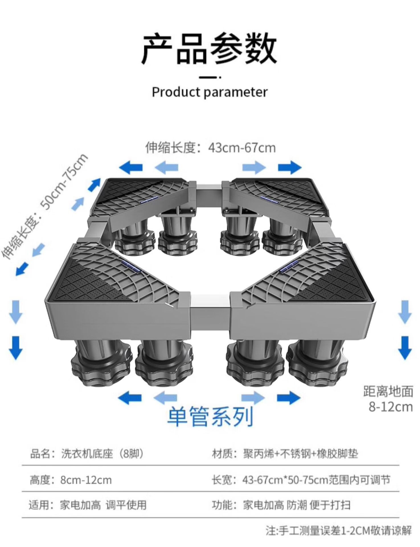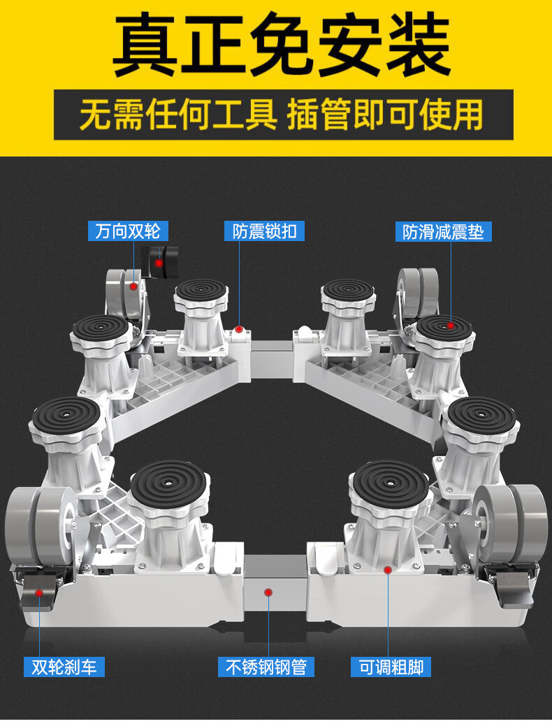 Beishi Universal Washing Machine Base Frame Foot Pads Adjustable Height Slide Block Shock Refrigerator Air Conditioner Heightening Mobile Increase DJDZ-4J Upgraded 4 Threaded Feet Special Offer