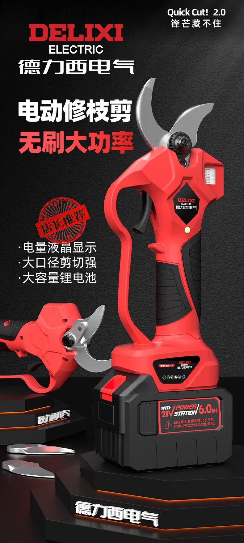 Power Lion (wynn s) (wynn s) electric electric pruning shears lithium battery electric shears for cutting branches and gardens special rechargeable brushless upgraded model 2.0Ah one charge one charge