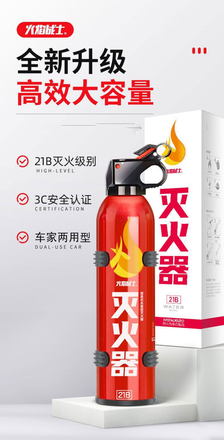 Vehicle-mounted fire extinguisher water-based household high-end 21B new energy national standard small portable high temperature resistant environmentally friendly water-based 2 bottles 21B 620ml water-based fire extinguisher