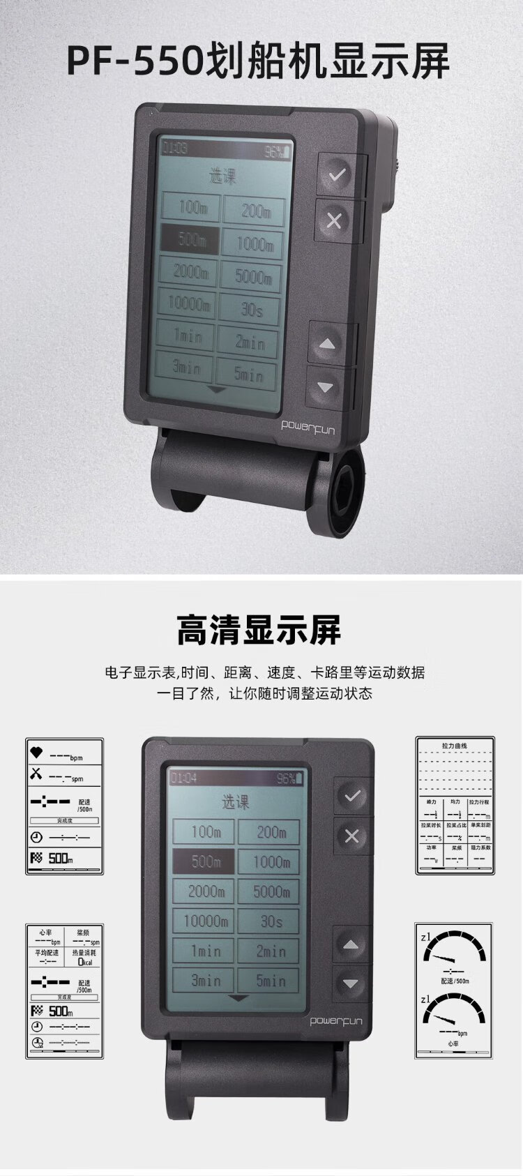 POWERFUN500/550 original meter professional wind resistance rowing machine display accessories PF-550 rowing machine meter