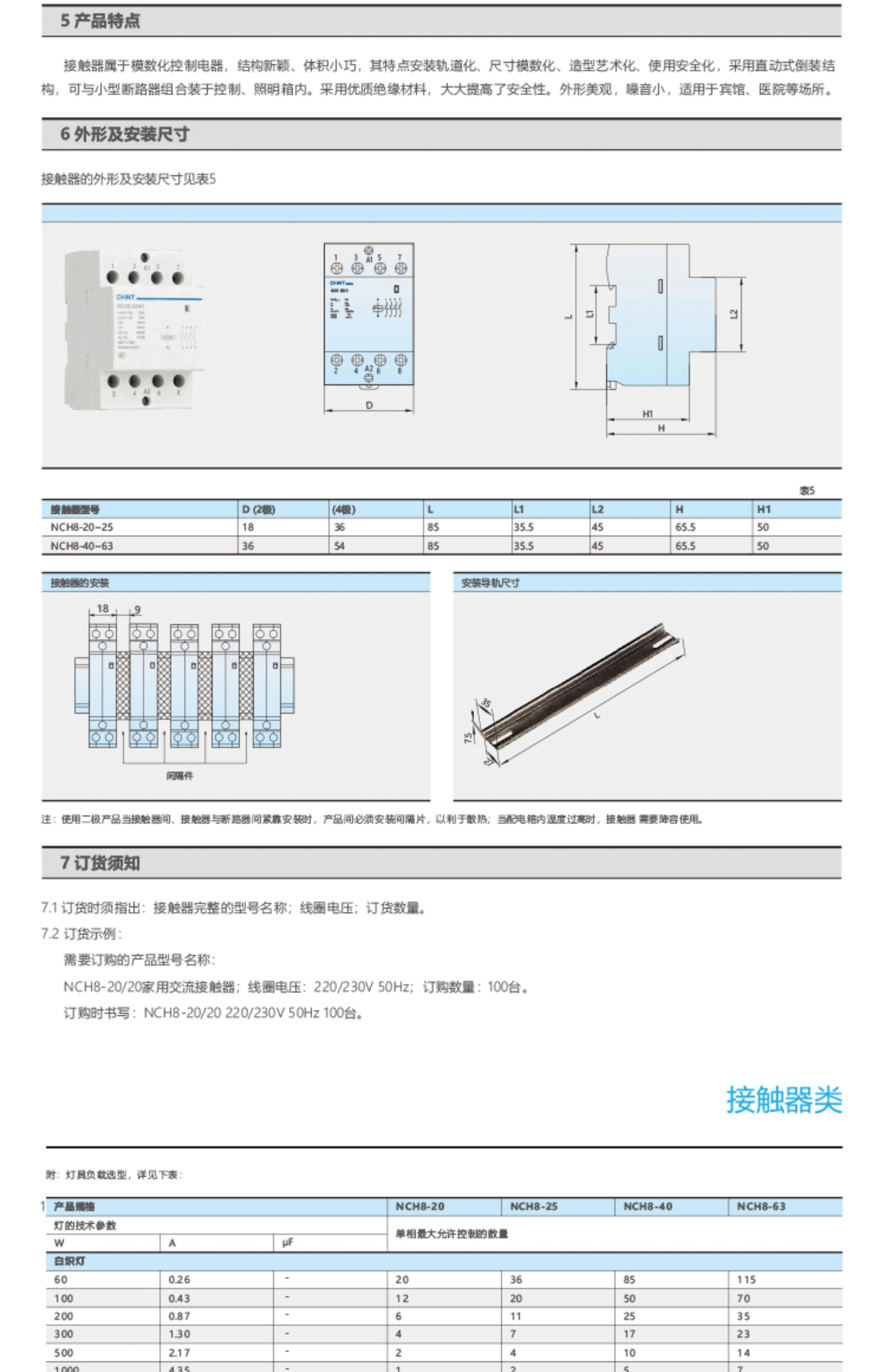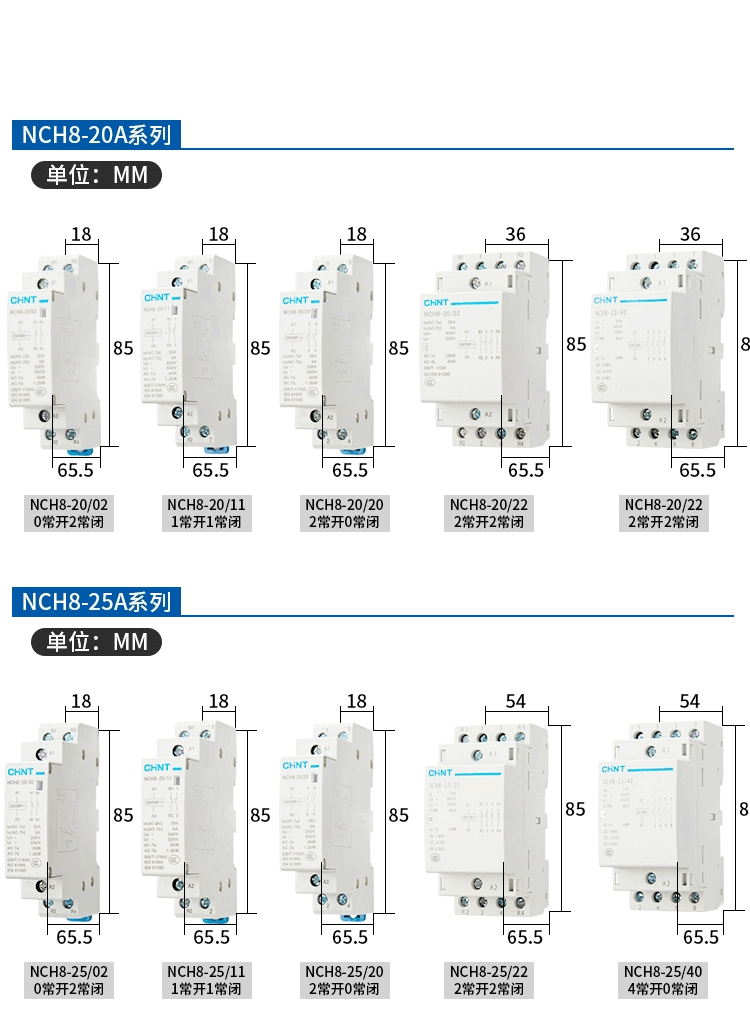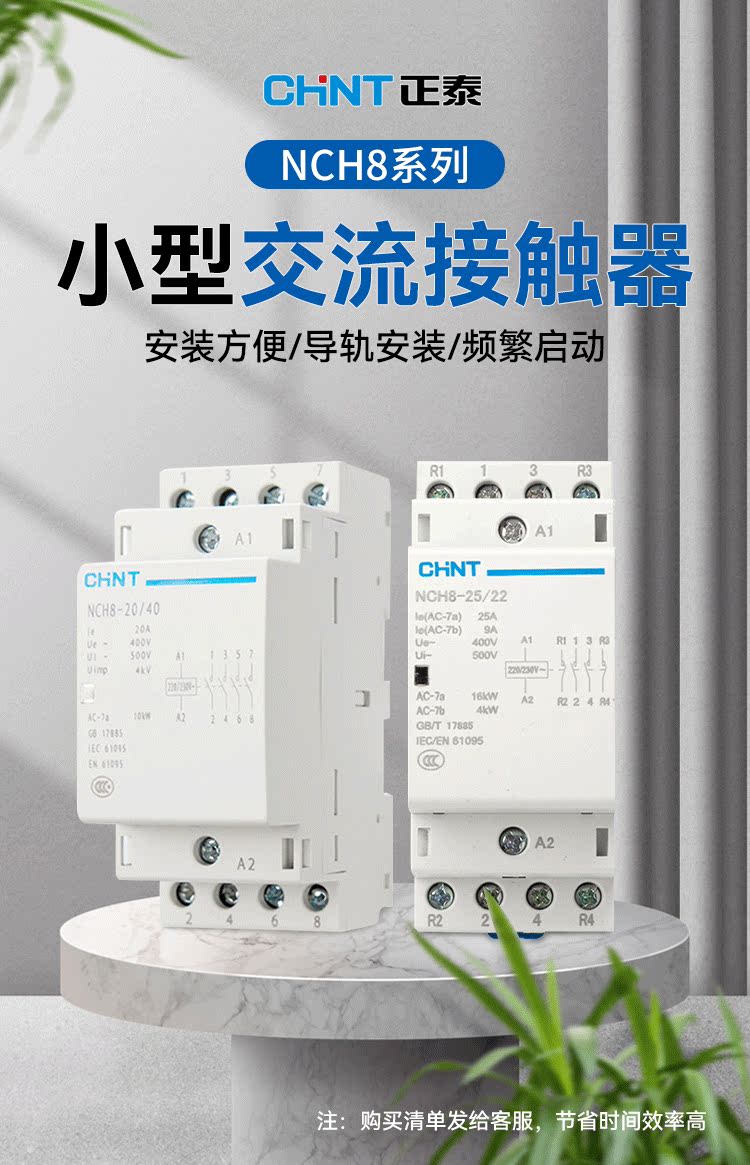 Chint NCH8 household AC contactor 220v single-phase small 40A rail type 25A micro 20A single P 40 NCH8-20