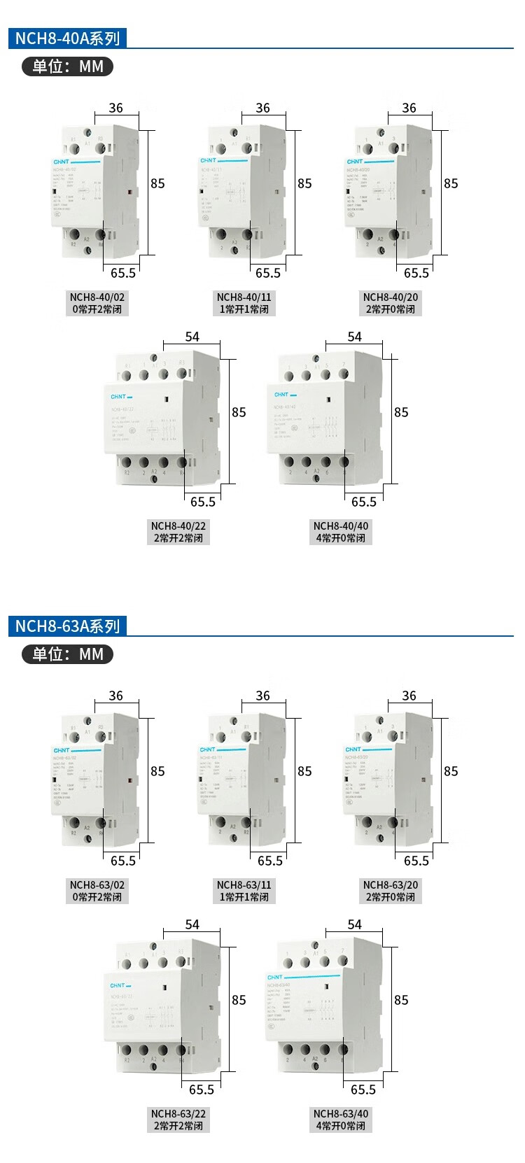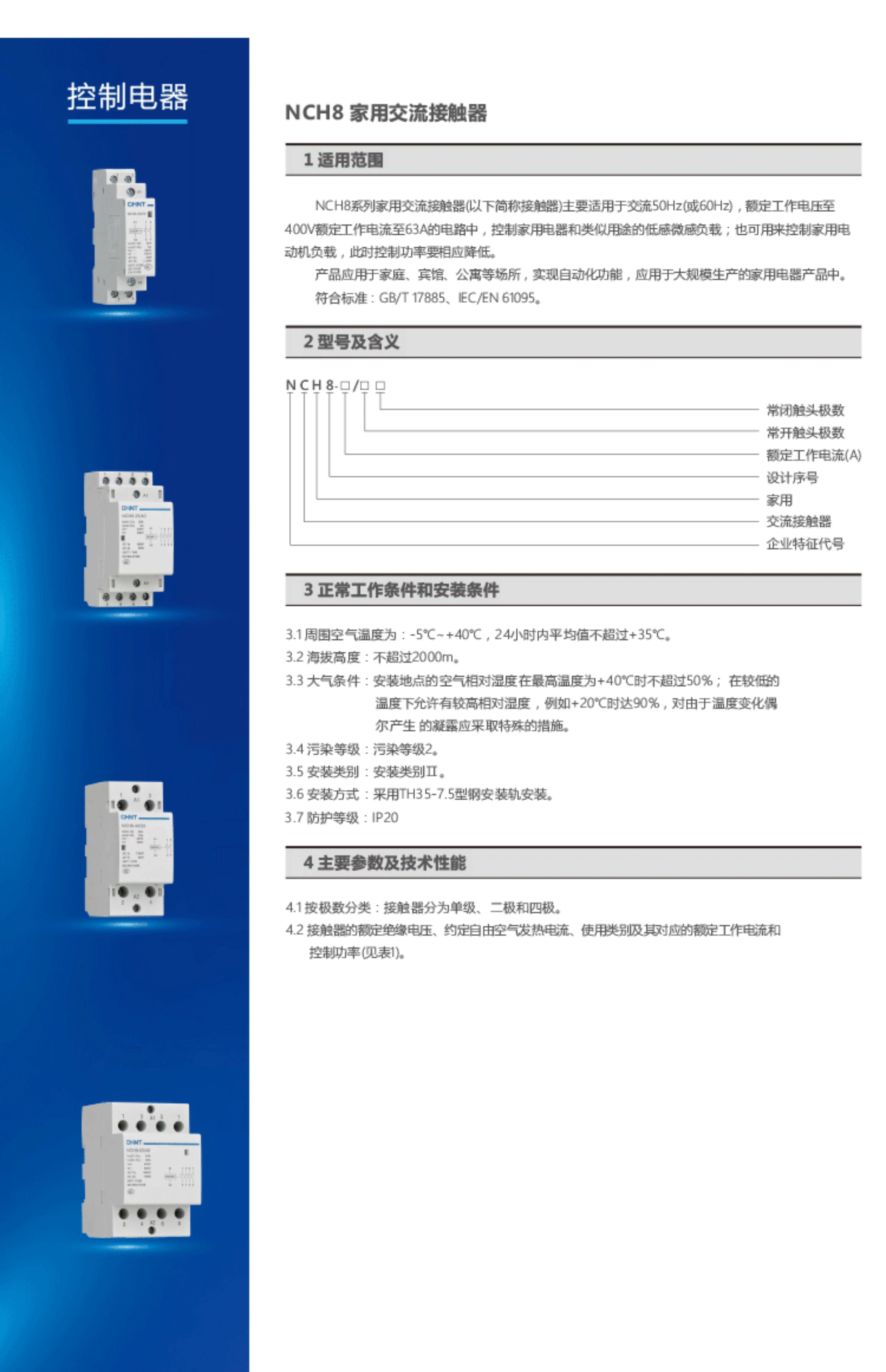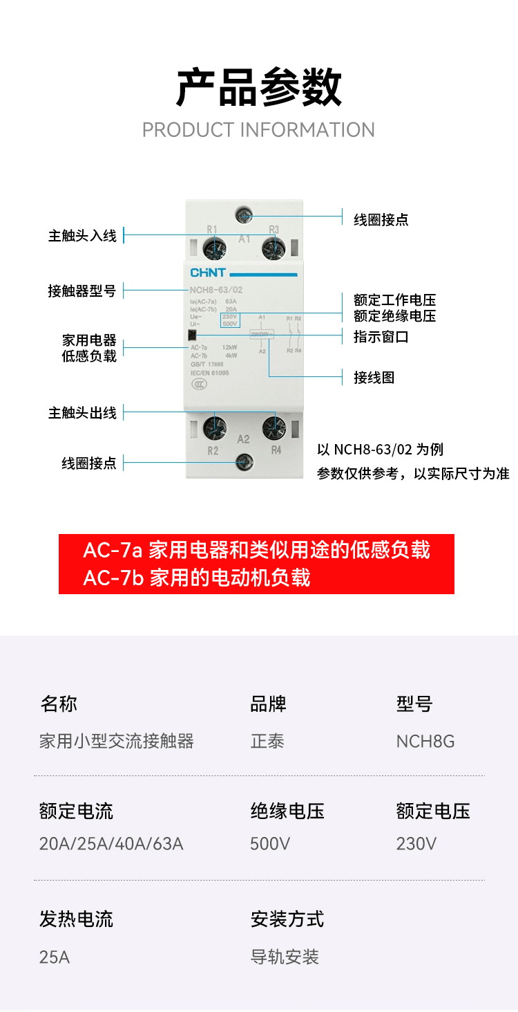 Chint NCH8 household AC contactor 220v single-phase small 40A rail type 25A micro 20A single P 40 NCH8-20