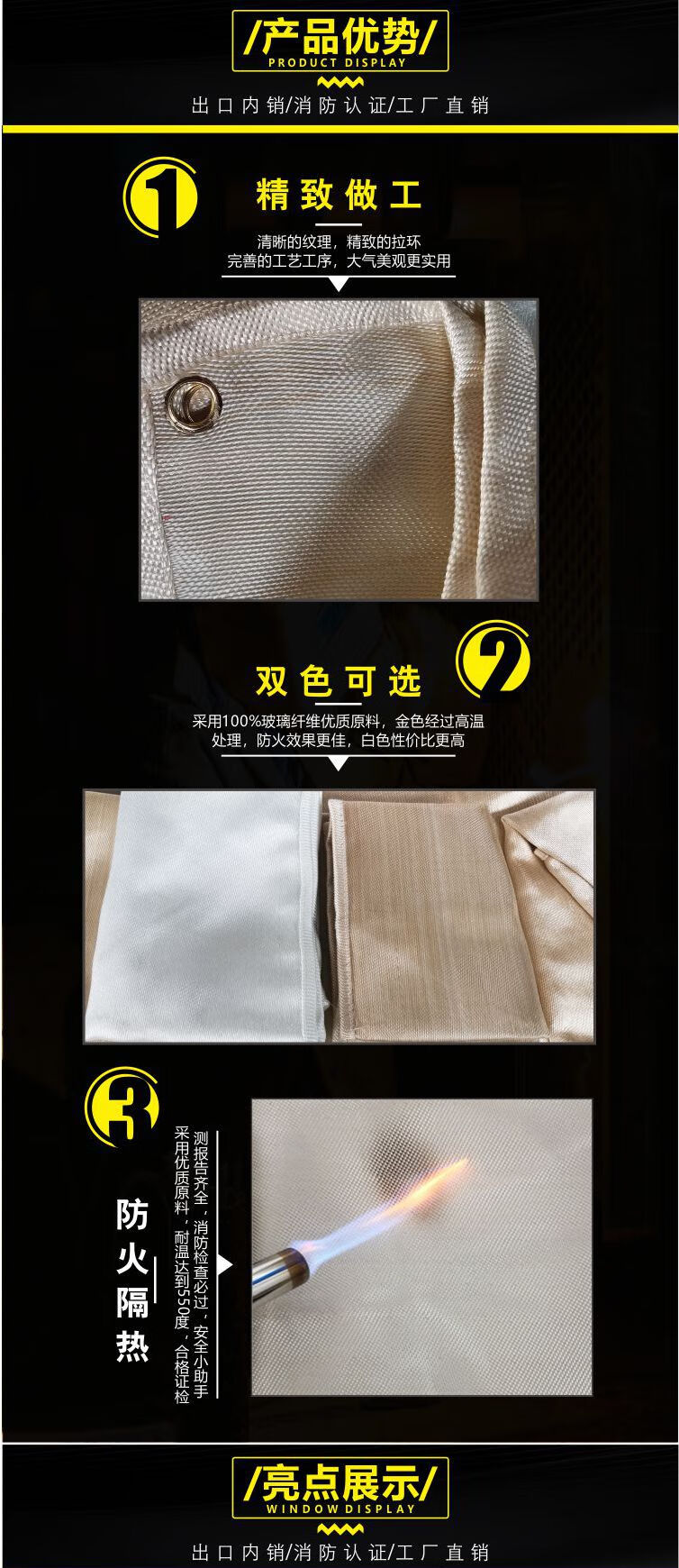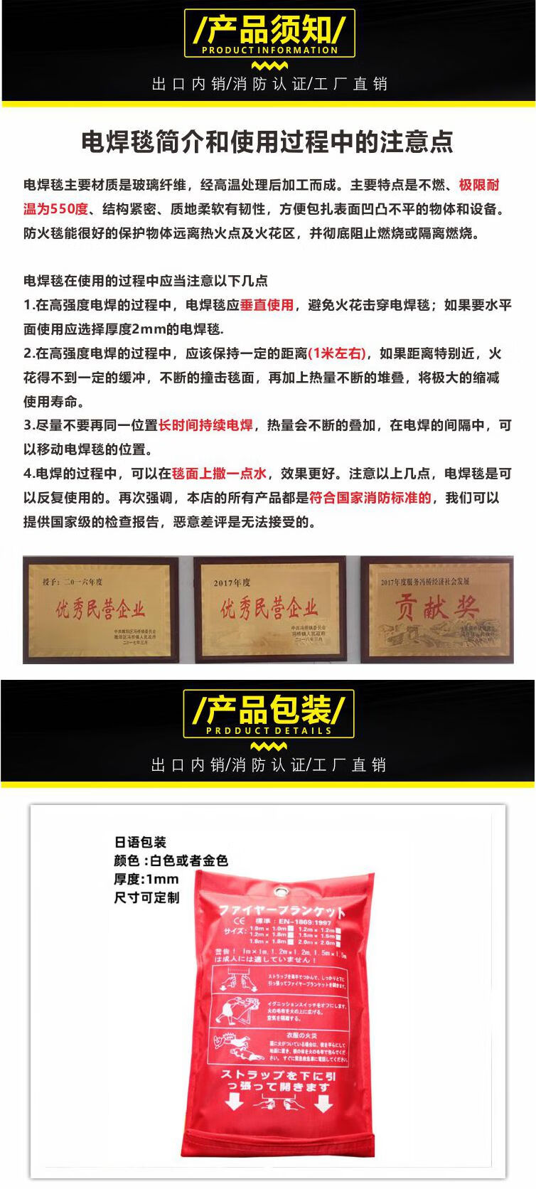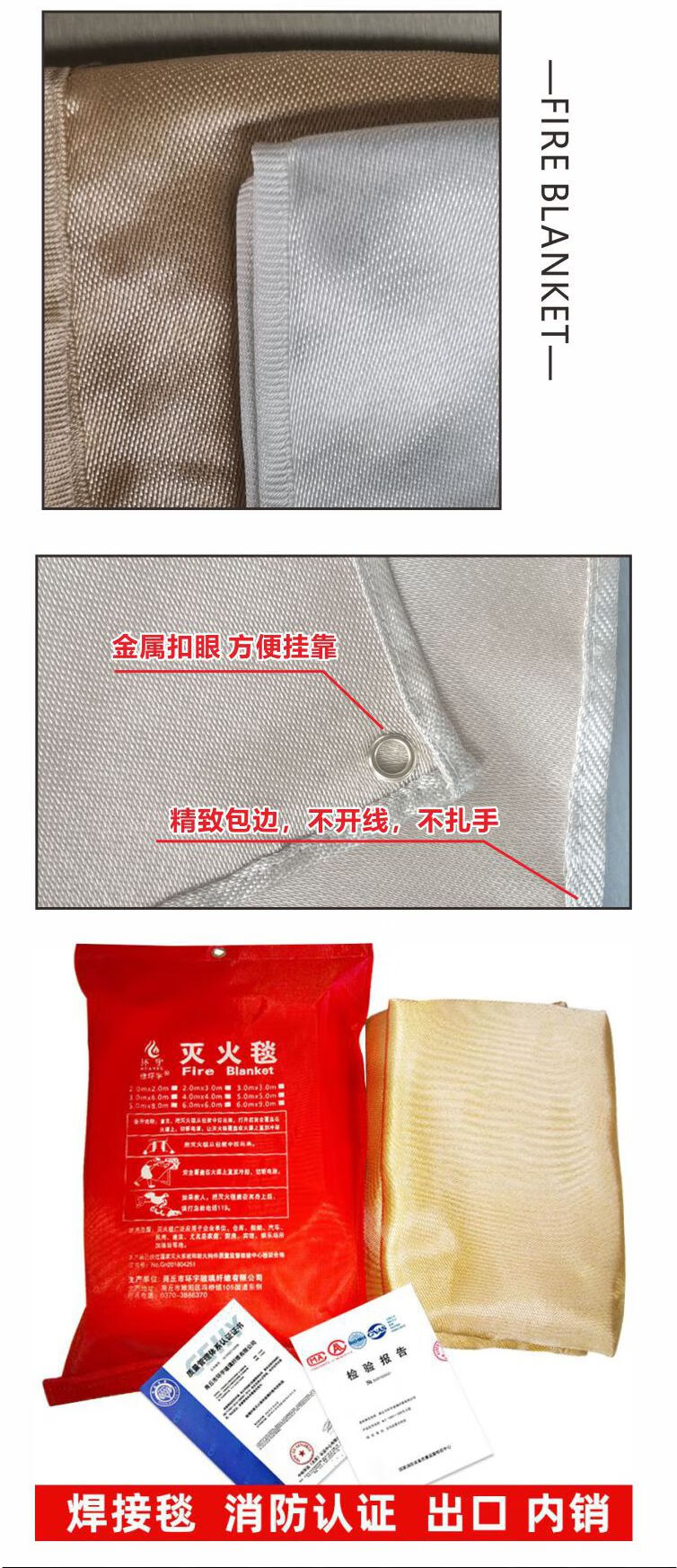 Welding blanket welding blanket glass fiber fiberglass high temperature resistant welding special fire blanket national standard fire certification high temperature resistant gold 1mm1.8X2.4 meters in stock
