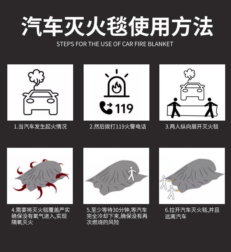 New energy vehicle fire-extinguishing blanket fire-fighting flame-retardant cloth glass fiber high temperature resistant charging motor vehicle clothing self-ignition oxygen insulation glass fiber 6*9 fire-extinguishing blanket car special