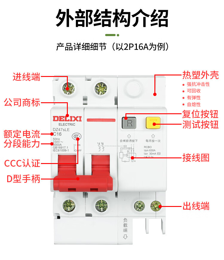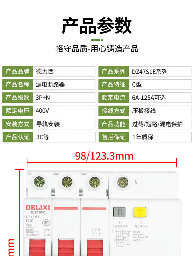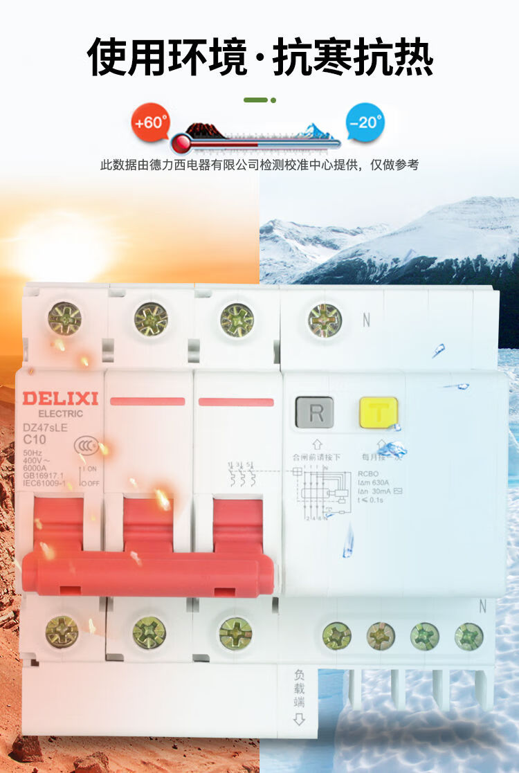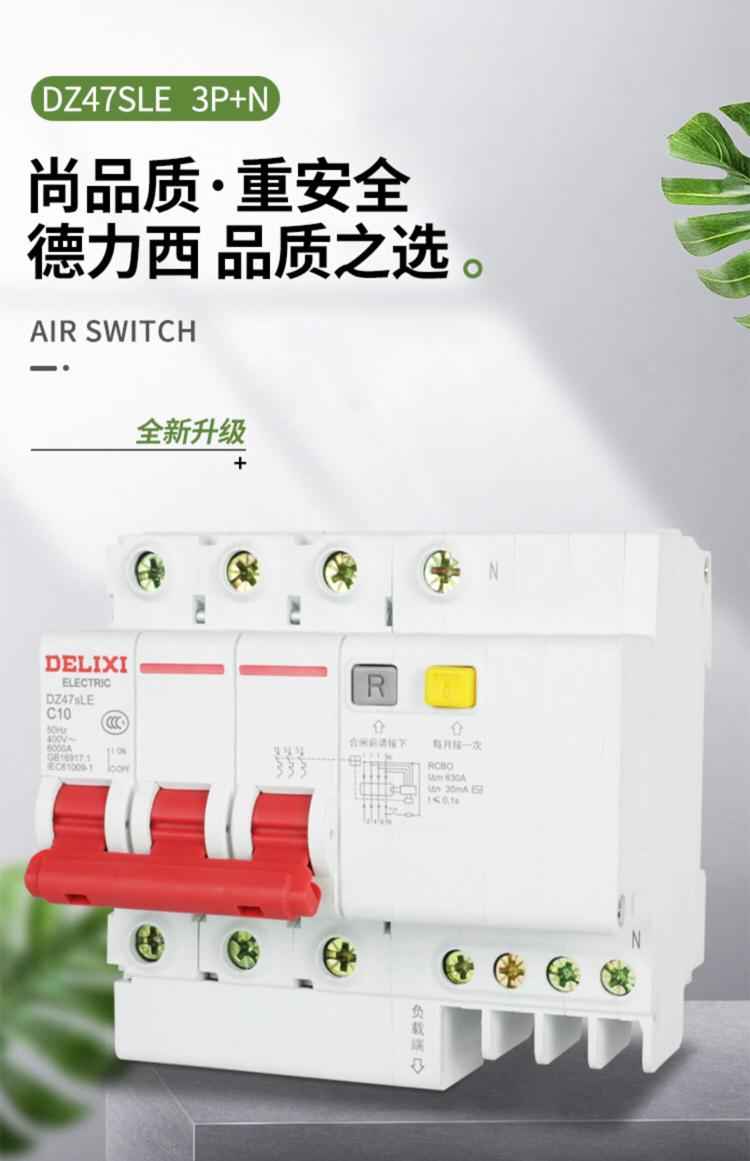 Delixi DZ47SLE household 3P+N leakage circuit breaker 63 leakage protection switch 16A air switch 20A32A40 40A 3P+N