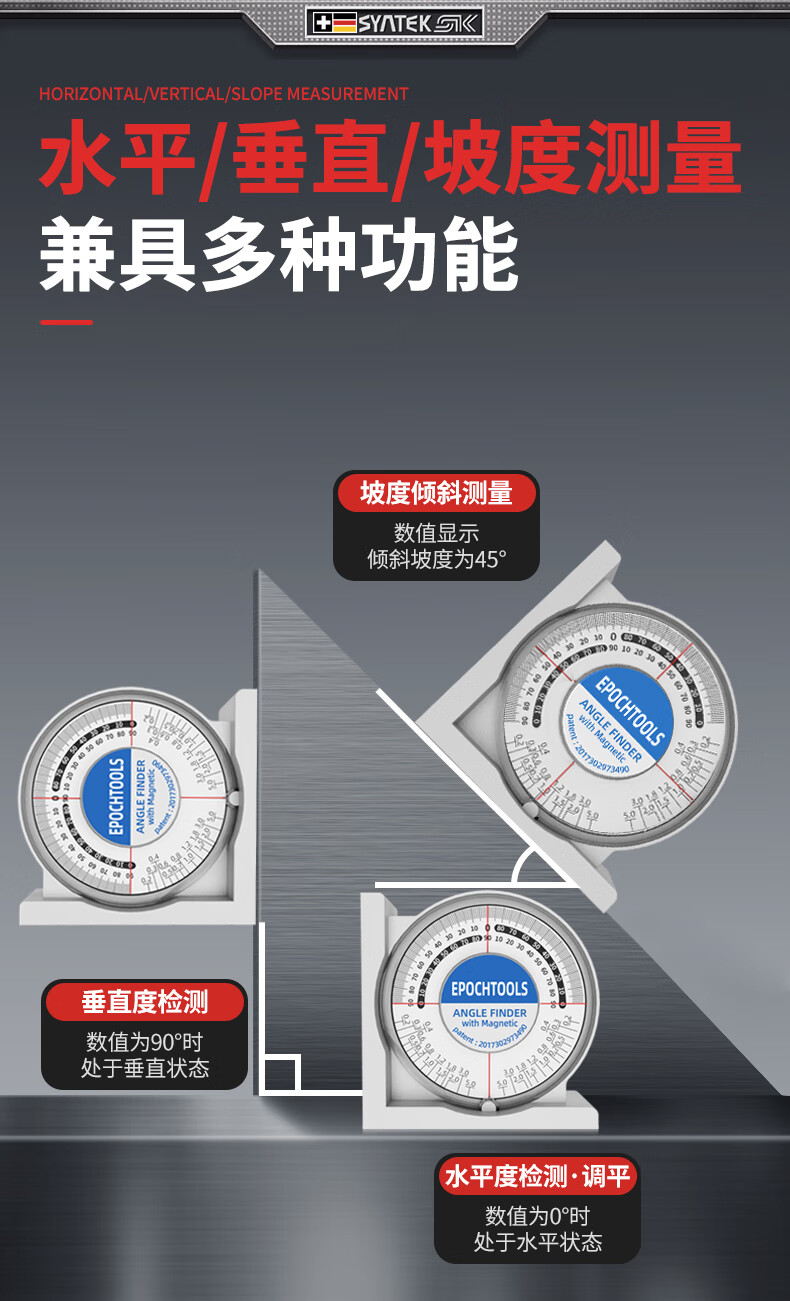 SYNTEK German level electronic high-precision inclinometer digital display angle measuring instrument flat water ruler slope meter with strong magnetic economical slope ruler with tape bubbles