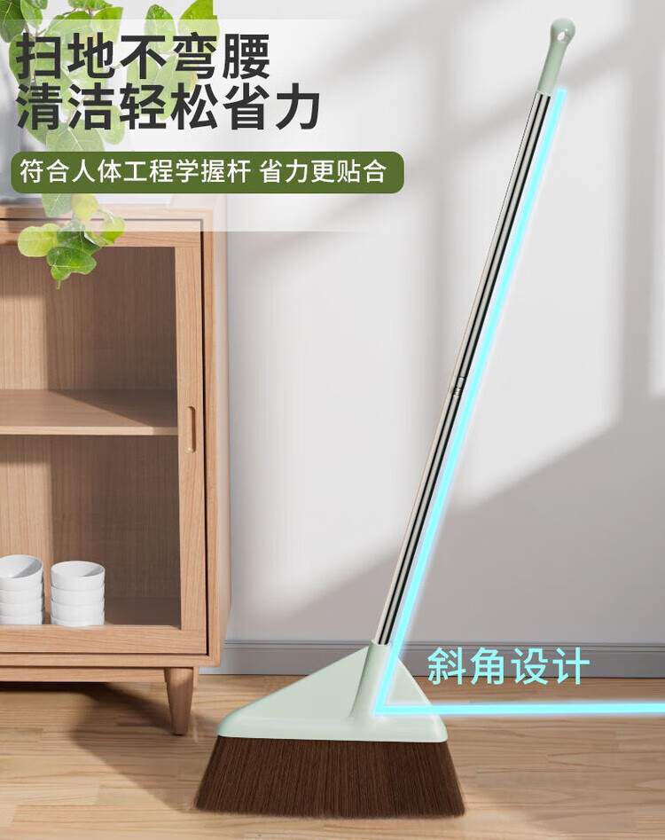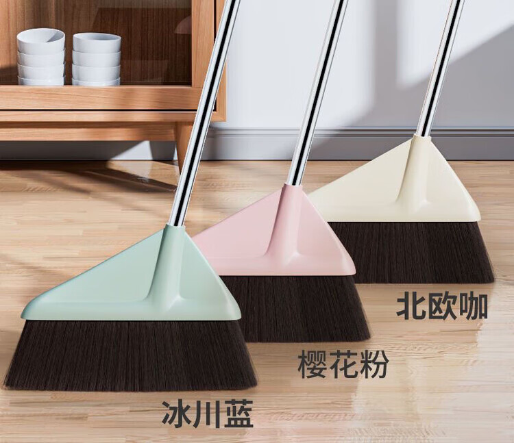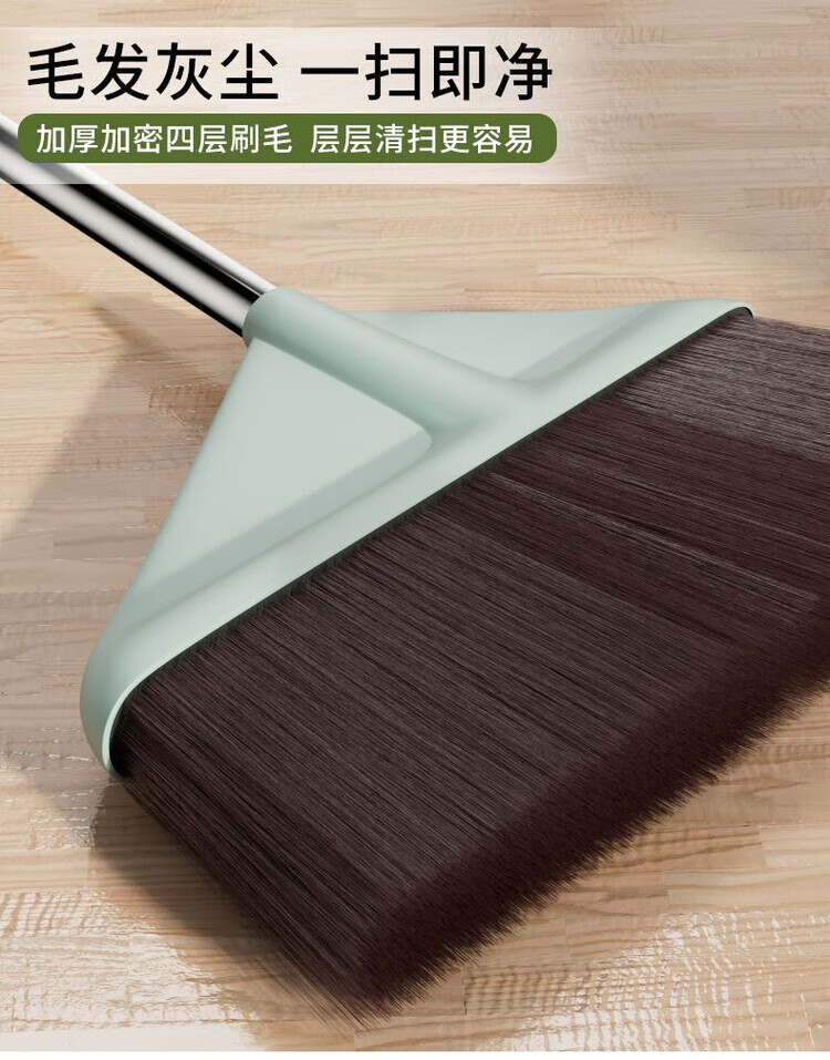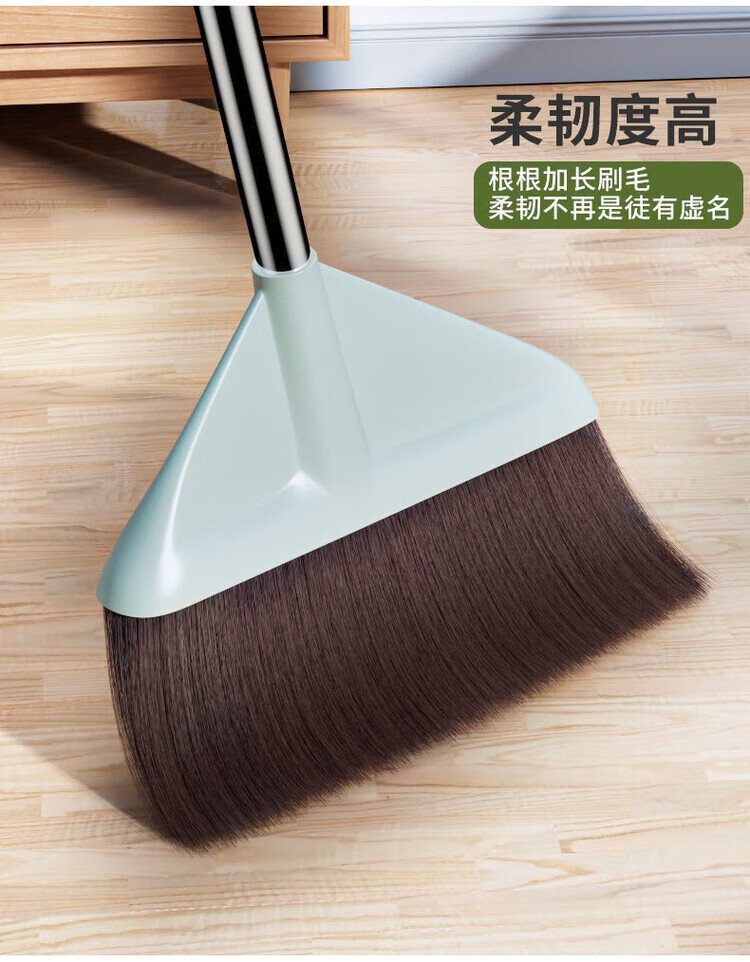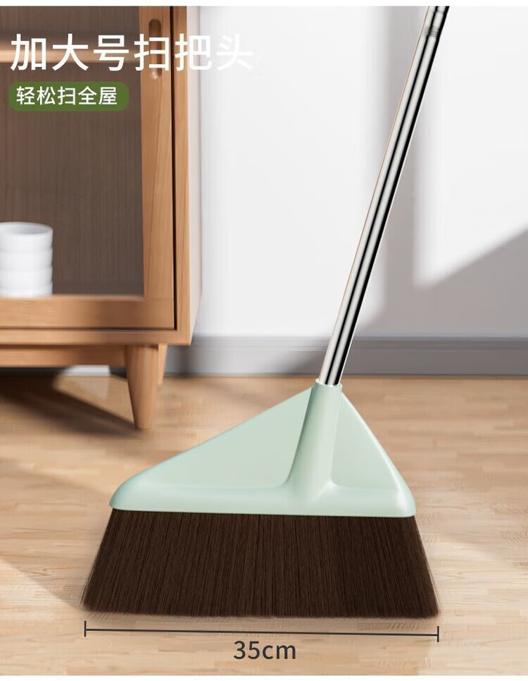 Broom single household single handle sweeping broom soft bristles enlarged broom combination non-stick hair long handle non-bending extended pole large broom glacier blue