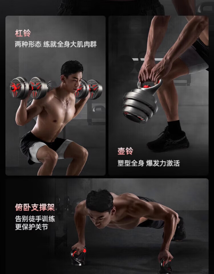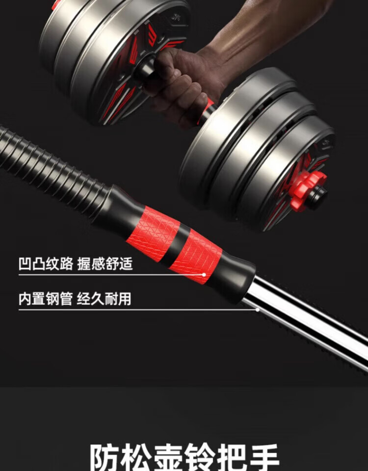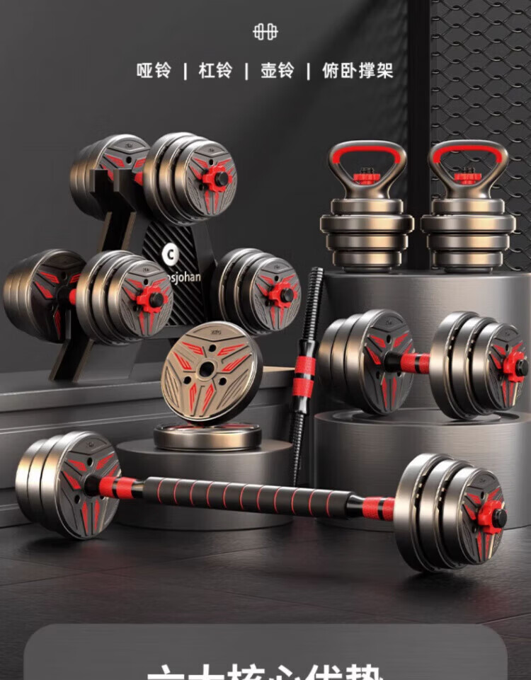 OIMG dumbbell men's fitness home equipment youth barbell adjustable weight boys dormitory kettlebell combination set 80% of people choose dual-purpose 20KG dumbbell + barbell