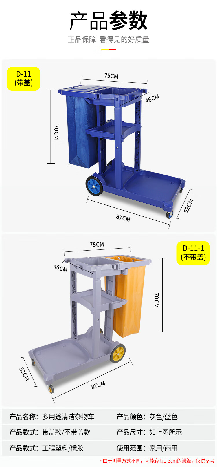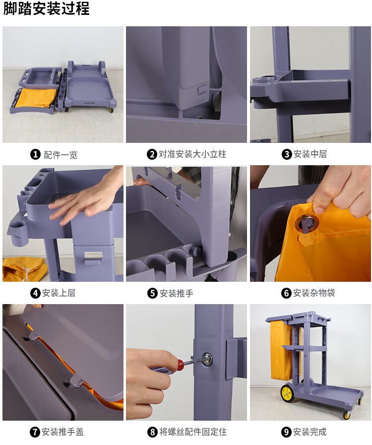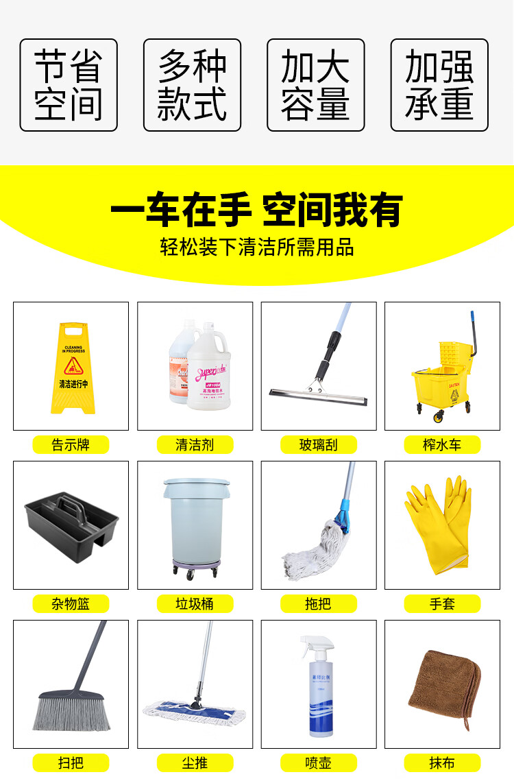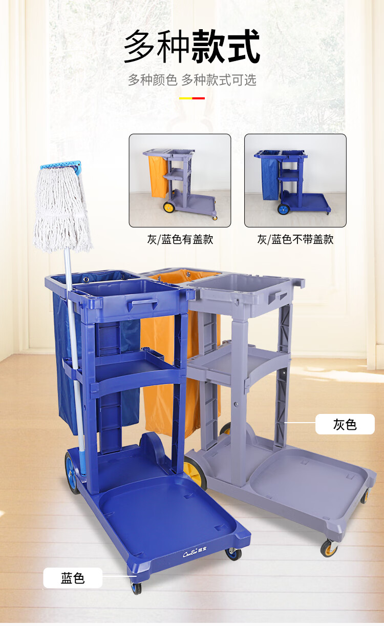 Cleaning Trolley Hotel Cleaning Car Multifunctional Linen Cart Property Cleaning Room Service Car Chaobao D-11 Cleaning Car Gray Uncovered Thickened Version