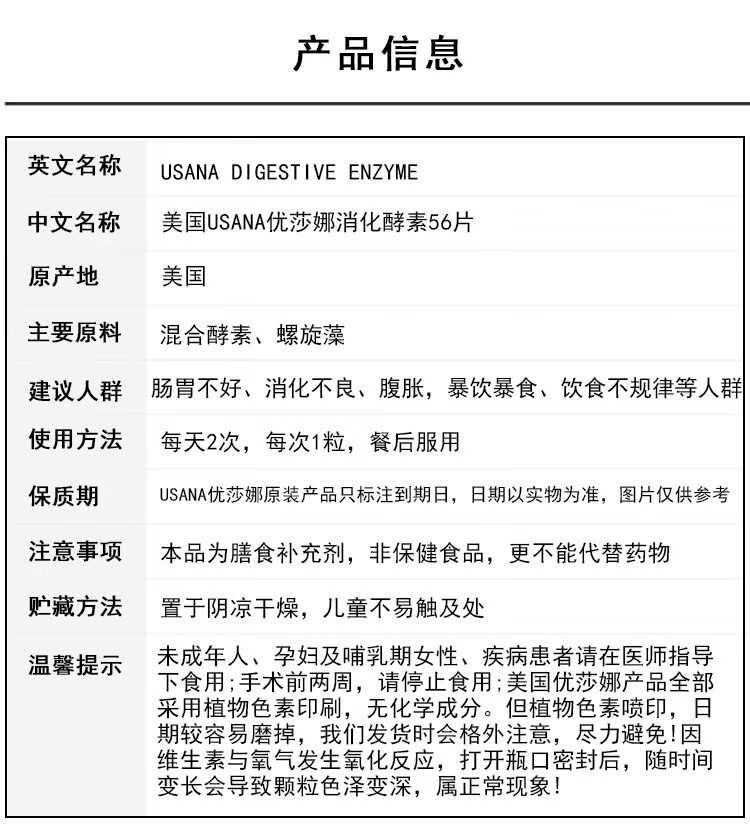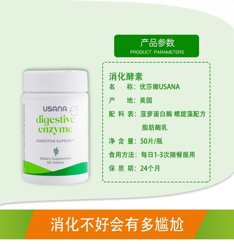USANA Digestive Enzymes 56 Tablets/Bottle USANA Baby Digestive Enzymes Natural Enzymes Strengthen the Stomach and Promote Digestion American Edition
