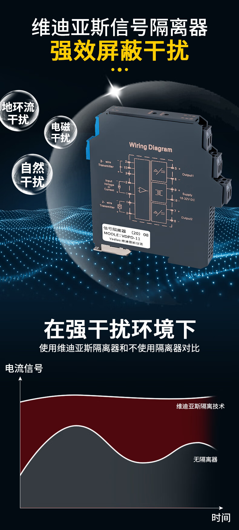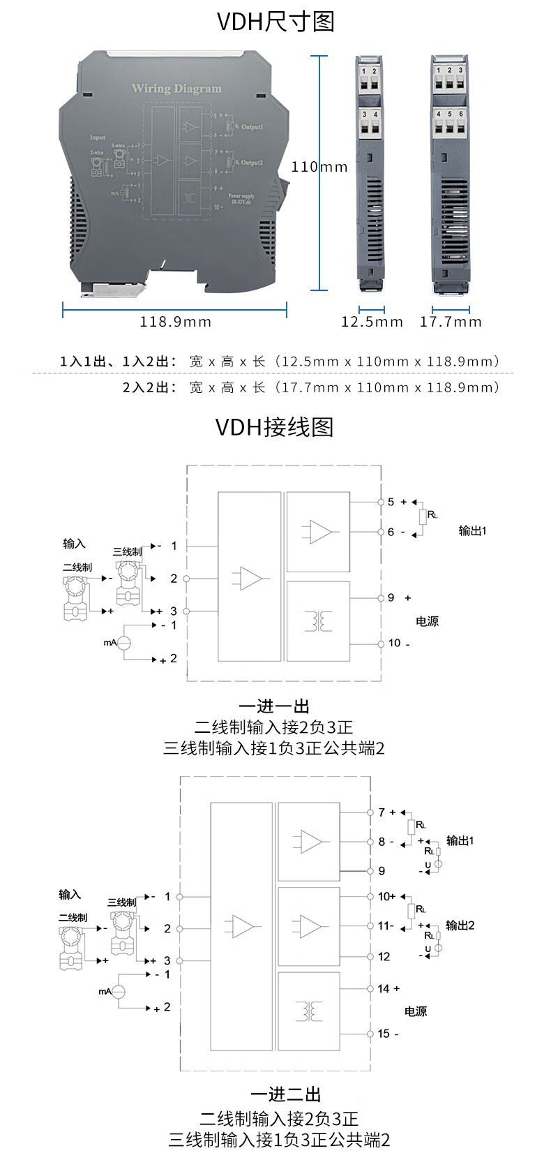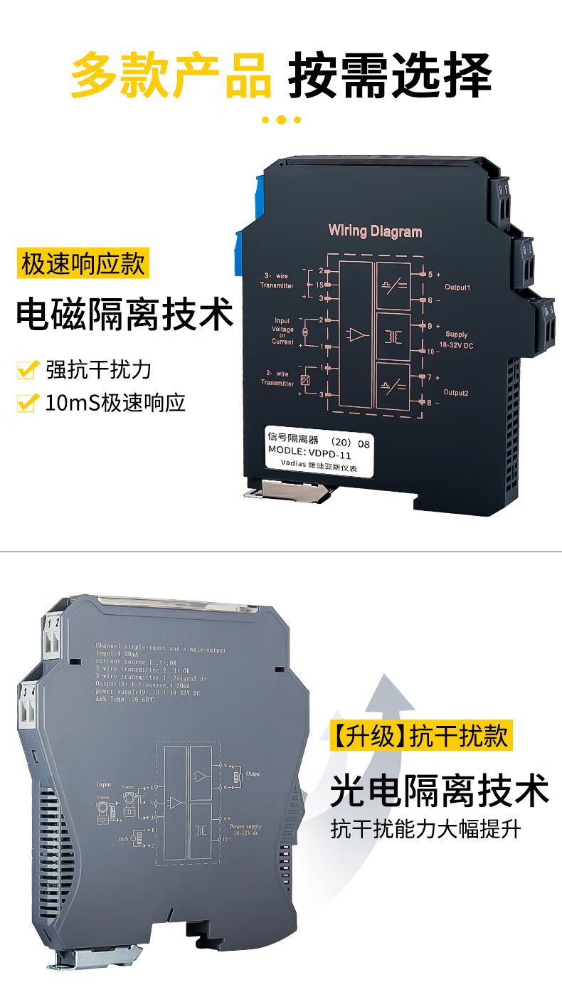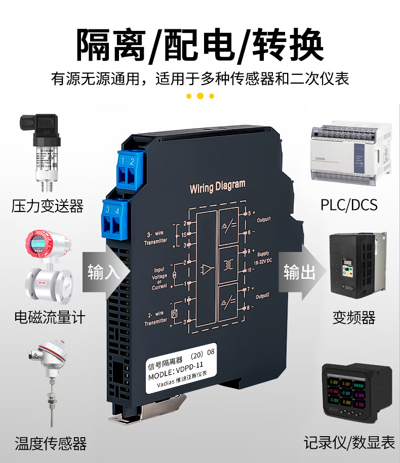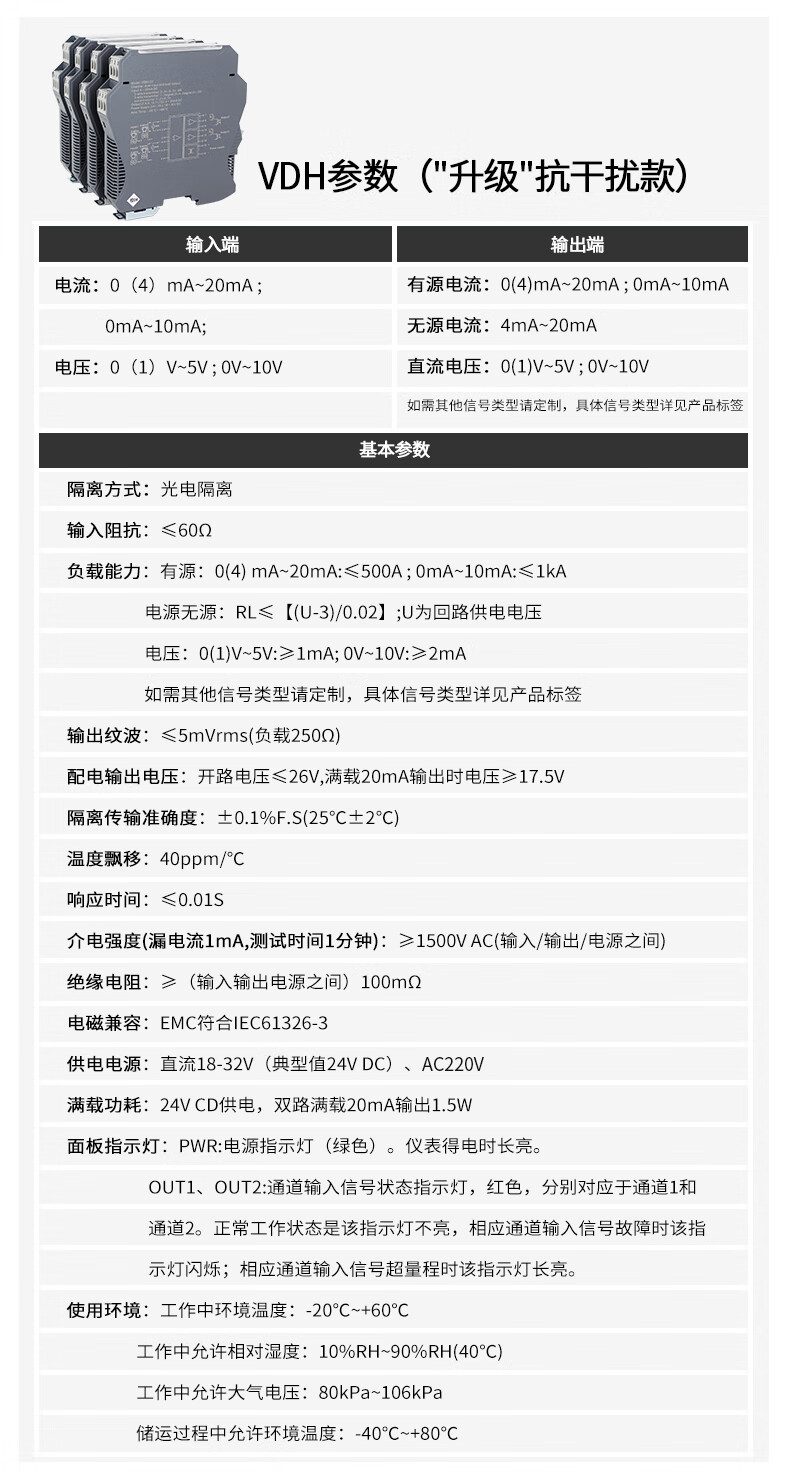 Yue Changsheng DC signal isolator 4-20mA one in and two out conversion RS485 module 0-10V analog current and voltage fast response model one in and one out 0-10V output 4