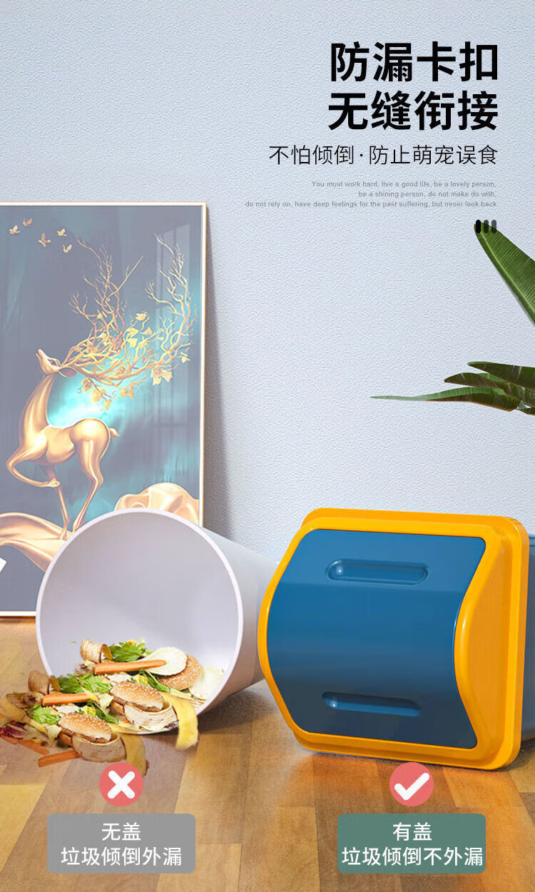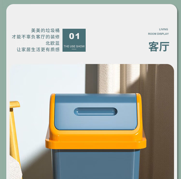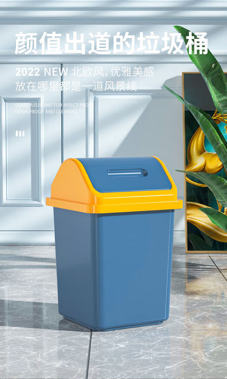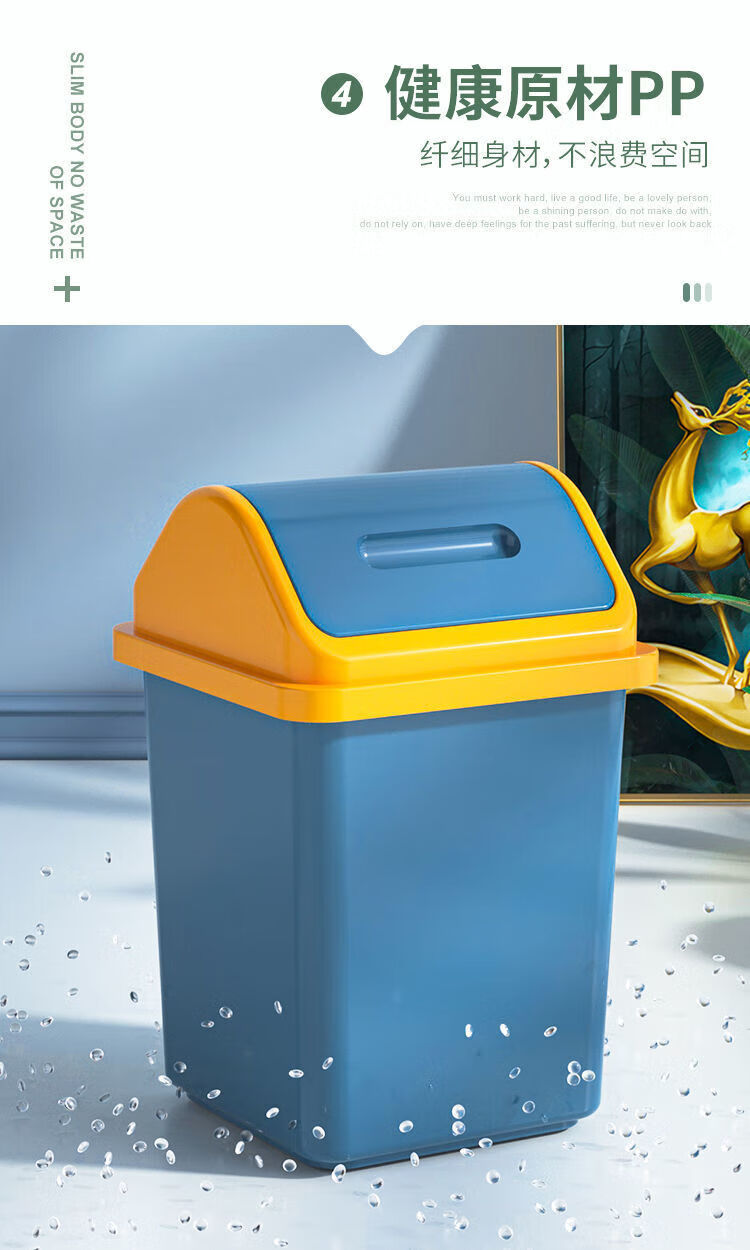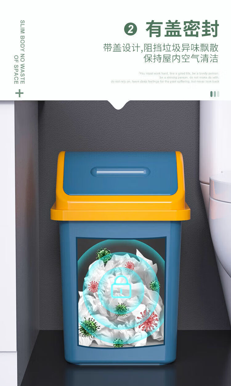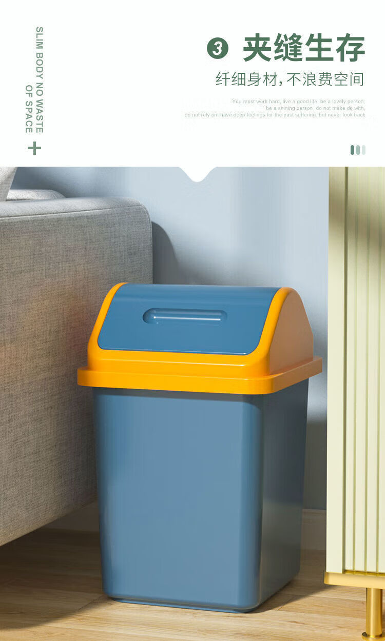 Flip-top trash can for bathroom, kitchen, bedroom, Internet celebrity, large capacity, toilet, living room, dormitory, trash can with lid, suitable for 9.8L丨1 pack丨single bucket with gland, suitable for Nordic blue + orange gland