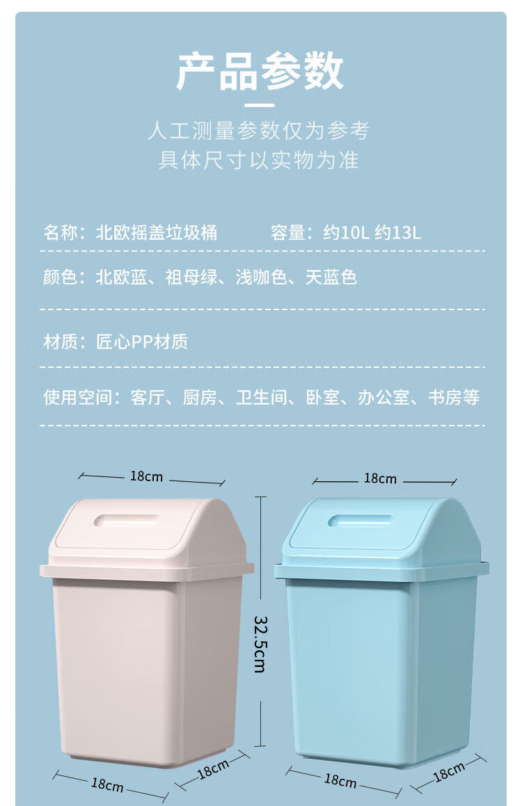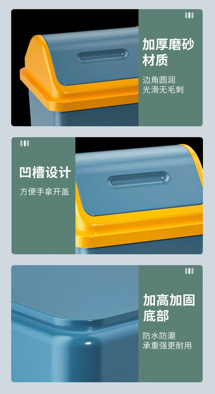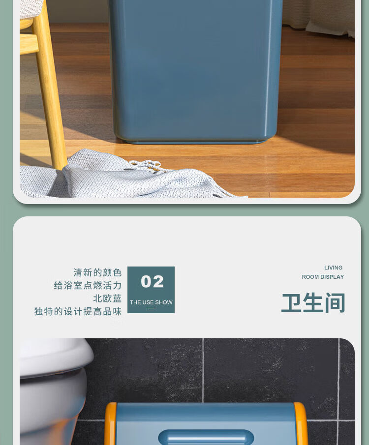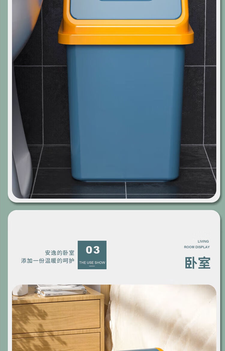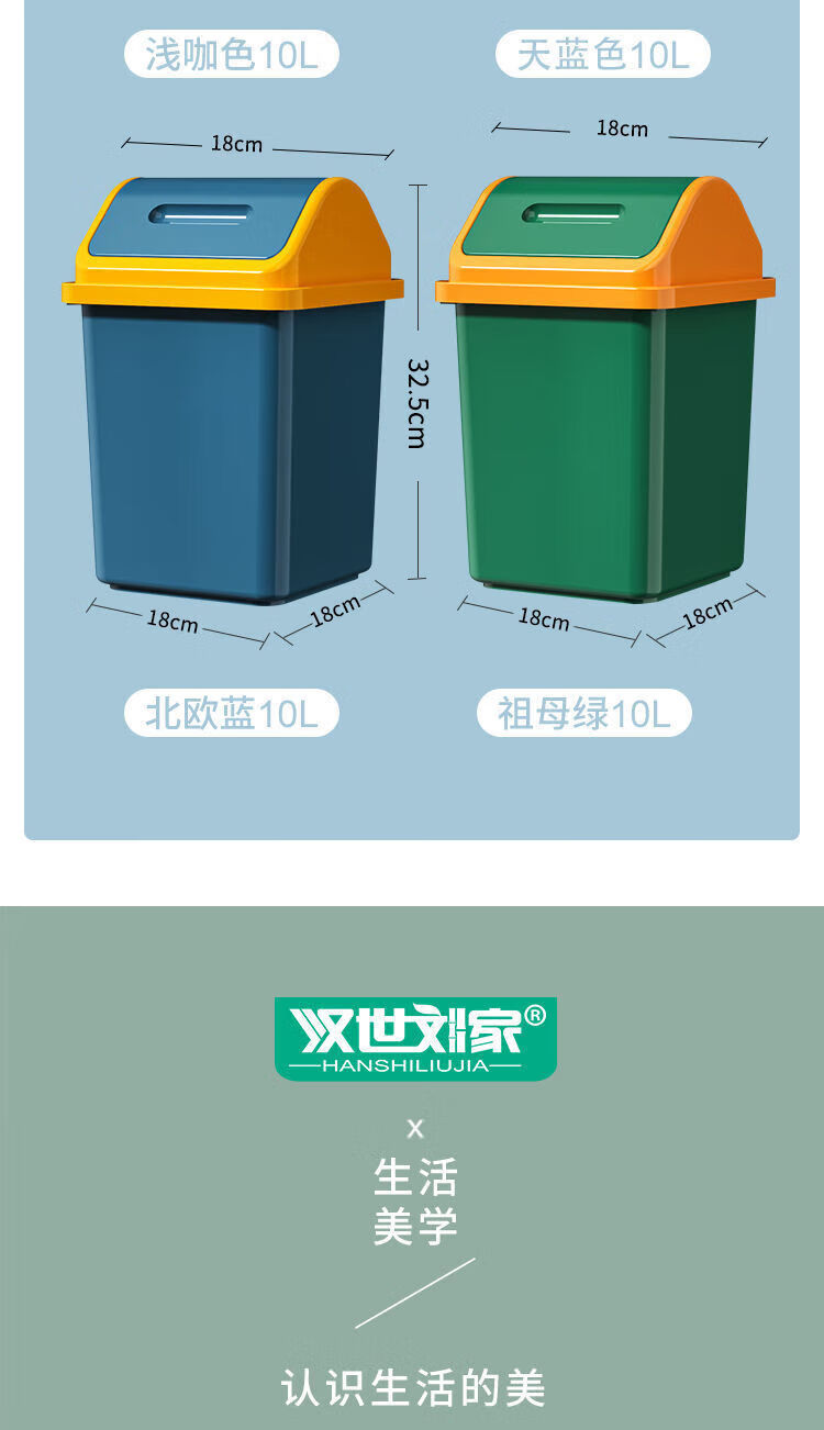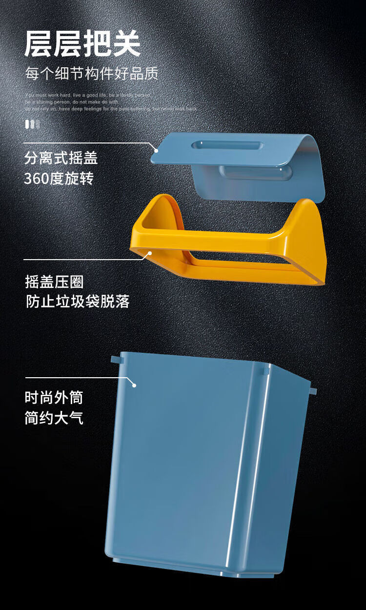 Flip-top trash can for bathroom, kitchen, bedroom, Internet celebrity, large capacity, toilet, living room, dormitory, trash can with lid, suitable for 9.8L丨1 pack丨single bucket with gland, suitable for Nordic blue + orange gland