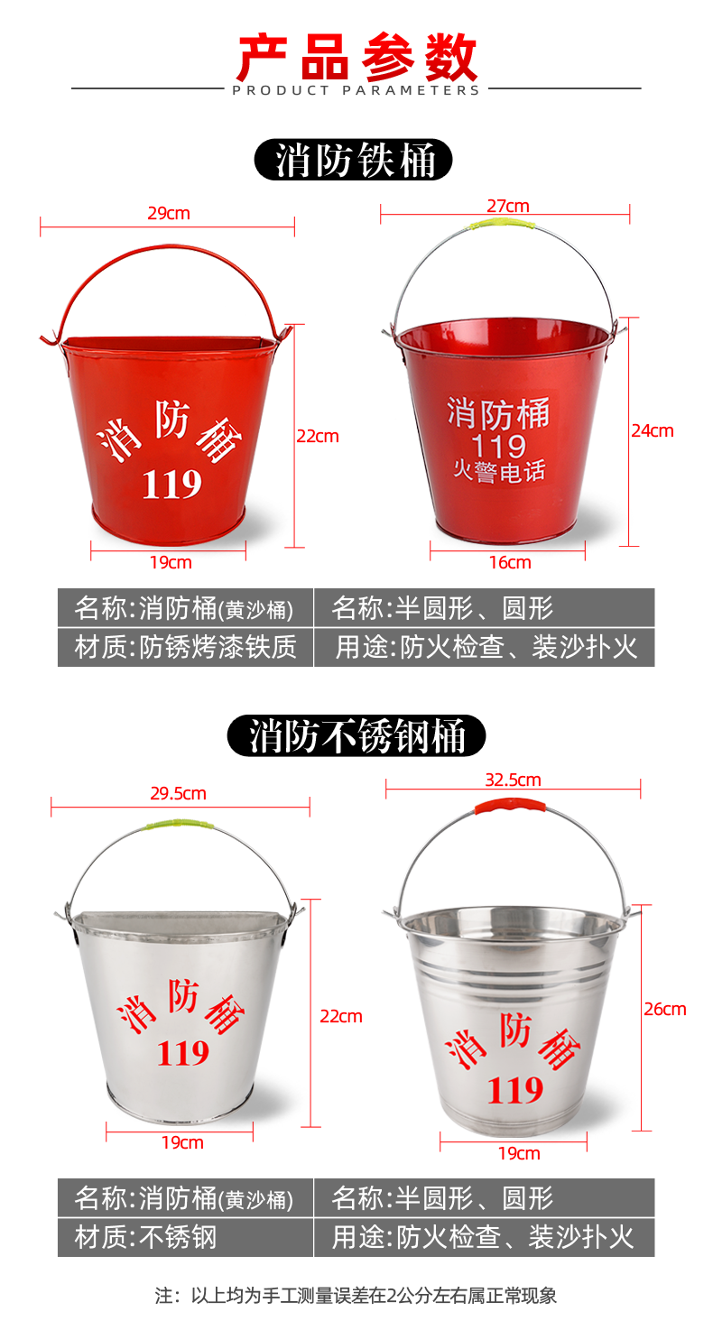Fire bucket Red thickened painted iron bucket Water bucket Stainless steel fire extinguishing semicircular yellow sand bucket Firefighting equipment shelf Drill special tool Ordinary style - Firefighting semicircular bucket