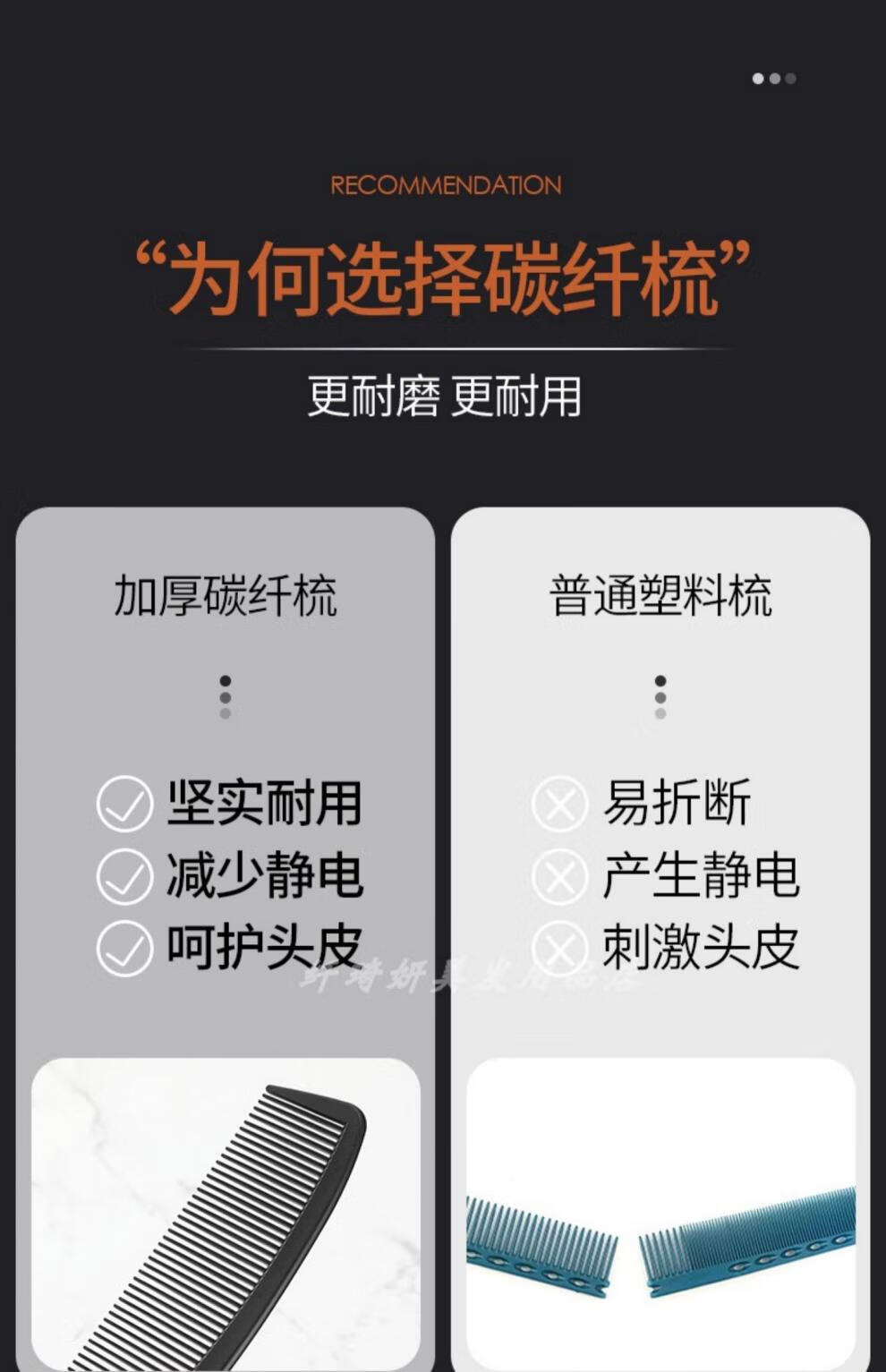 Men's haircut flat comb black carbon steel hair cutting comb Apple comb special hairdressing comb 0612 carbon fiber comb 1 piece (buy 2 pieces and get 1 piece free)
