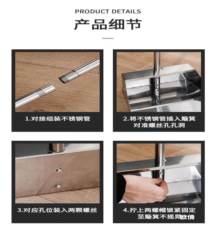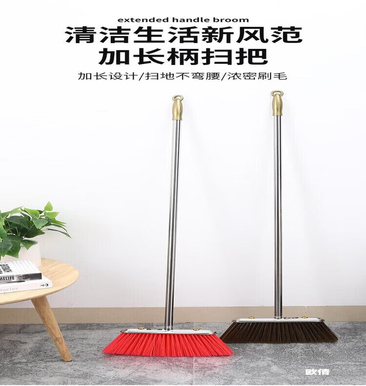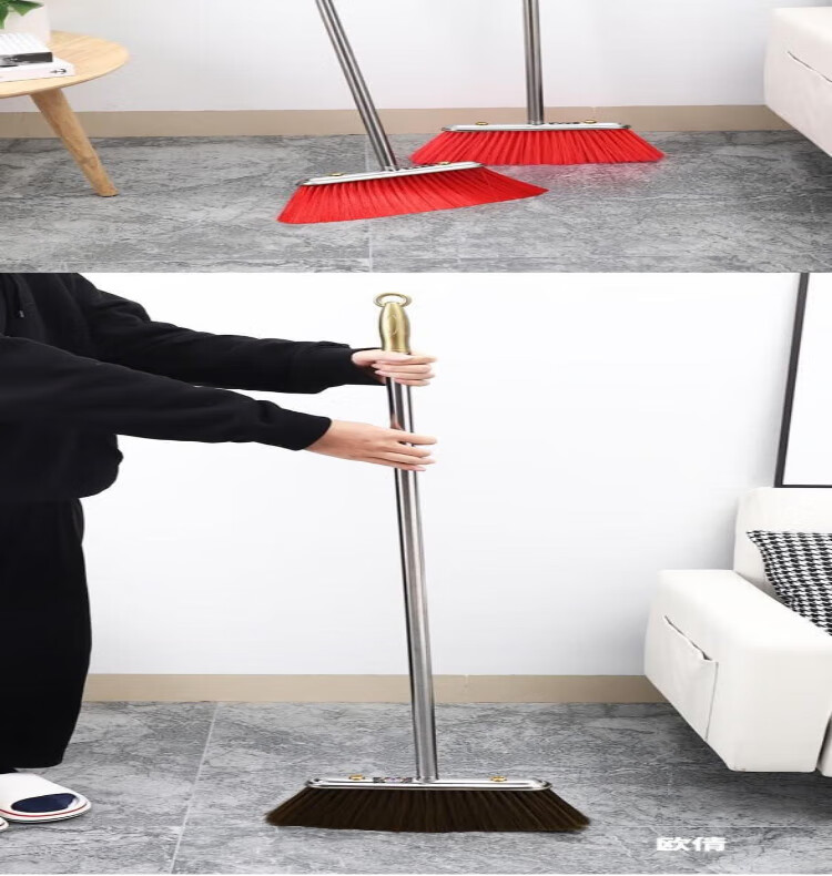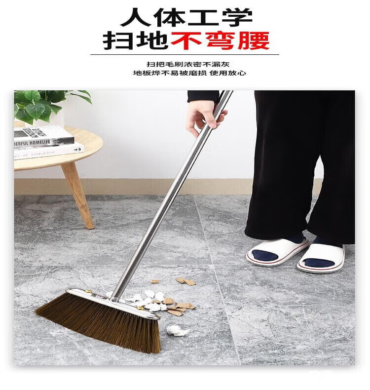 Broom single strong and durable stainless steel thickened dustpan set 2023 new reinforced commercial broom household garbage shovel combination outdoor style broom (hard bristles) short pole 96CM broom