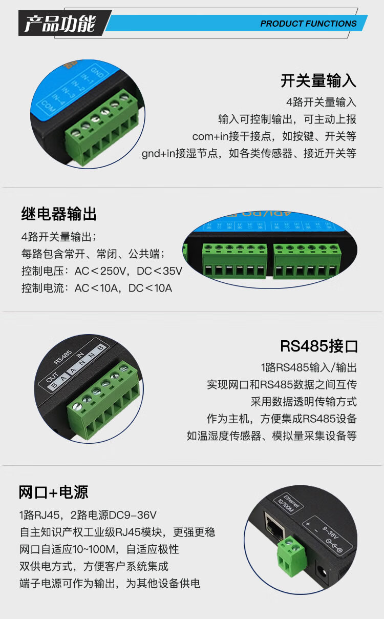 Yue Changsheng LAN remote io module wifi network control relay switch input and output 485tcpip CX-5224E-N network port-24 channels 10A-D