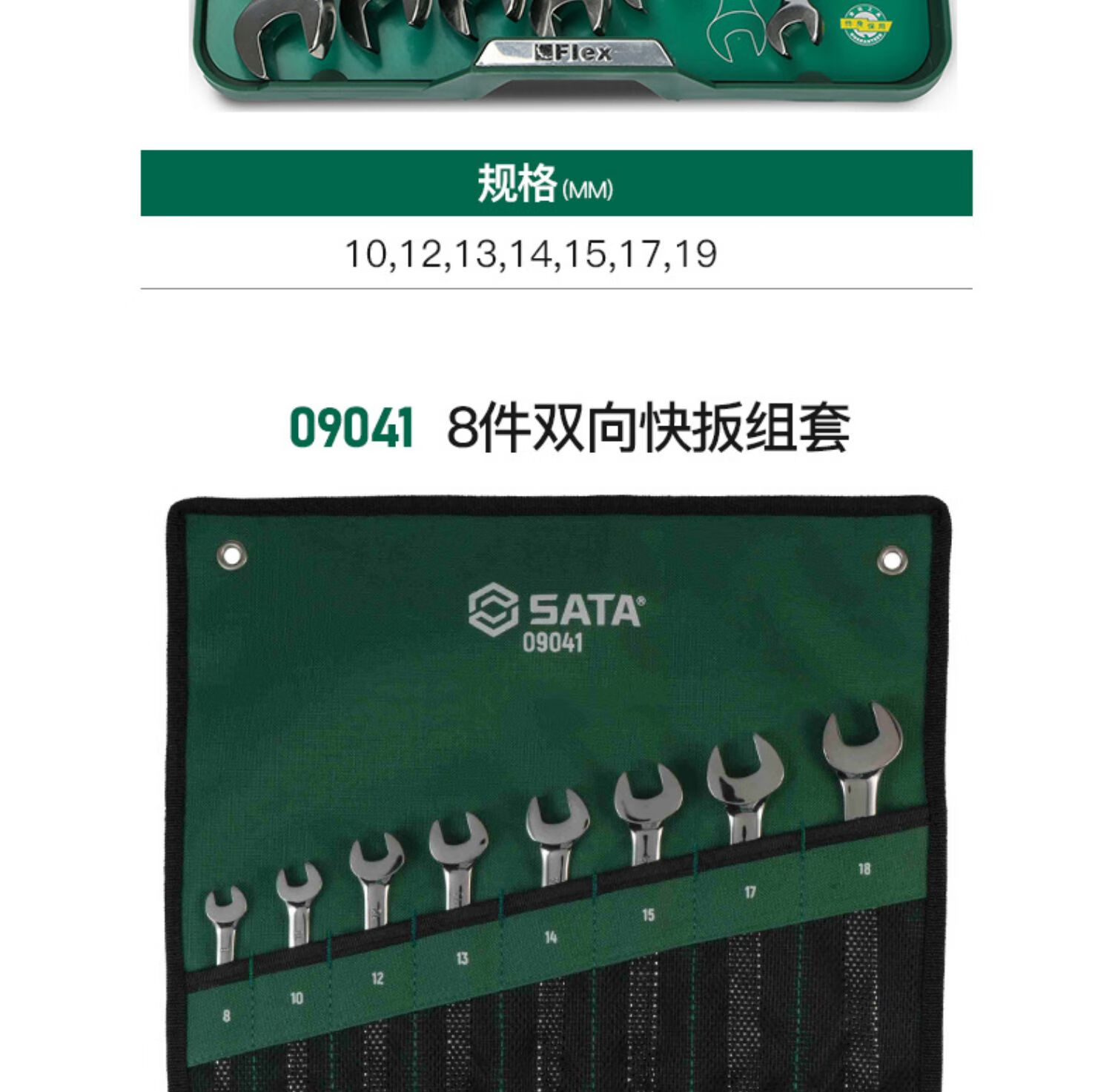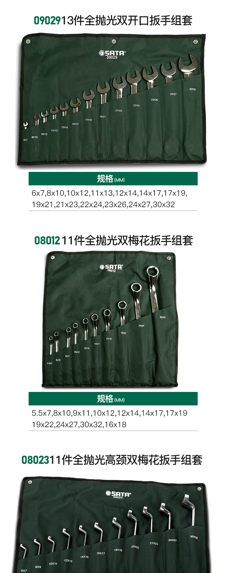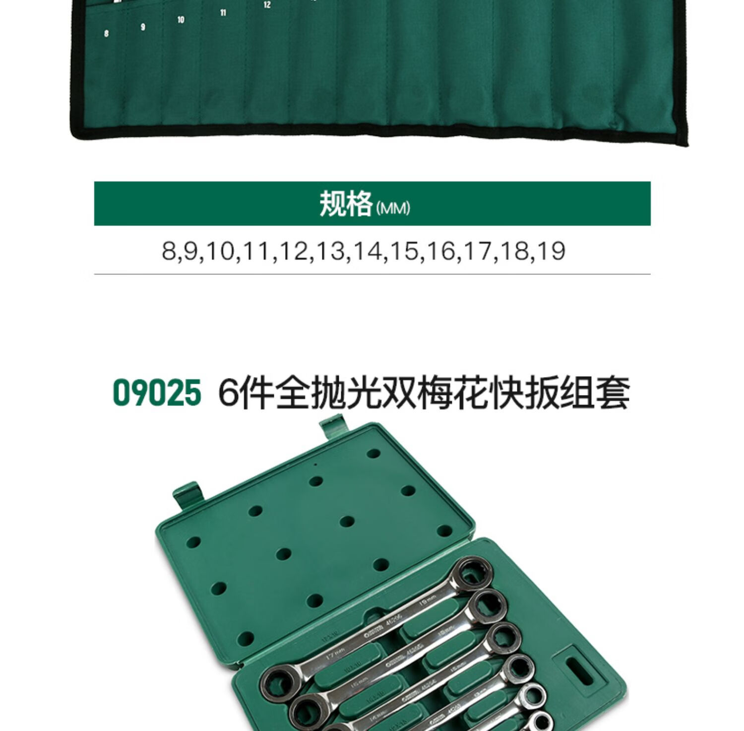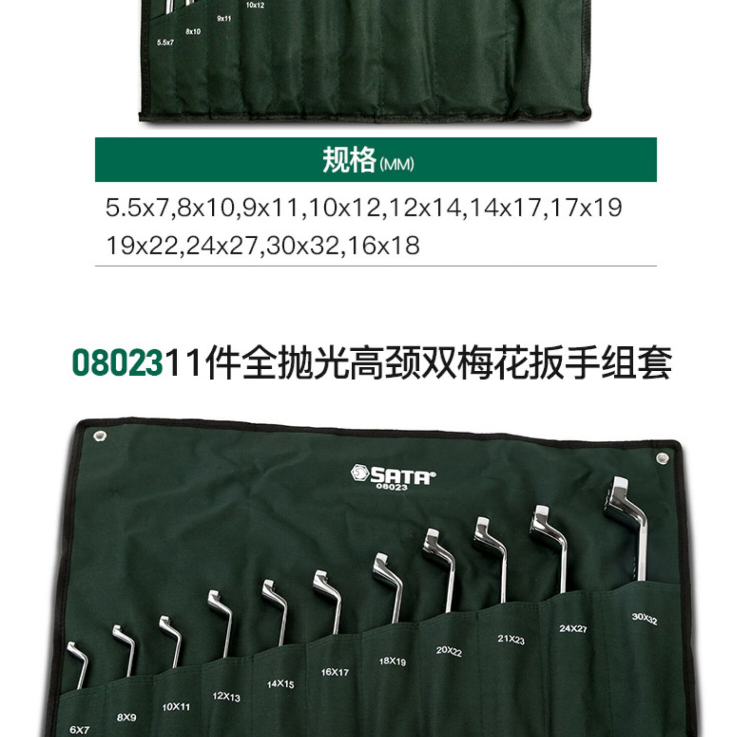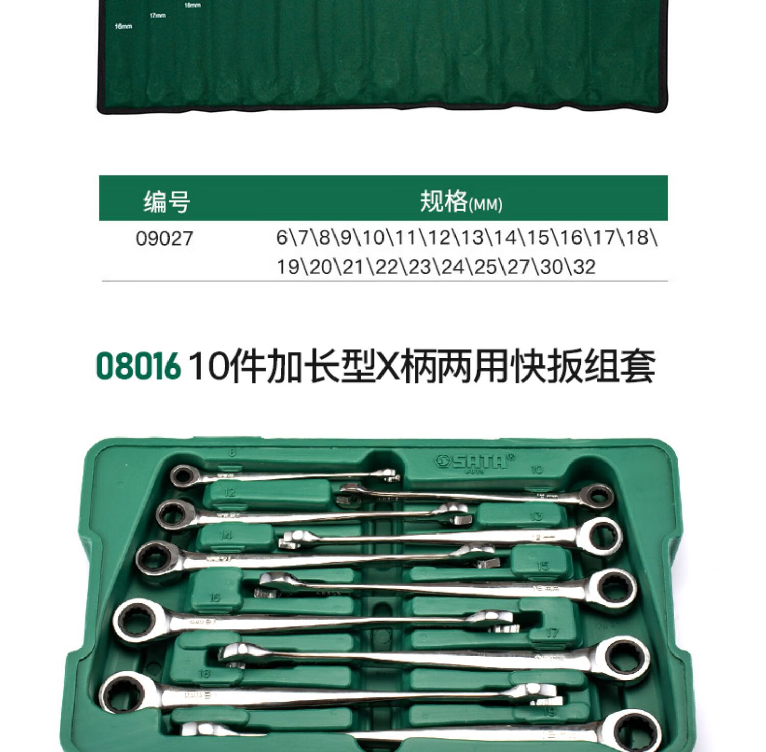Shida Wrench Set Plum Blossom Open Wrench Dull Ratchet Plate Set Fork Wrench Complete Set 11-piece Set Extended Double Plum Blossom Wrench-08012