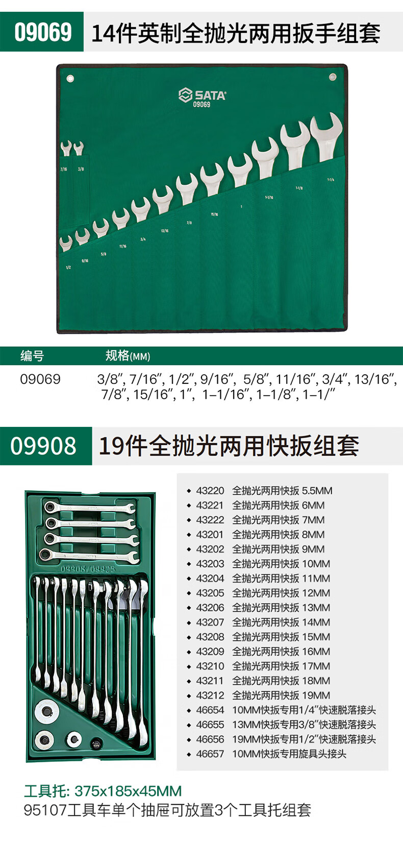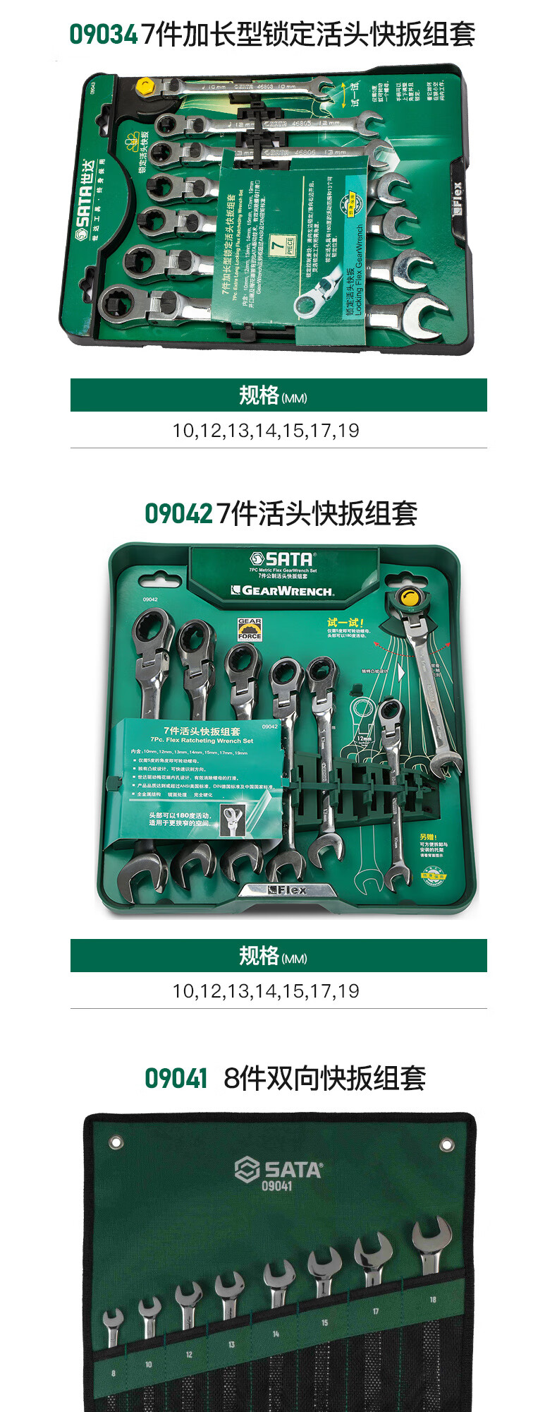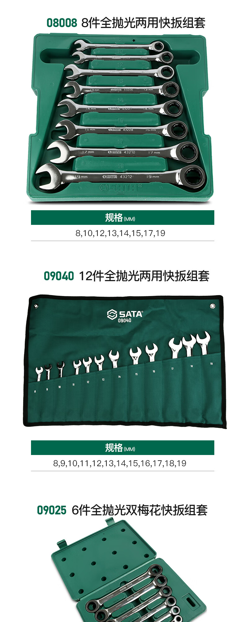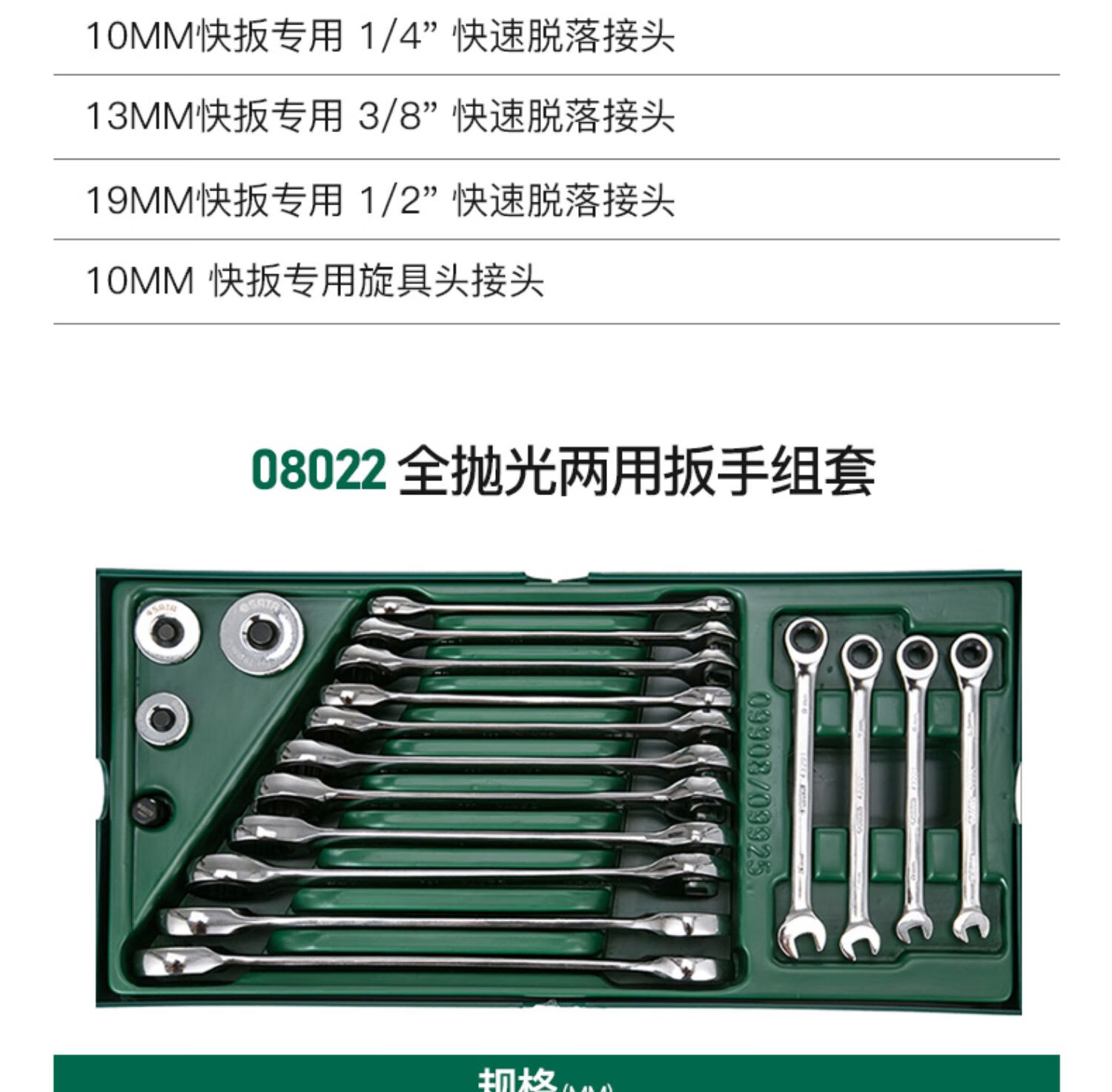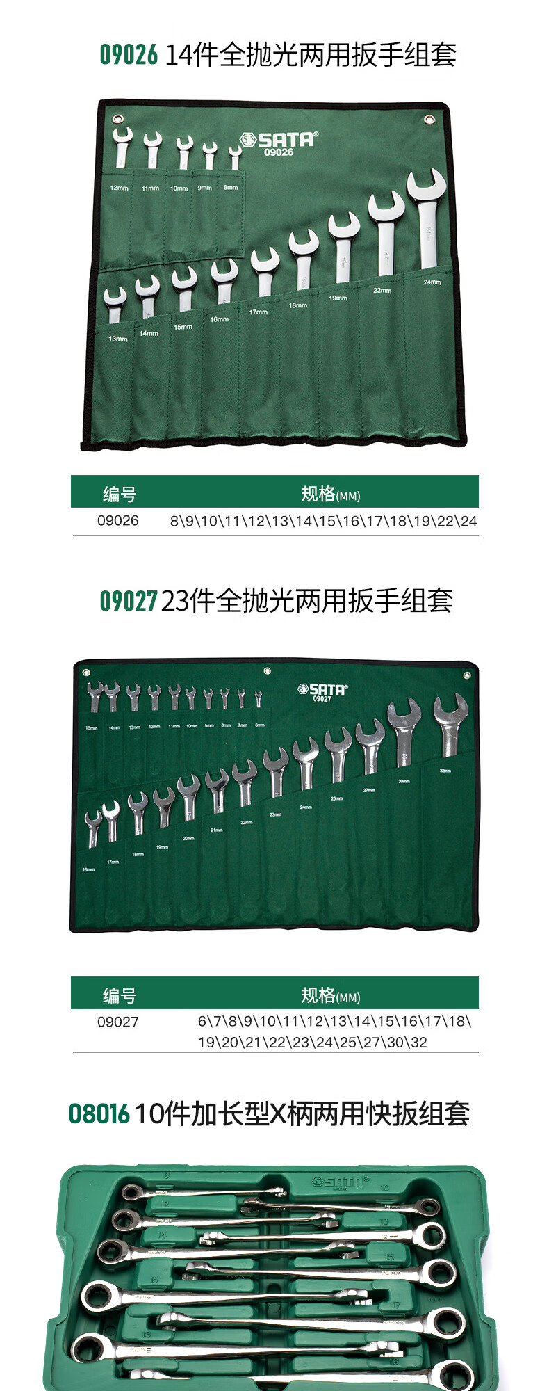 Shida Wrench Set Plum Blossom Open Wrench Dull Ratchet Plate Set Fork Wrench Complete Set 11-piece Set Extended Double Plum Blossom Wrench-08012