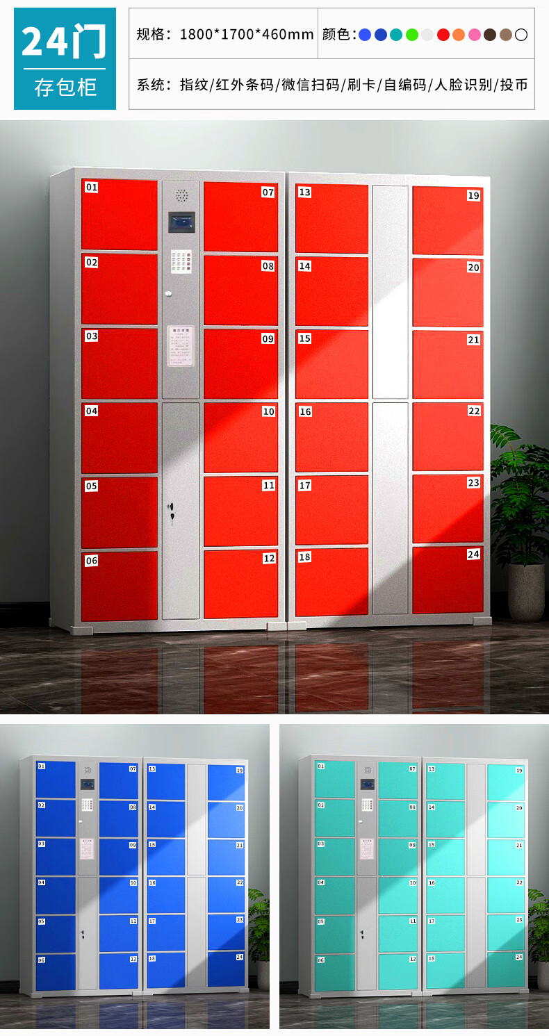 Supermarket Electronic Bag Storage Cabinet Smart Locker Mobile Phone Locker Barcode Fingerprint Scan Face Recognition WeChat Cabinet 24 Doors WeChat Scan Model