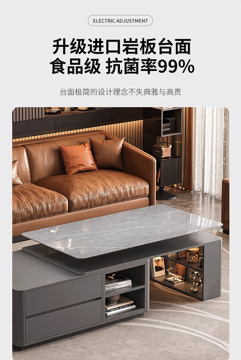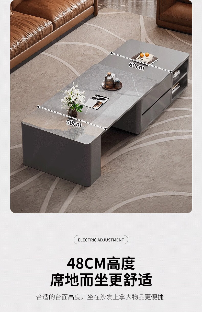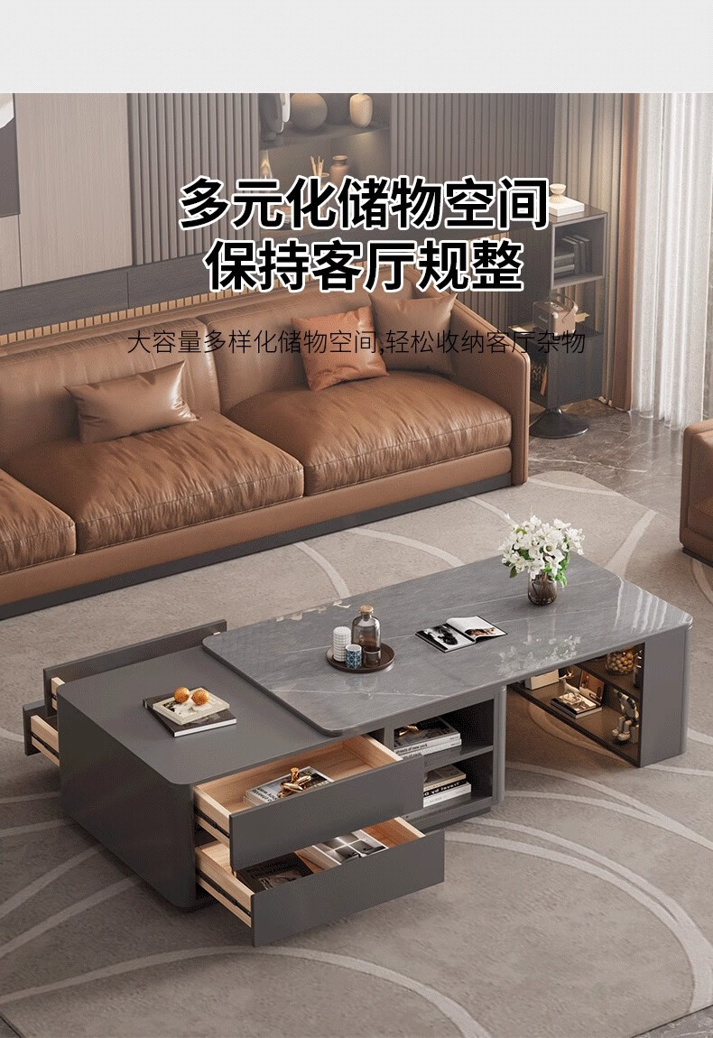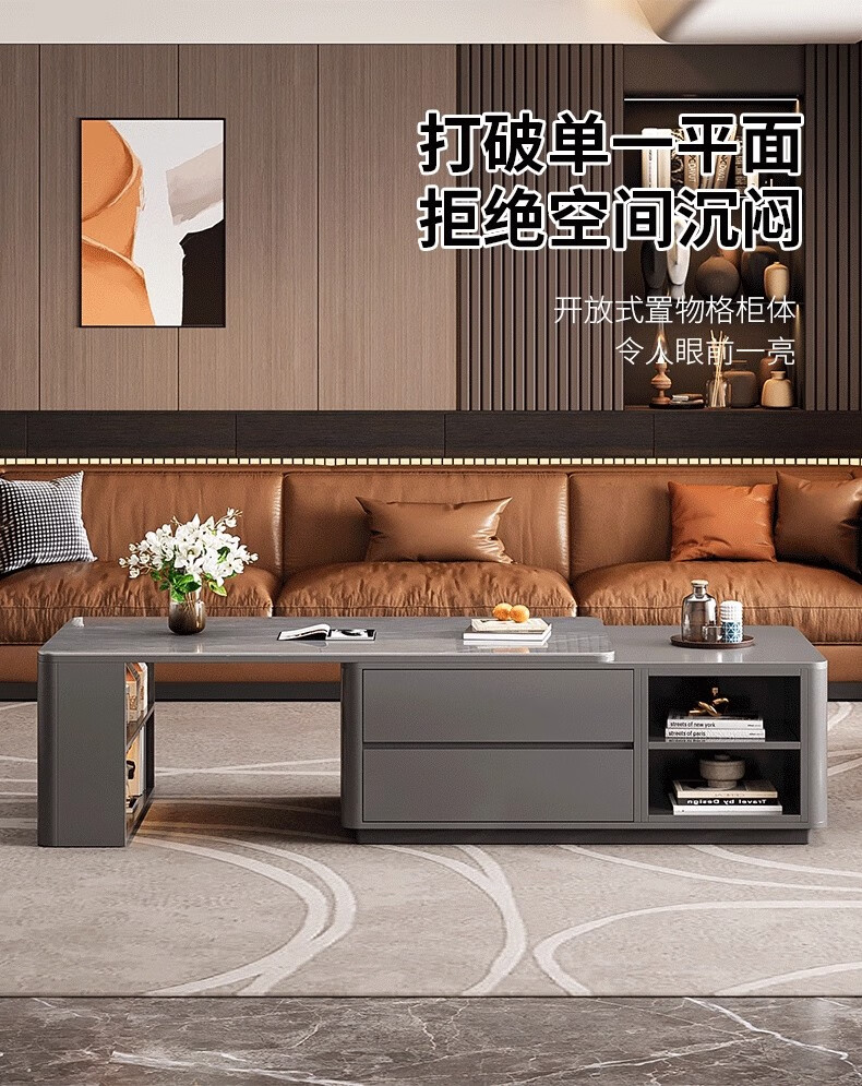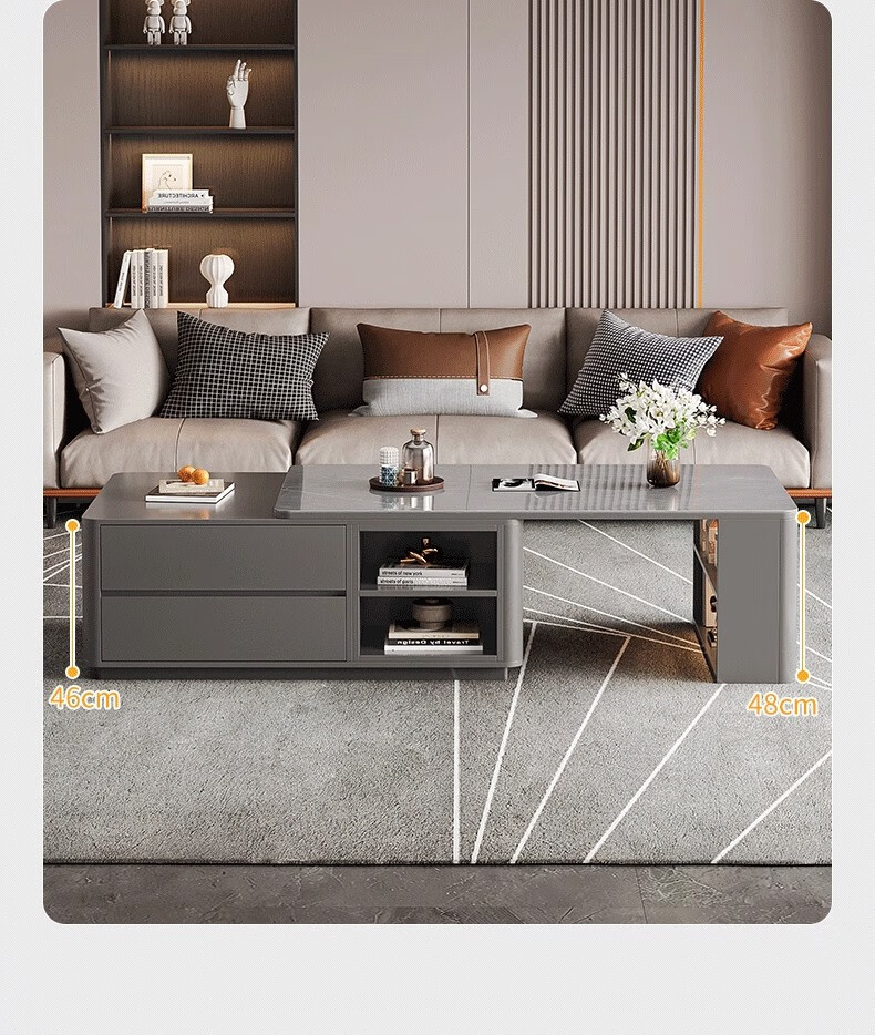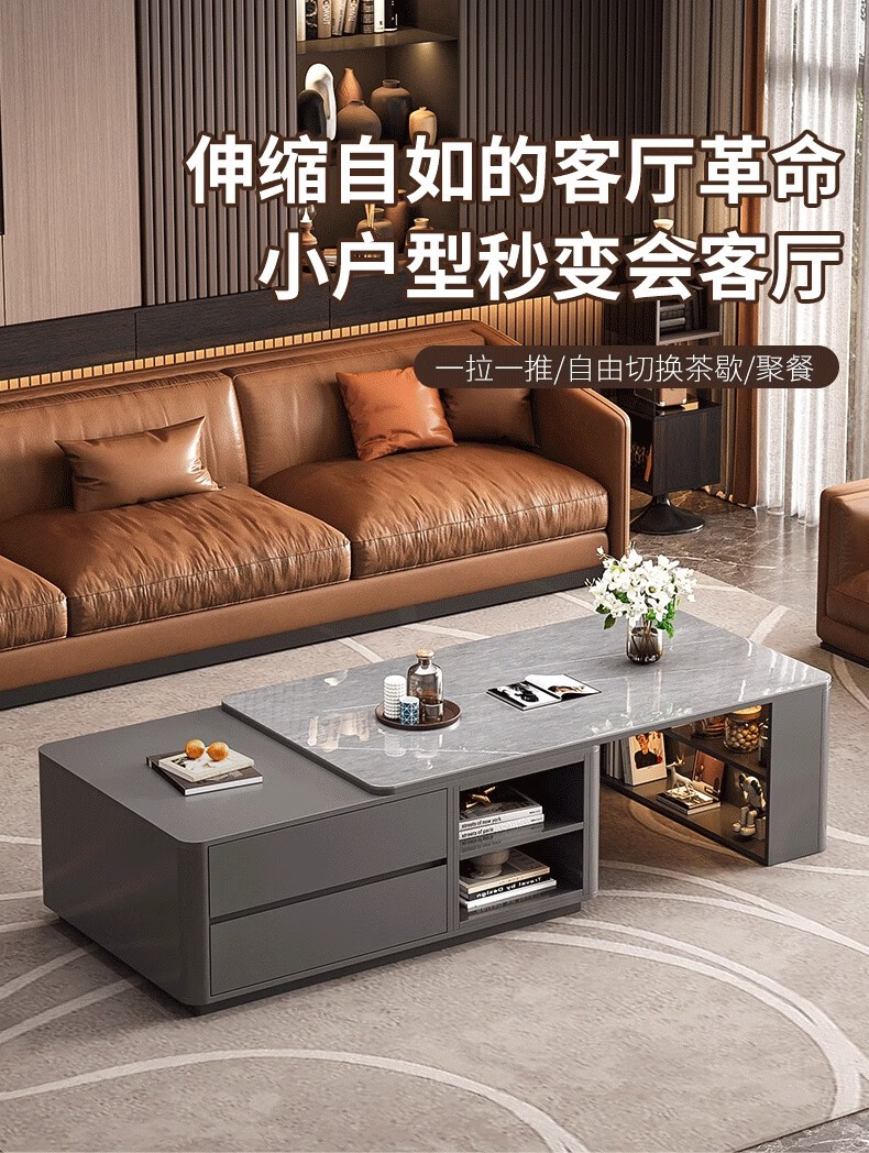 Zuo Shan retractable coffee table living room home 2026 new light luxury high-end table small apartment slate solid wood coffee table 1.2 meters retractable coffee table high-end gray with gray slate