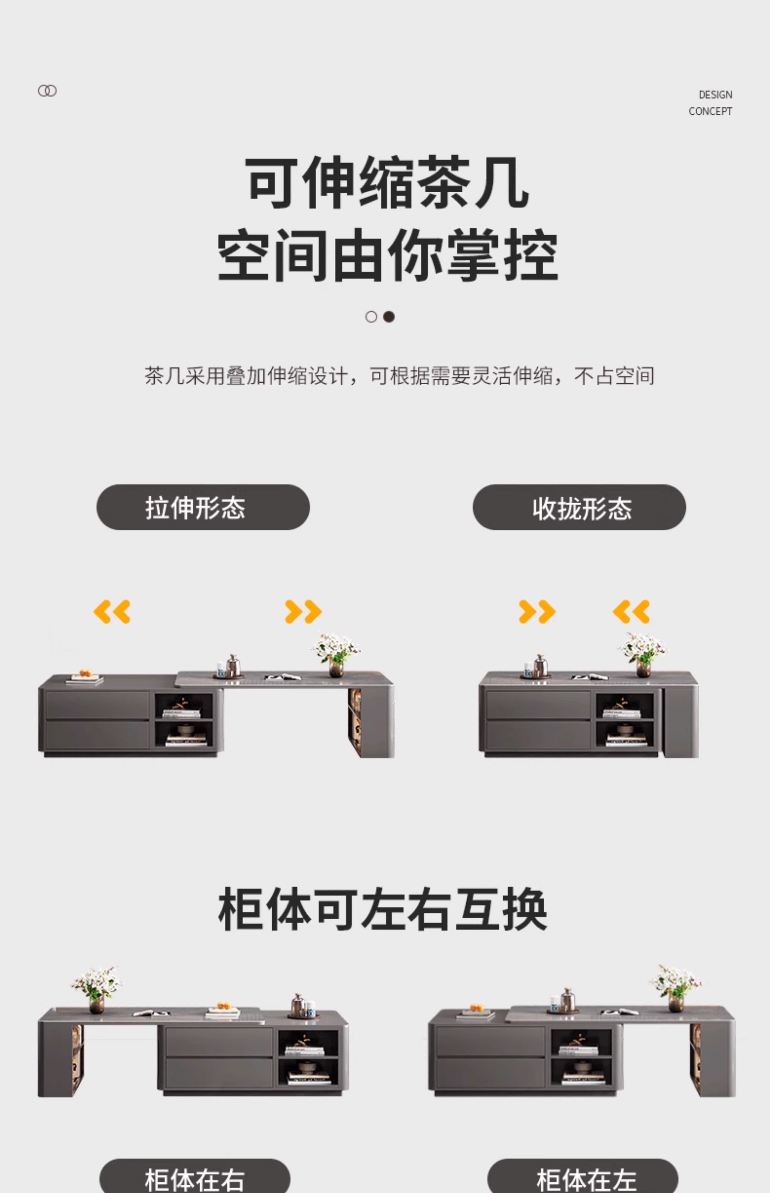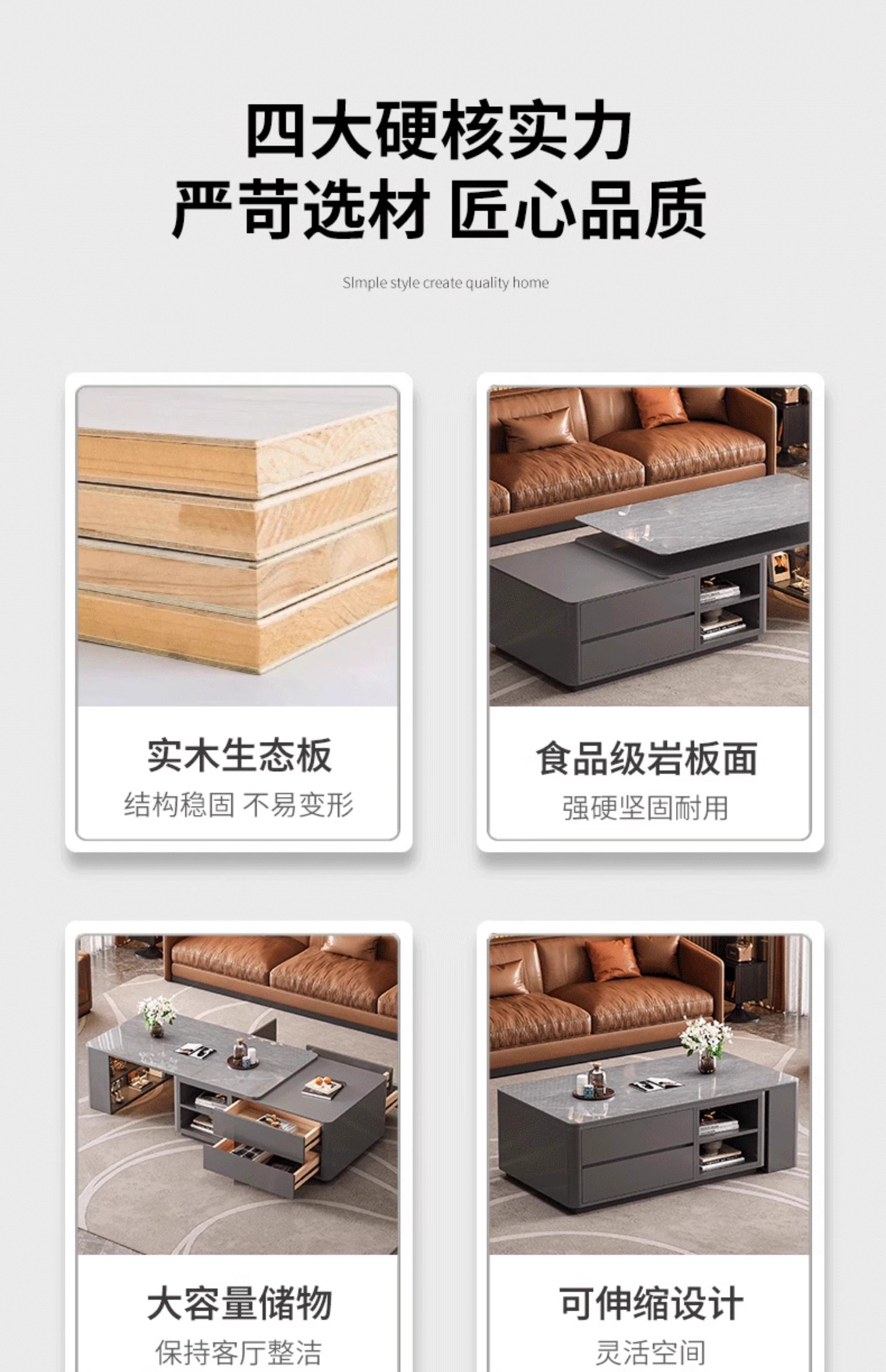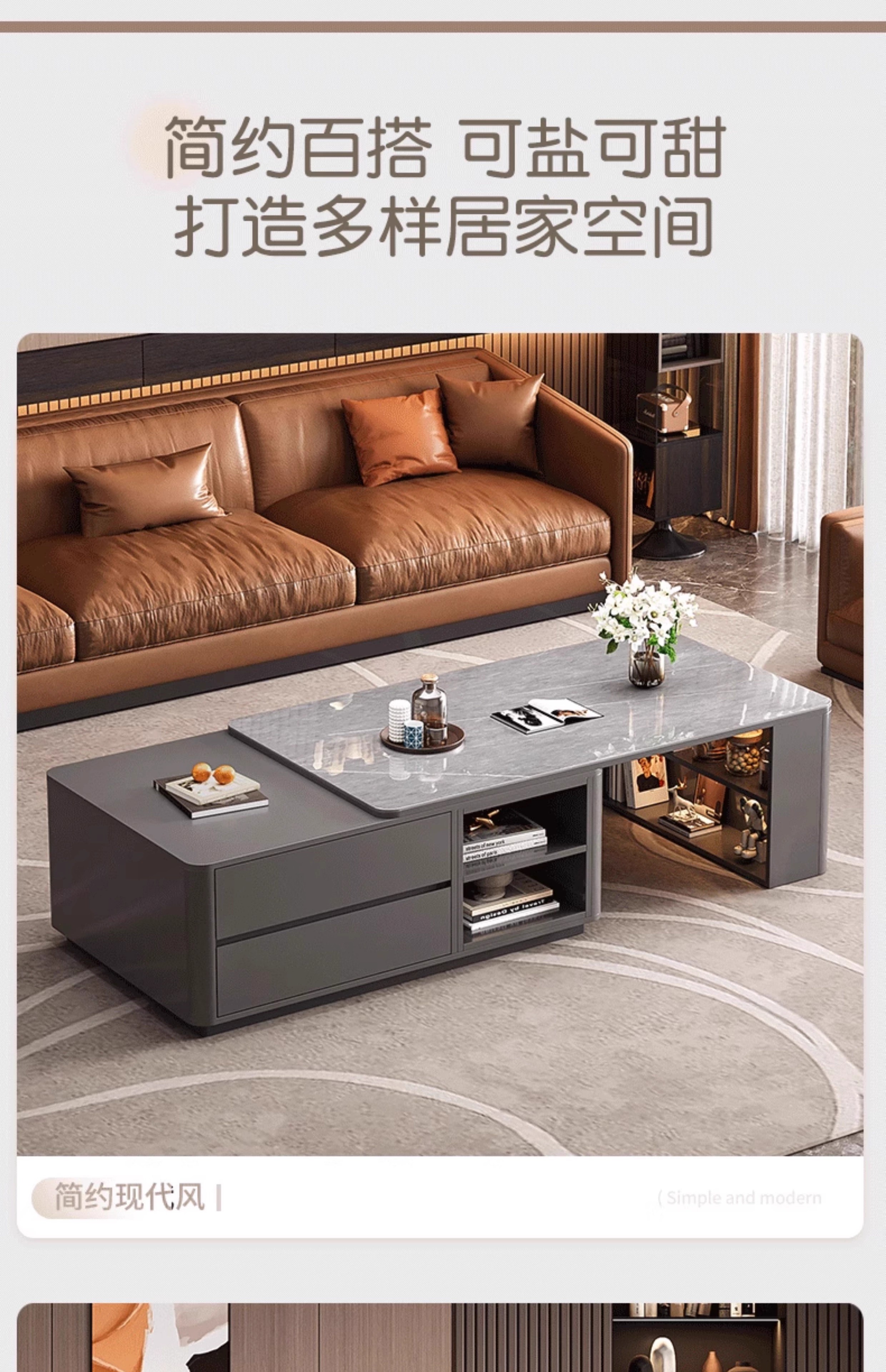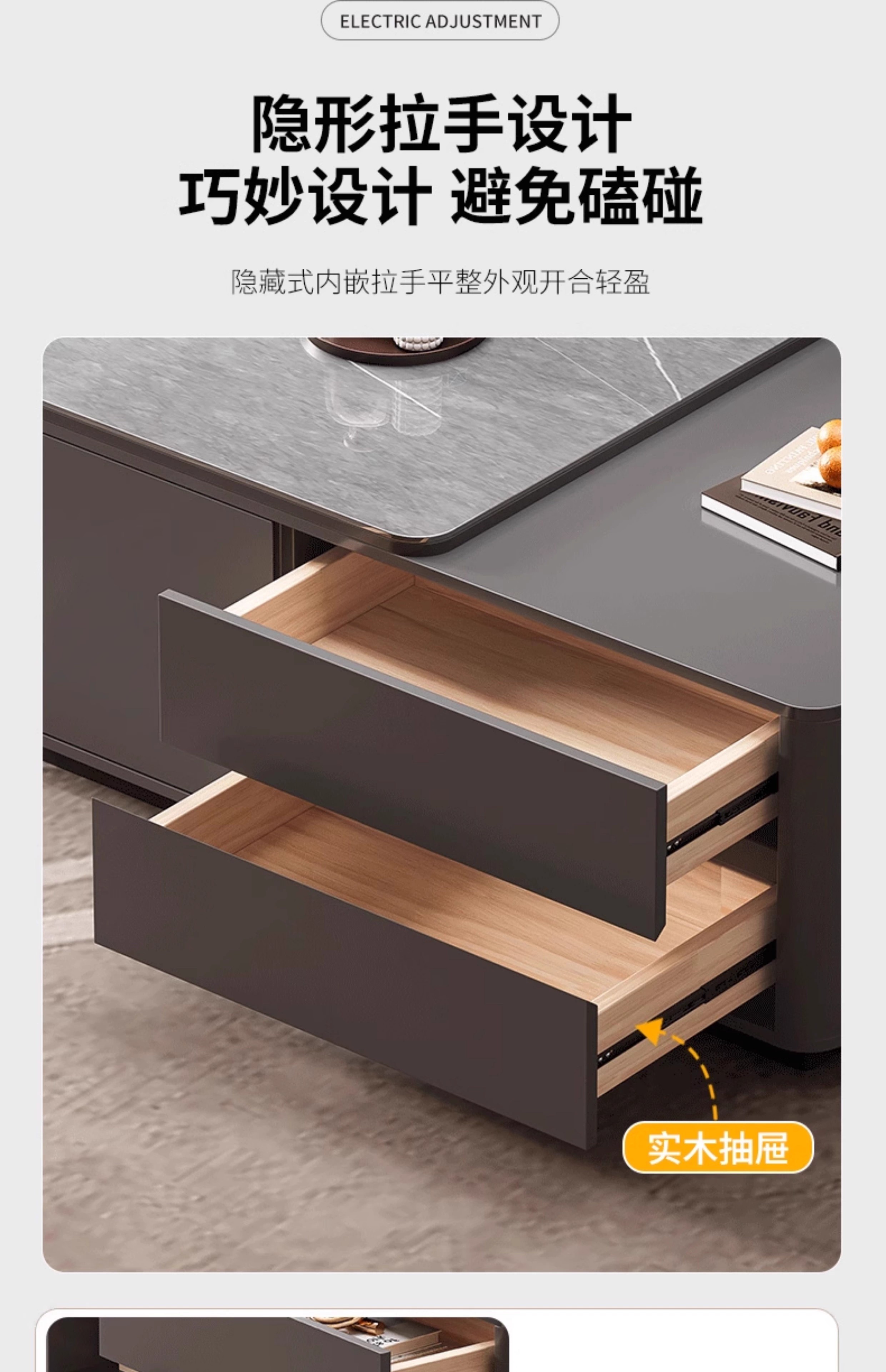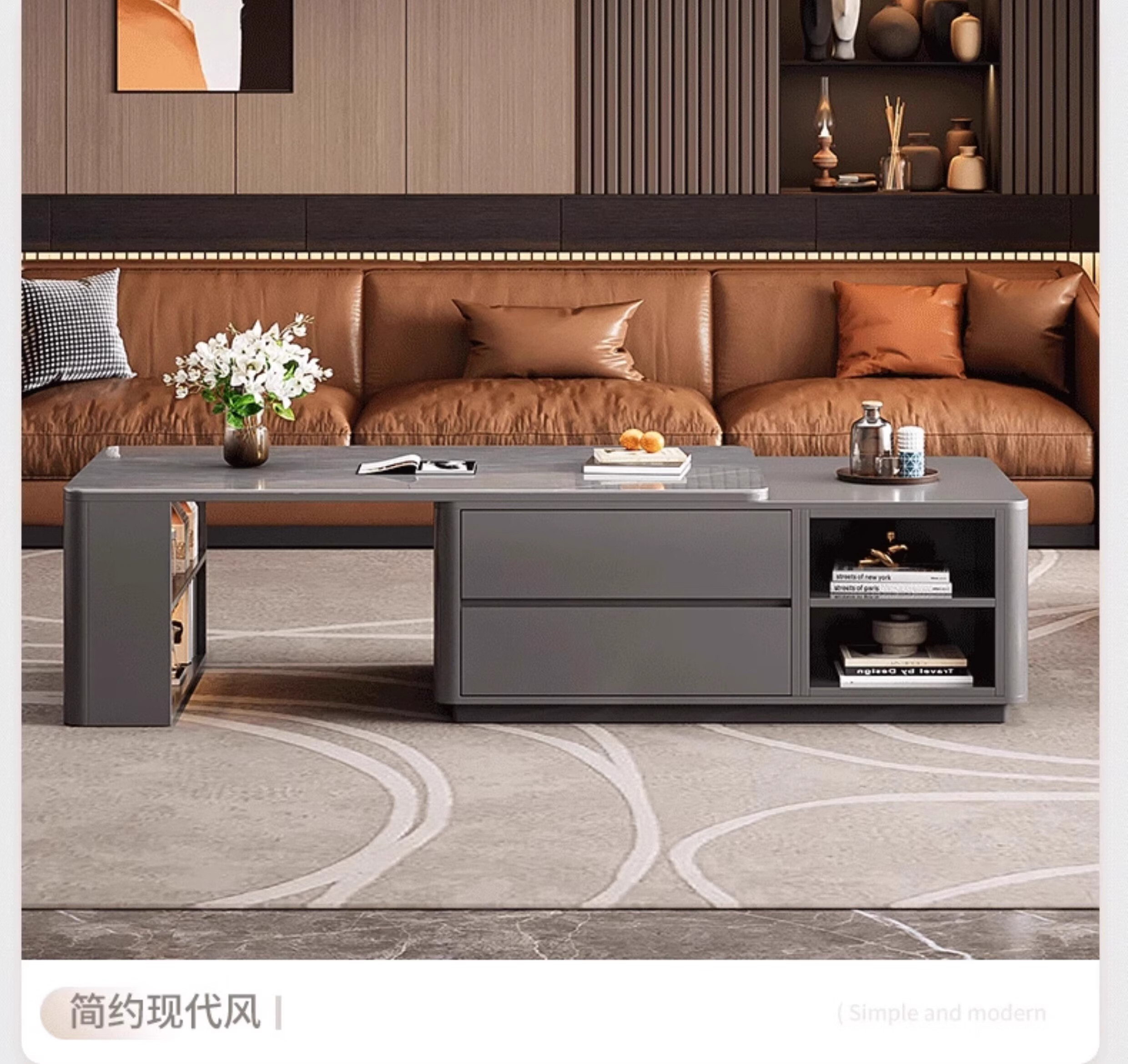 Zuo Shan retractable coffee table living room home 2026 new light luxury high-end table small apartment slate solid wood coffee table 1.2 meters retractable coffee table high-end gray with gray slate
