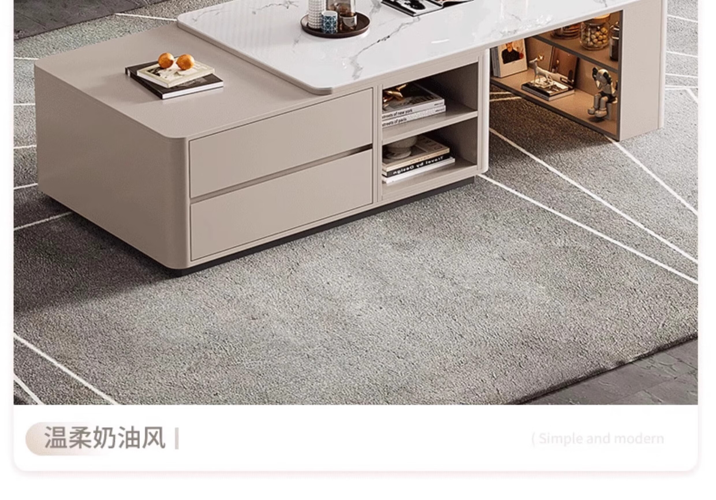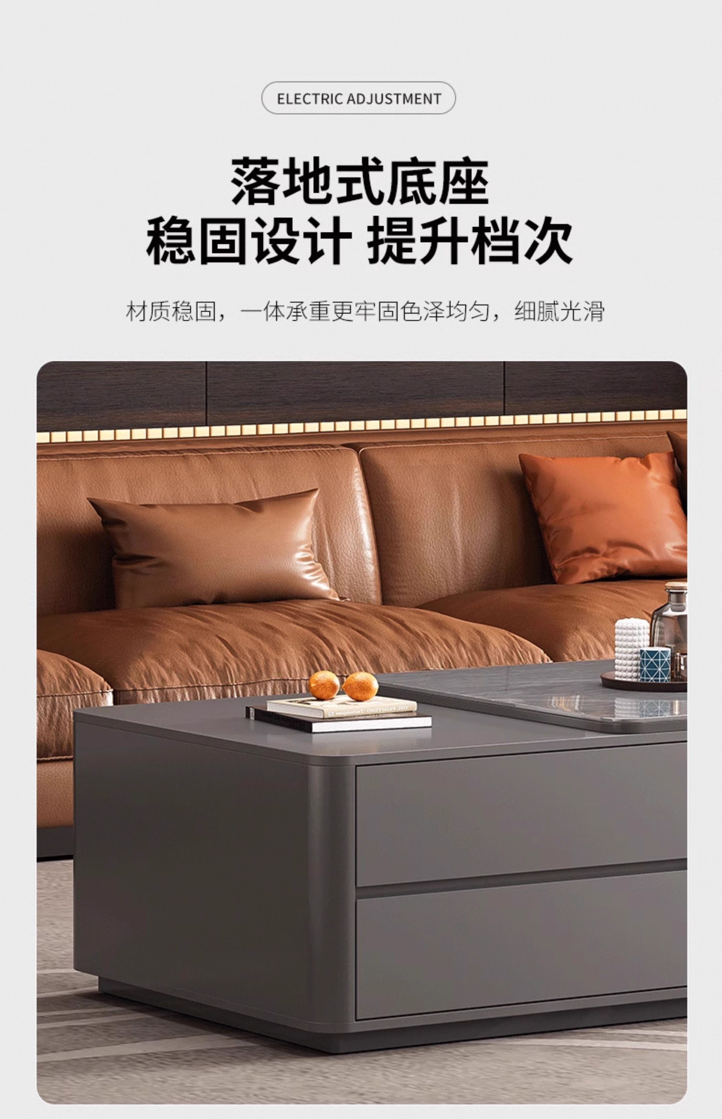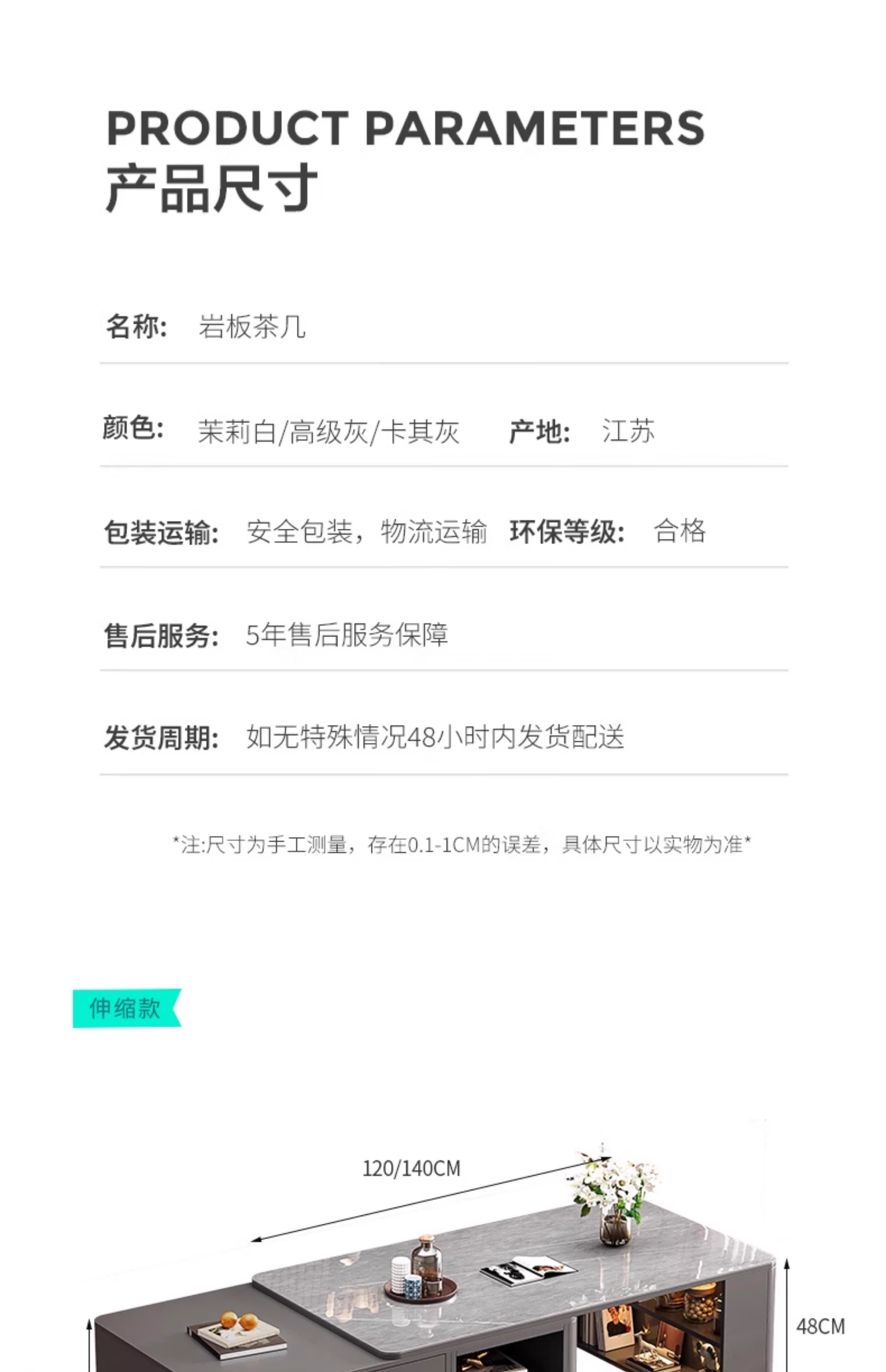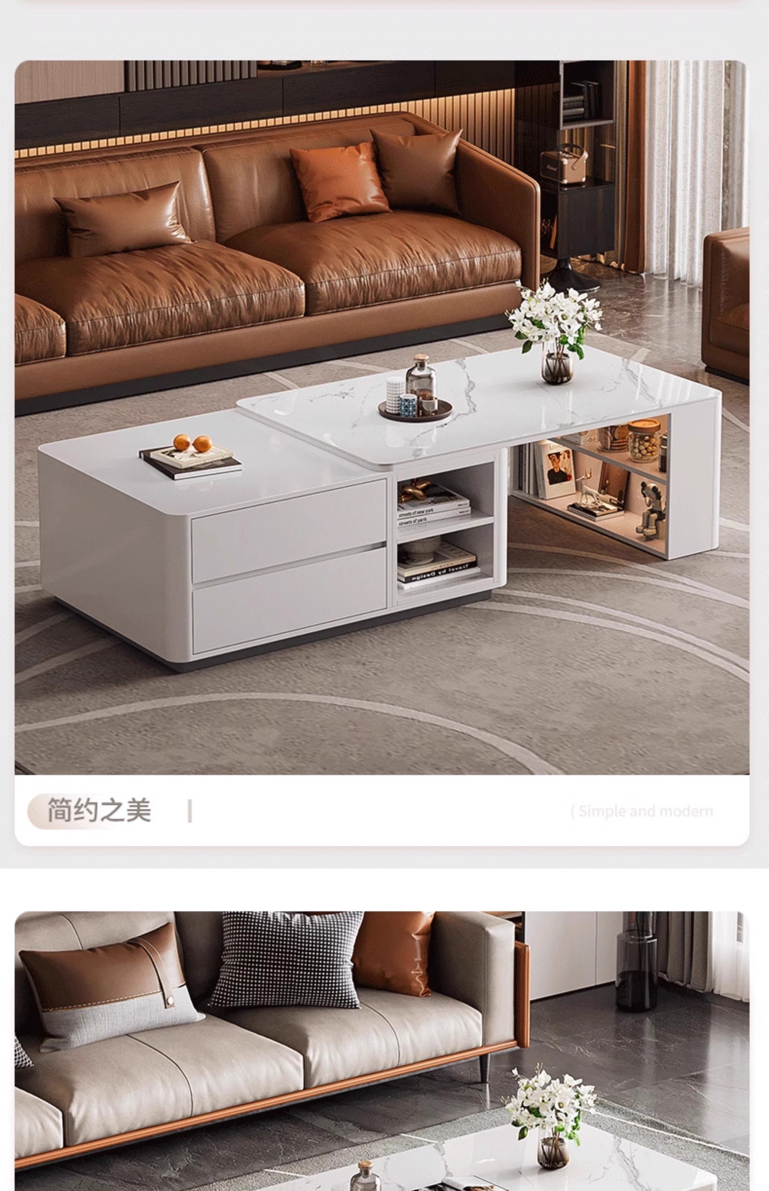 Zuo Shan retractable coffee table living room home 2026 new light luxury high-end table small apartment slate solid wood coffee table 1.2 meters retractable coffee table high-end gray with gray slate